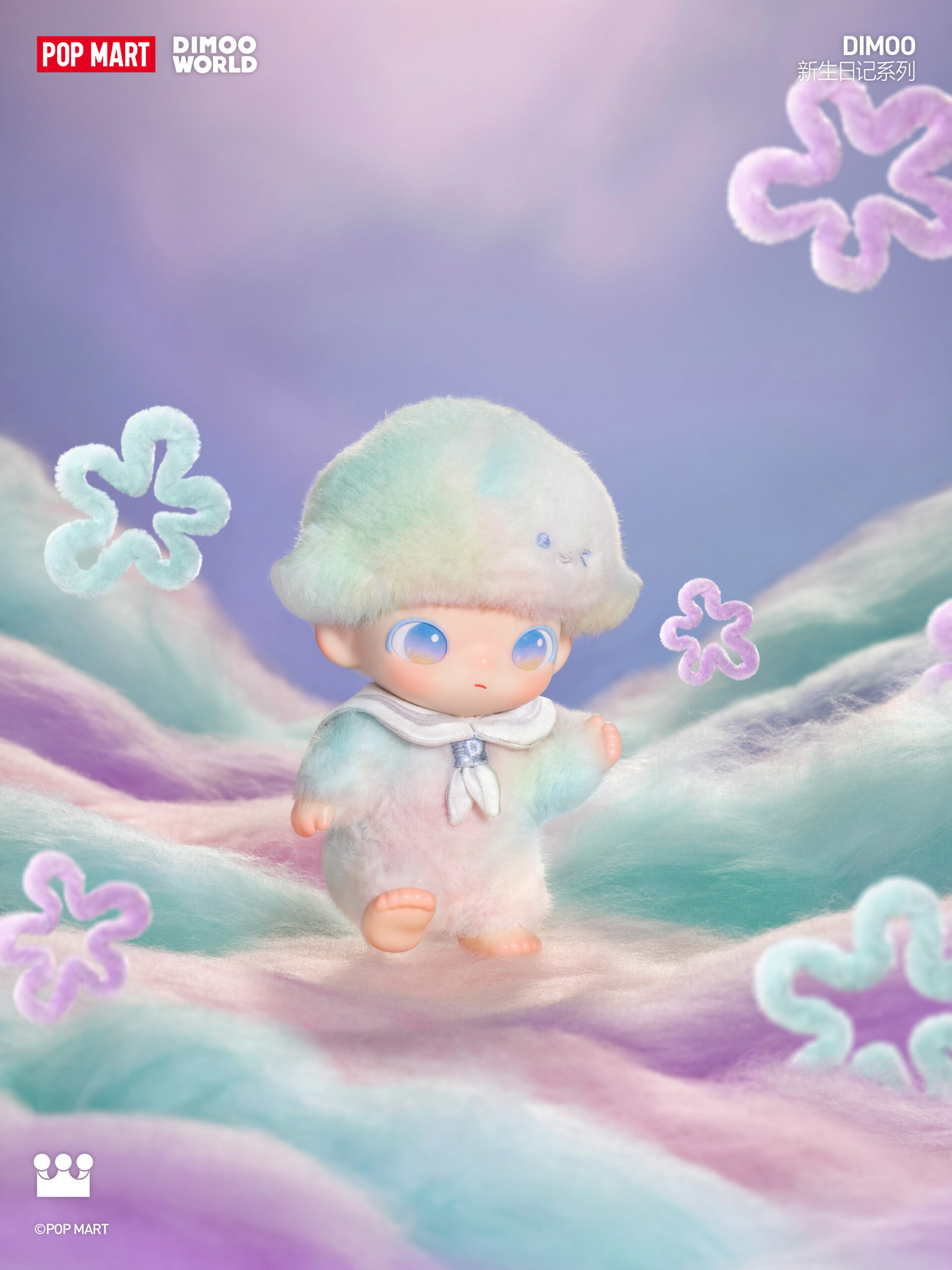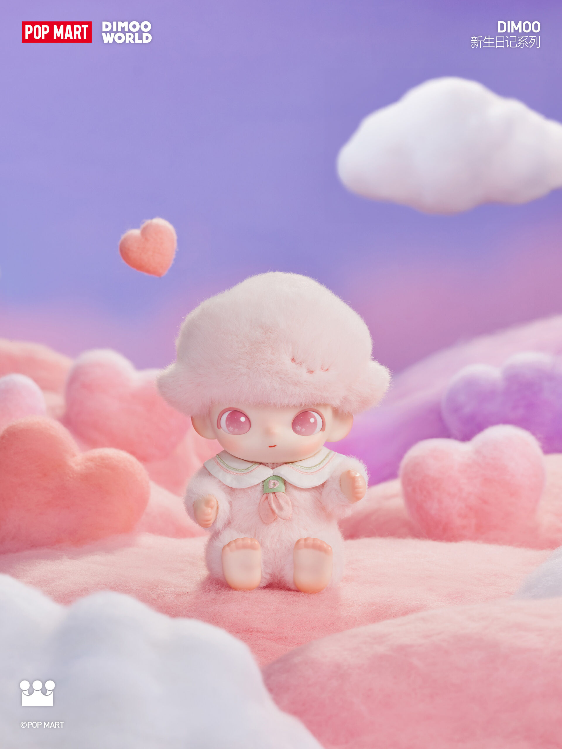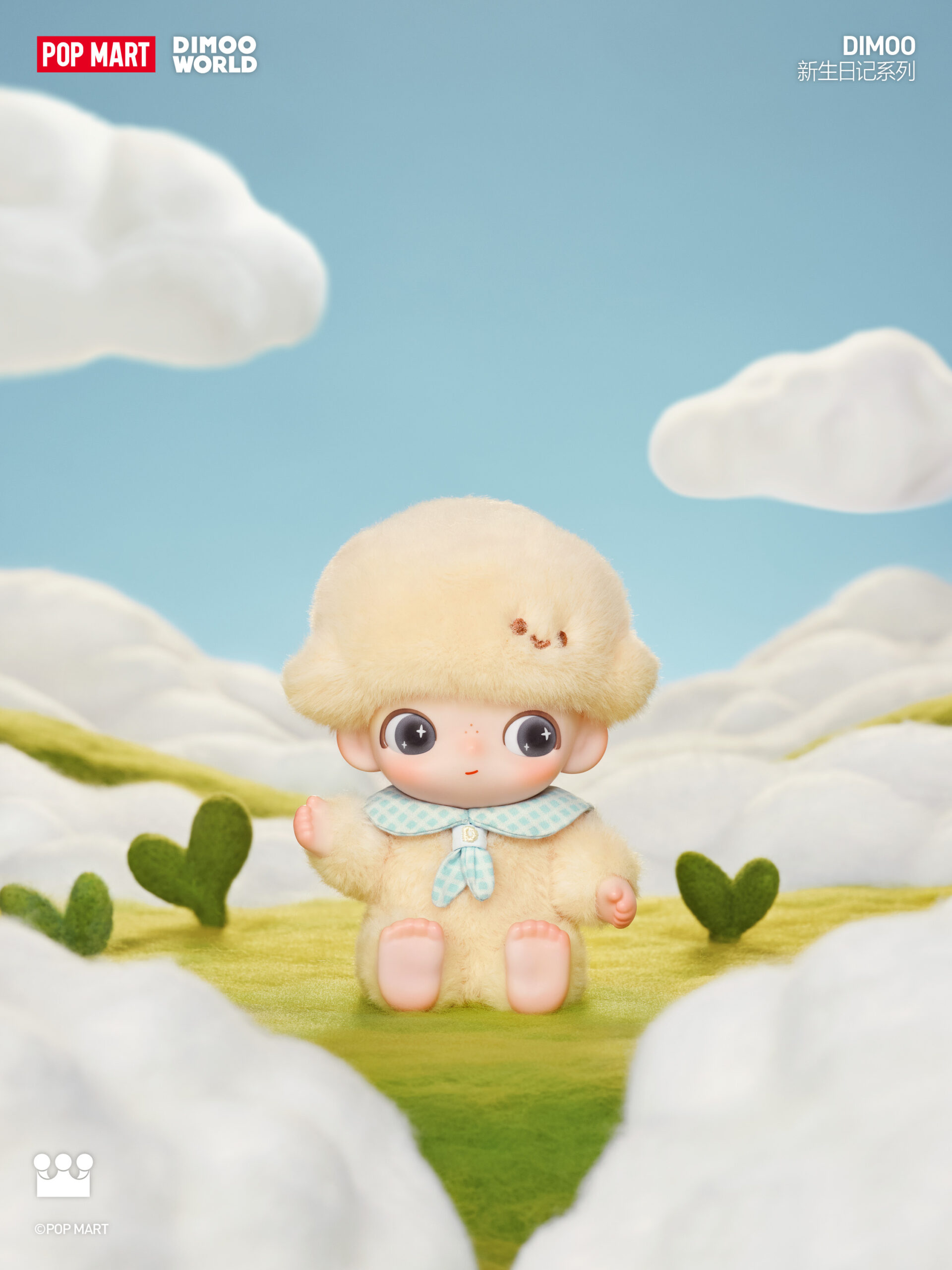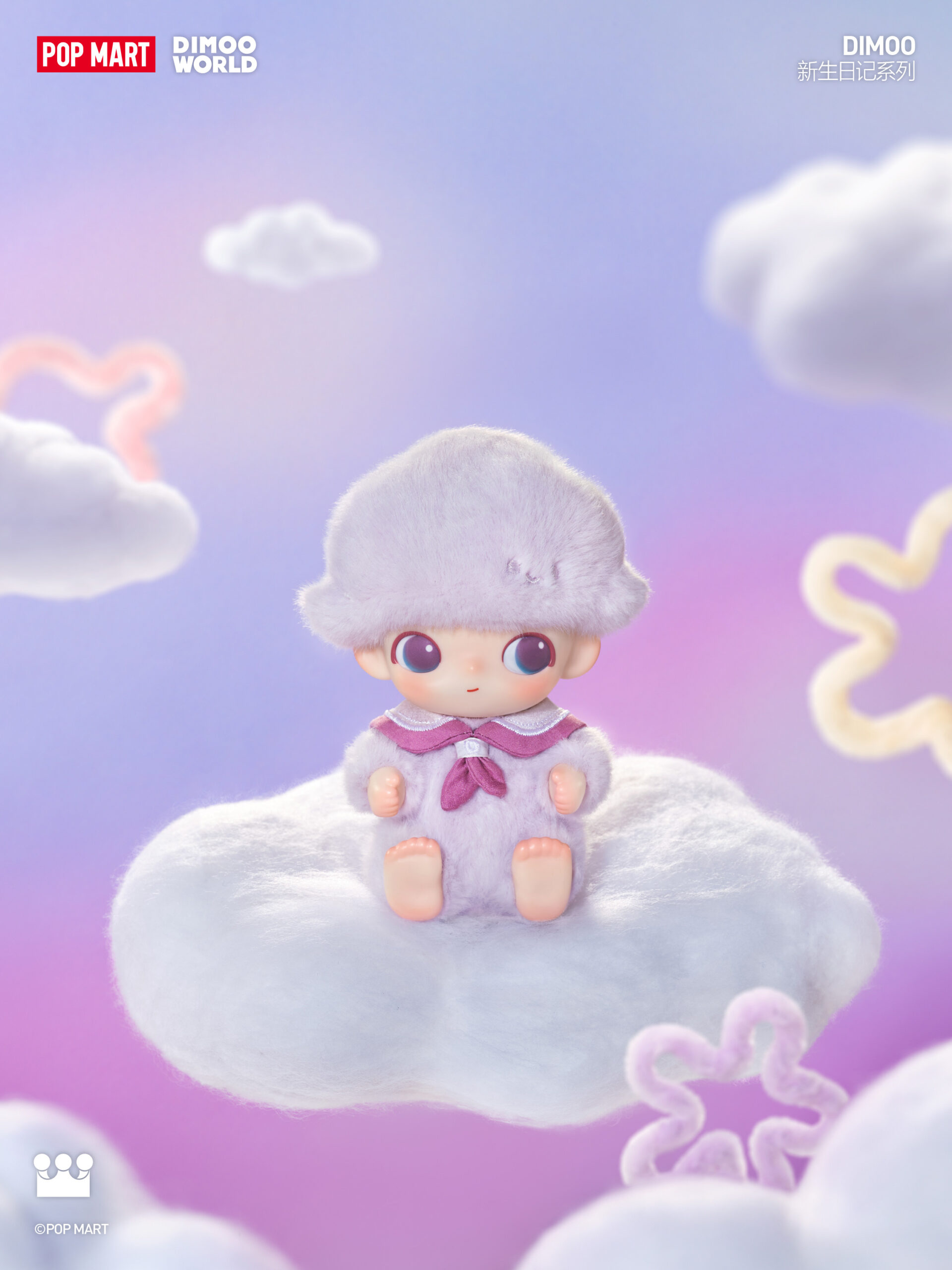 晨光漫过梦境边缘,头顶云朵的小男孩睁开双眼,第一次打量这个世界。他是 DIMOO——青年艺术家 AYAN DENG 笔下的造梦者。DIMOO 首套自主主题搪胶毛绒挂件盲盒——新生日记系列以七种情绪为主题,勾勒生命初见的模样。