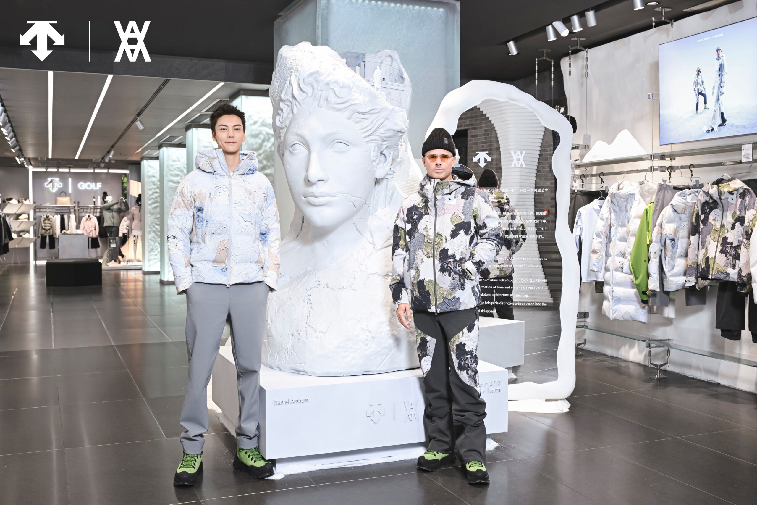 高端专业运动品牌 DESCENTE 迪桑特携手当代艺术家 Daniel Arsham,于上海新天地的 DESCENTE SHANGHAI 城市概念店打造以「冬日山野」为主题的限时快闪空间。艺术家 Daniel Arsham 及迪桑特品牌代言人陈伟霆一同出席,共同以艺术视角诠释 DESCENTE 品牌精神与冬季山系美学。