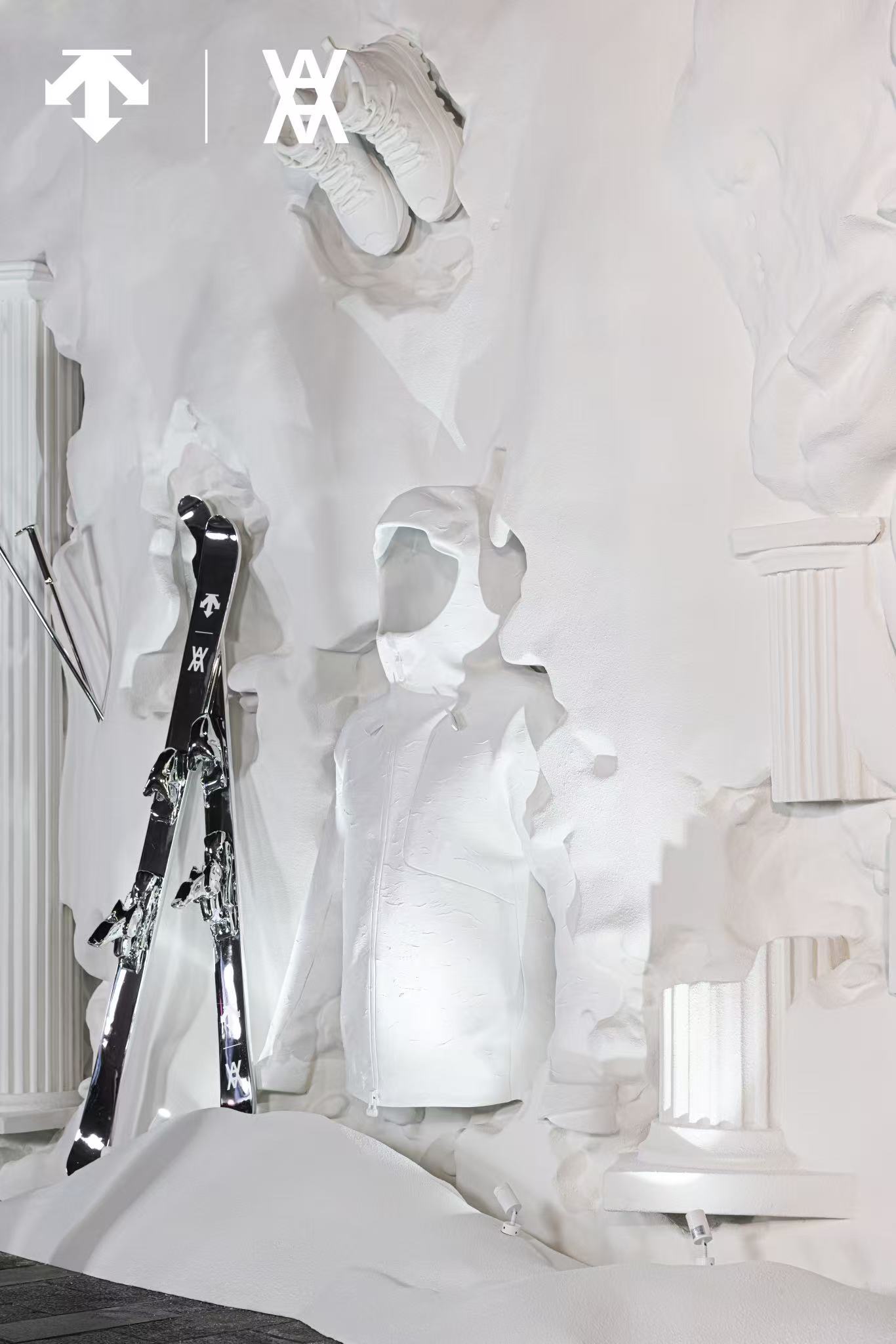 此次限时快闪空间以纯白冰雪结构与艺术装置,将 Daniel Arsham 的标志性艺术美学转化为可感知的体验场景,打造连接潮流艺术与冰雪运动的城市新地标。迪桑特通过从空间到产品的整体叙事,将联名系列的艺术理念延伸为行动家们「可见、可感」的表达。
