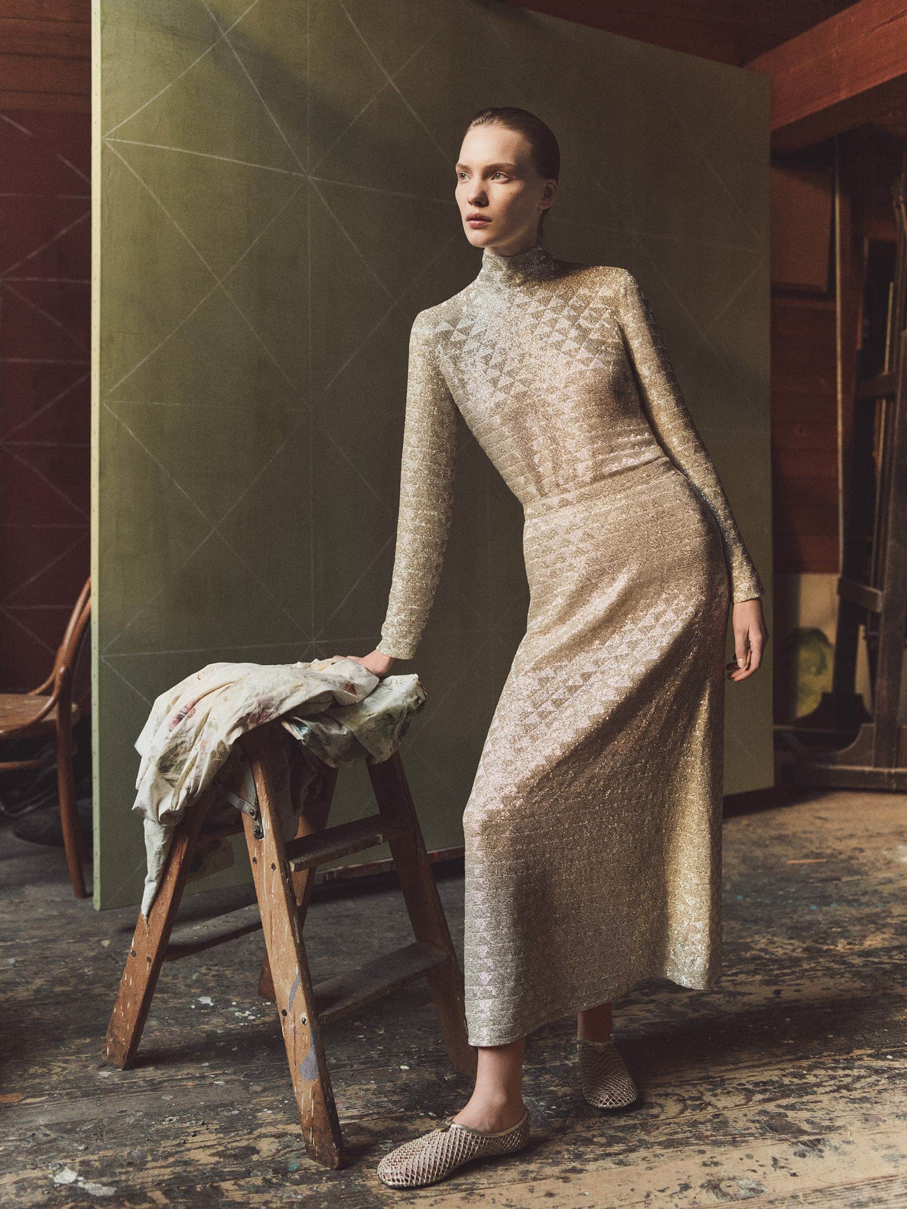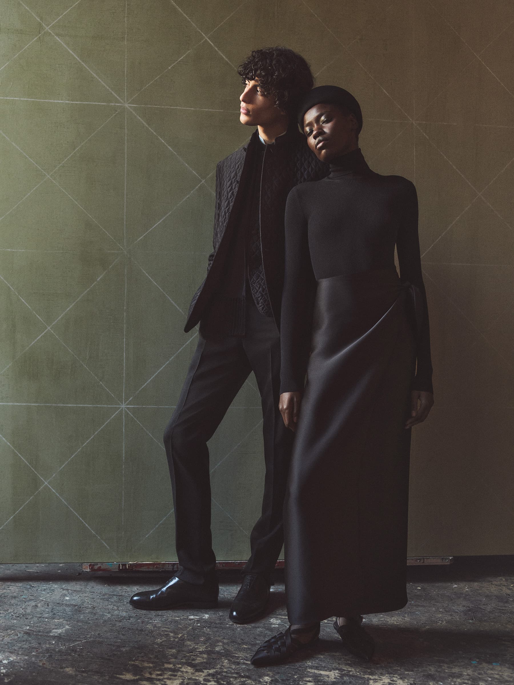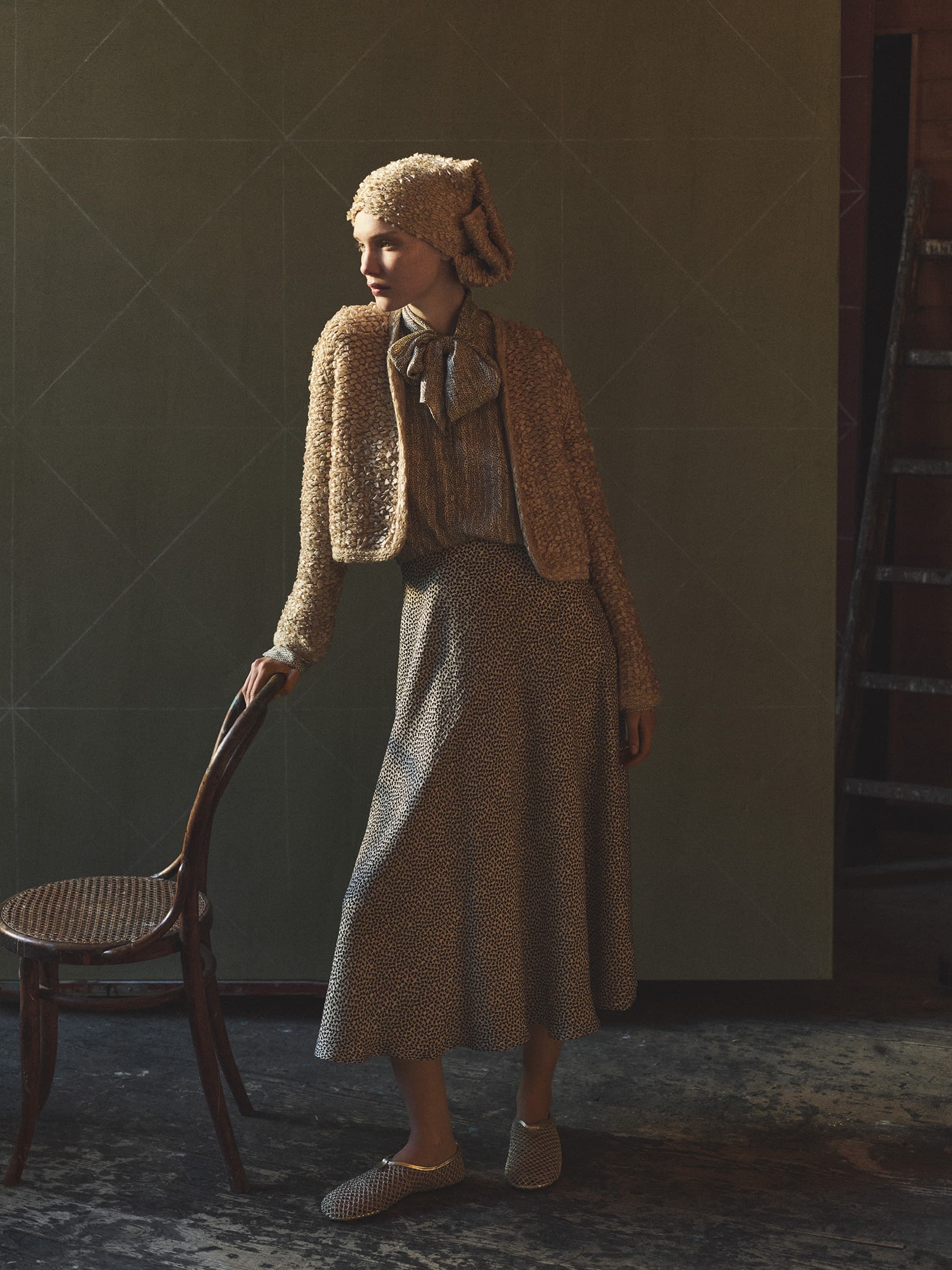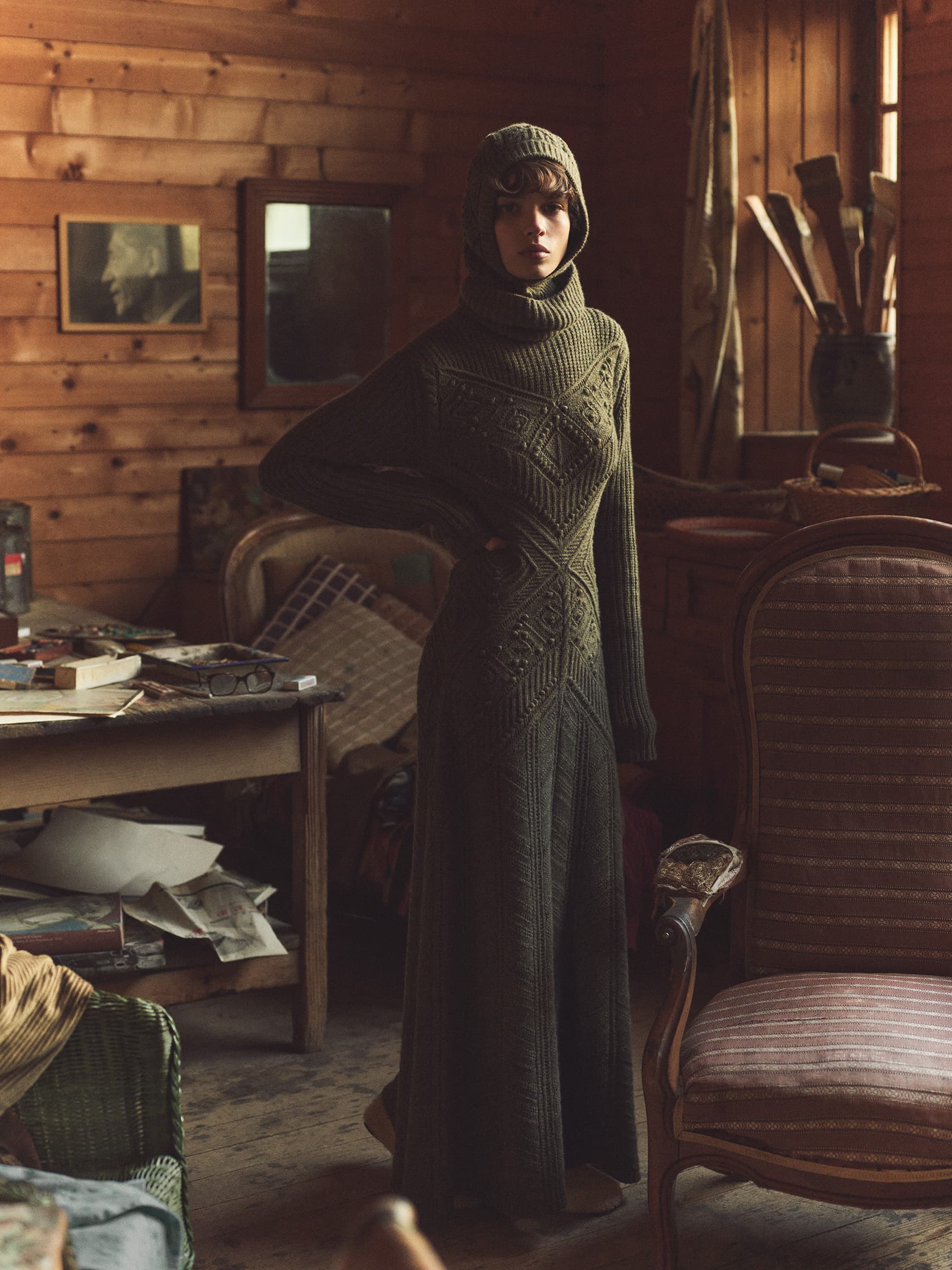 在众多品牌追逐璀璨光辉的季节里,Loro Piana 传递的更多是情感而非时尚。每一件衣物都与环境融为一体——婴儿羊绒在晨光中微微起伏,丝绒吸收阴影,双重羊驼毛如薄雾般铺展。色调——褐色、苔藓绿、树皮色、赭石——唤起自然与怀旧。它不是传统意义上的节日装扮,而是作为一种温暖、缓慢、触感的假日体验。