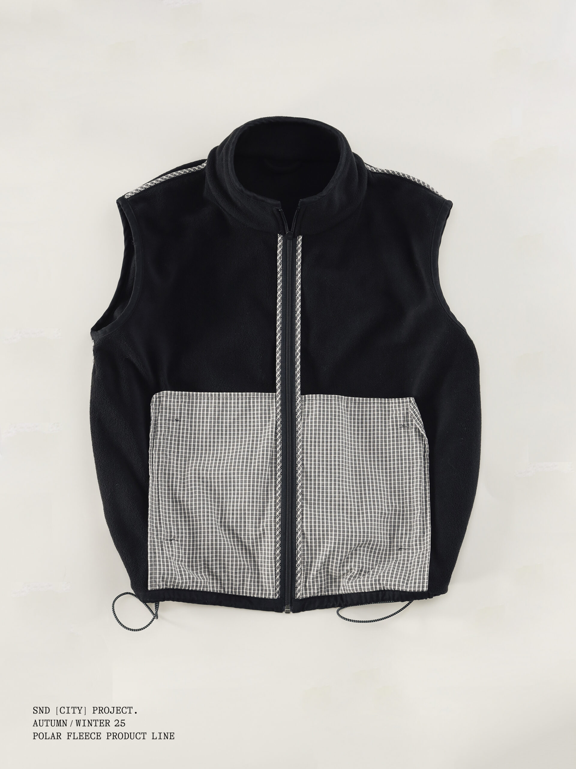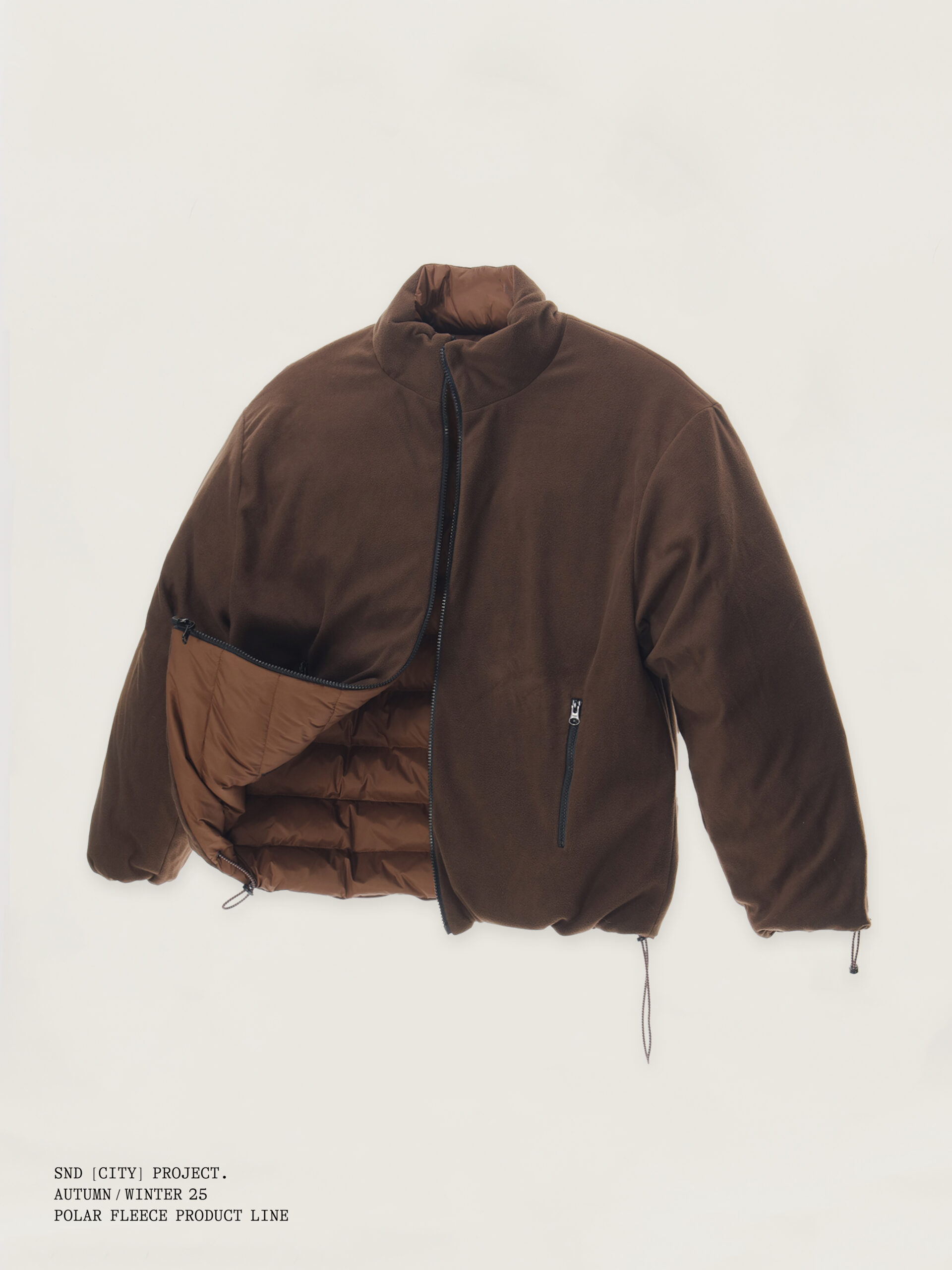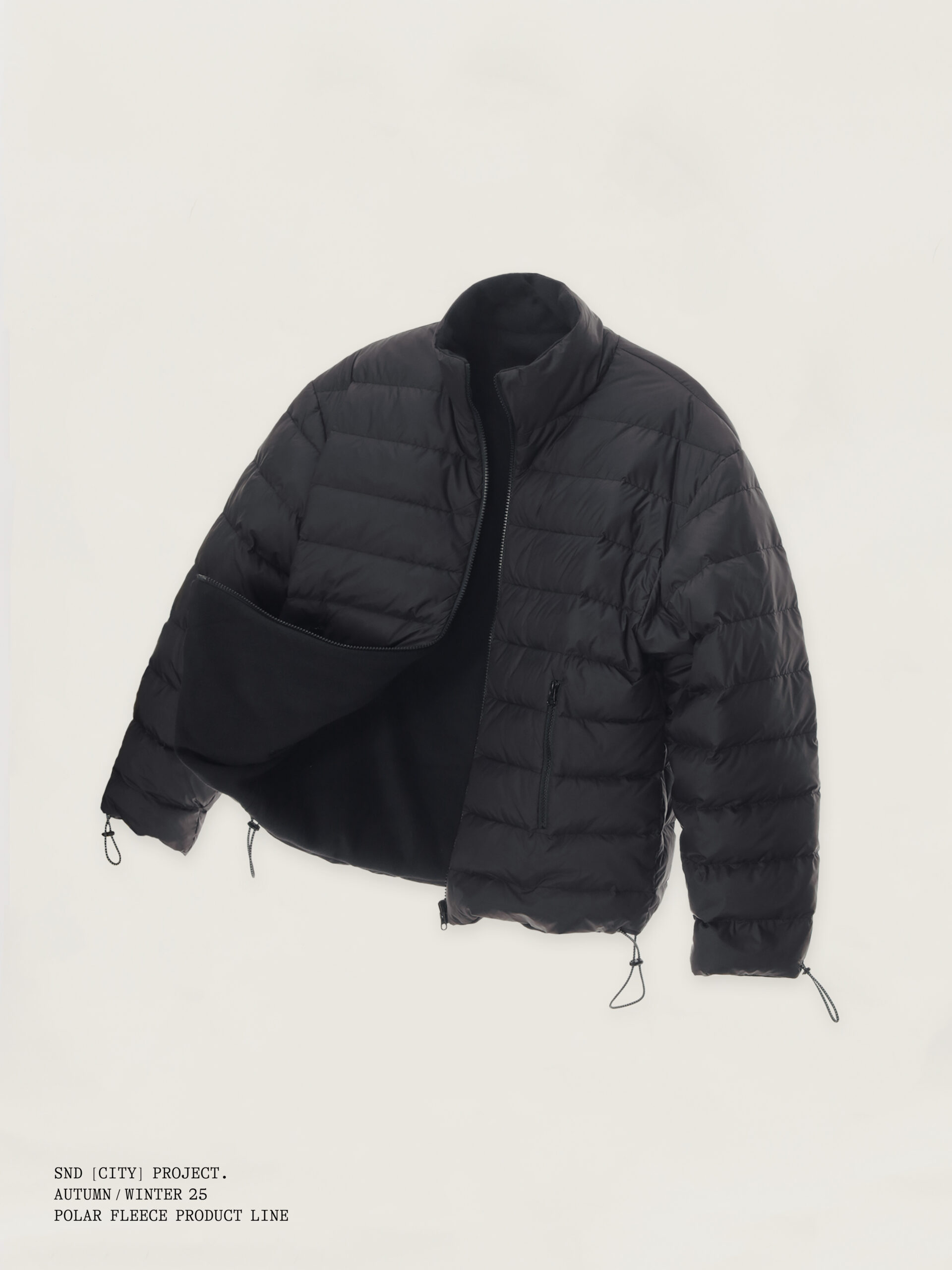 与此同时,SND CITY PROJECT 延续品牌对都市功能与实穿性的思考,推出摇粒绒与羽绒服两大类单品。 摇粒绒延续前作热门廓形,并在细节上全面升级:衣领、袖口与衣摆加入斜纹棉布包边,提升层次与耐用度;口袋采用撞色格纹面料,强化视觉识别;内里缝线全部包边处理, 整体更为干净利落。猪鼻扣与橡筋绳亦经过重新设计,呈现更精致的质感。 羽绒服则为 SND CITY PROJECT 的首次尝试,以轻量化设计在保暖与造型之间取得平衡,延续品牌简约、实穿的调性,为冬季穿着带来更多可能。