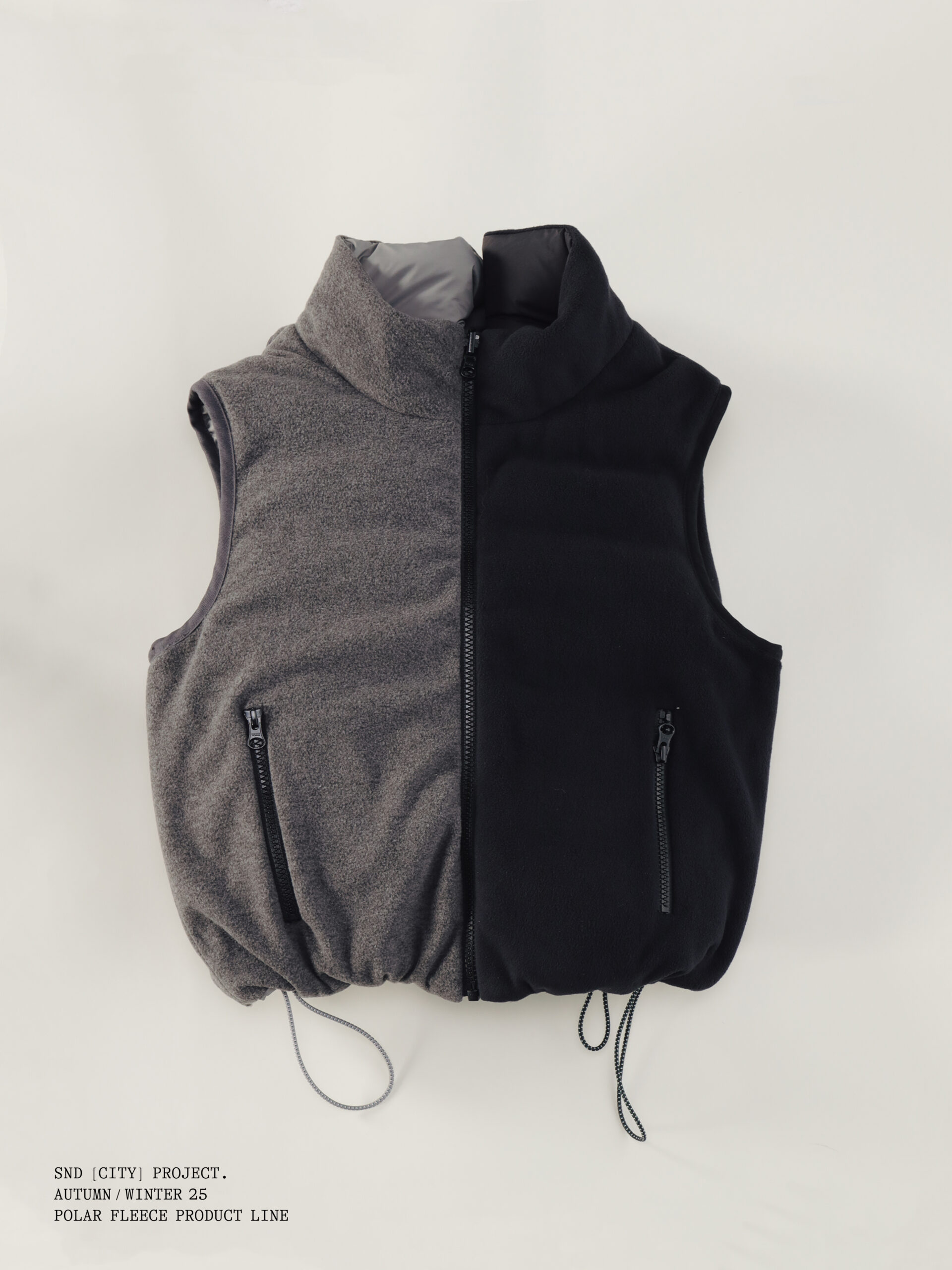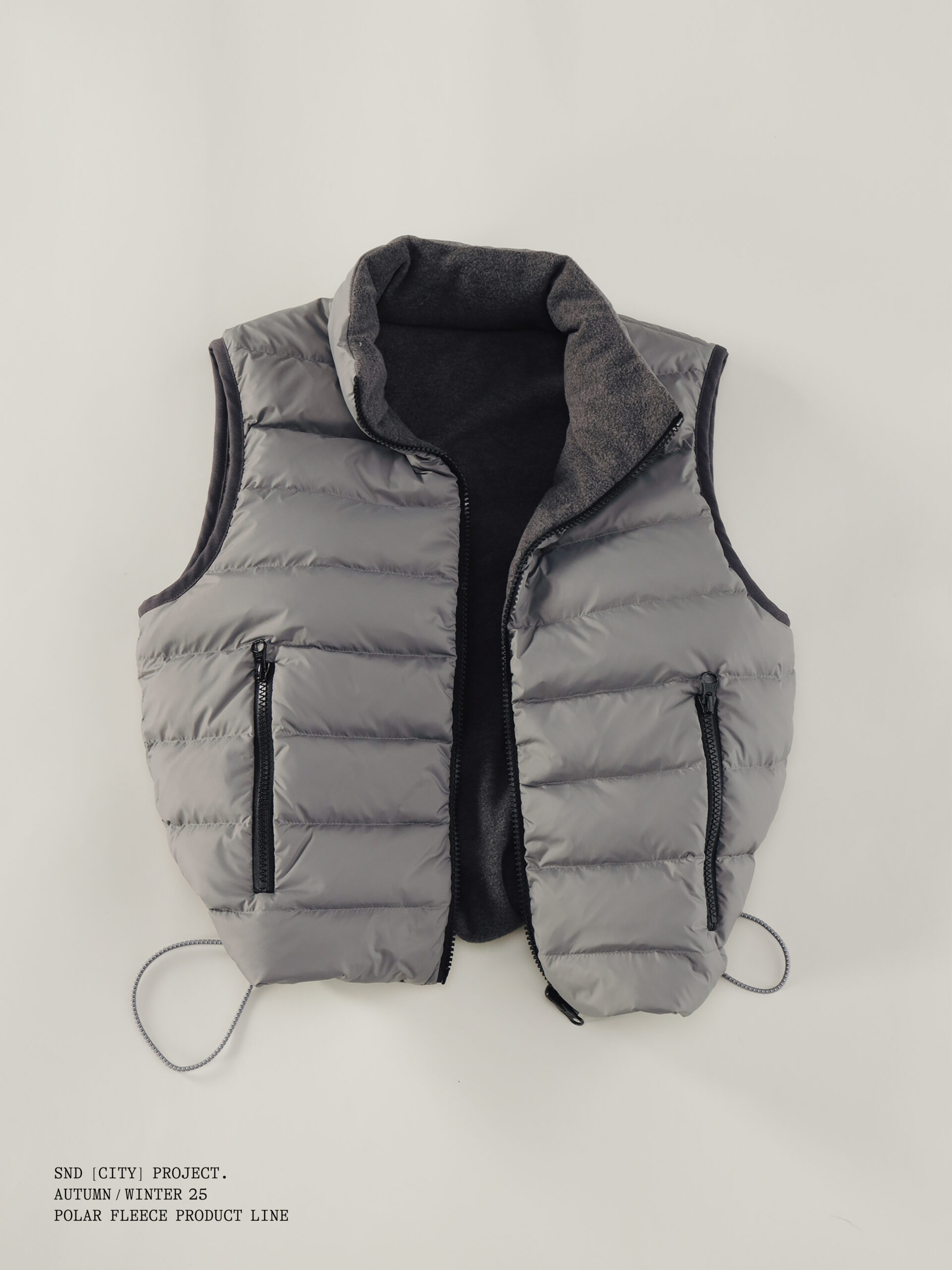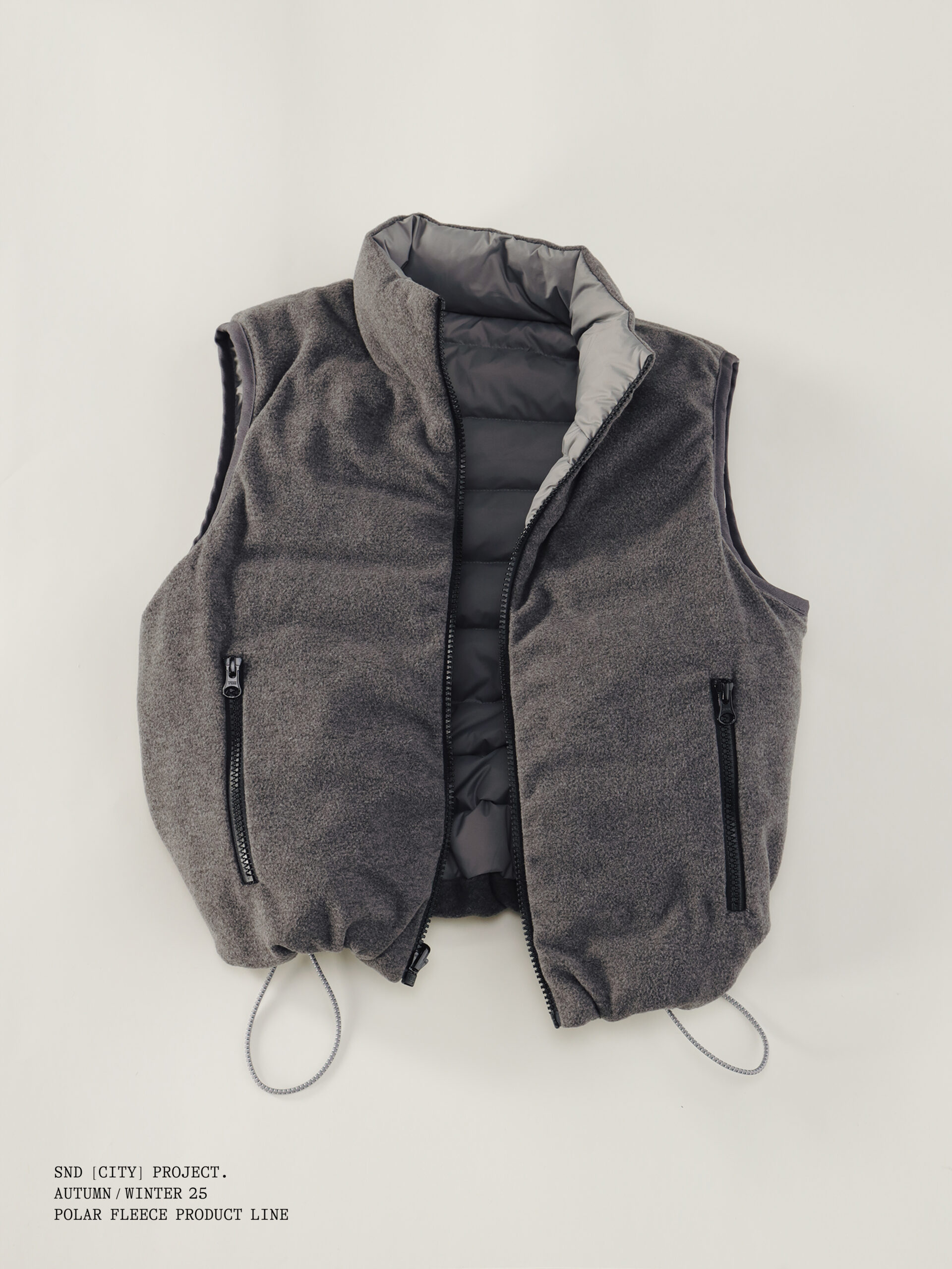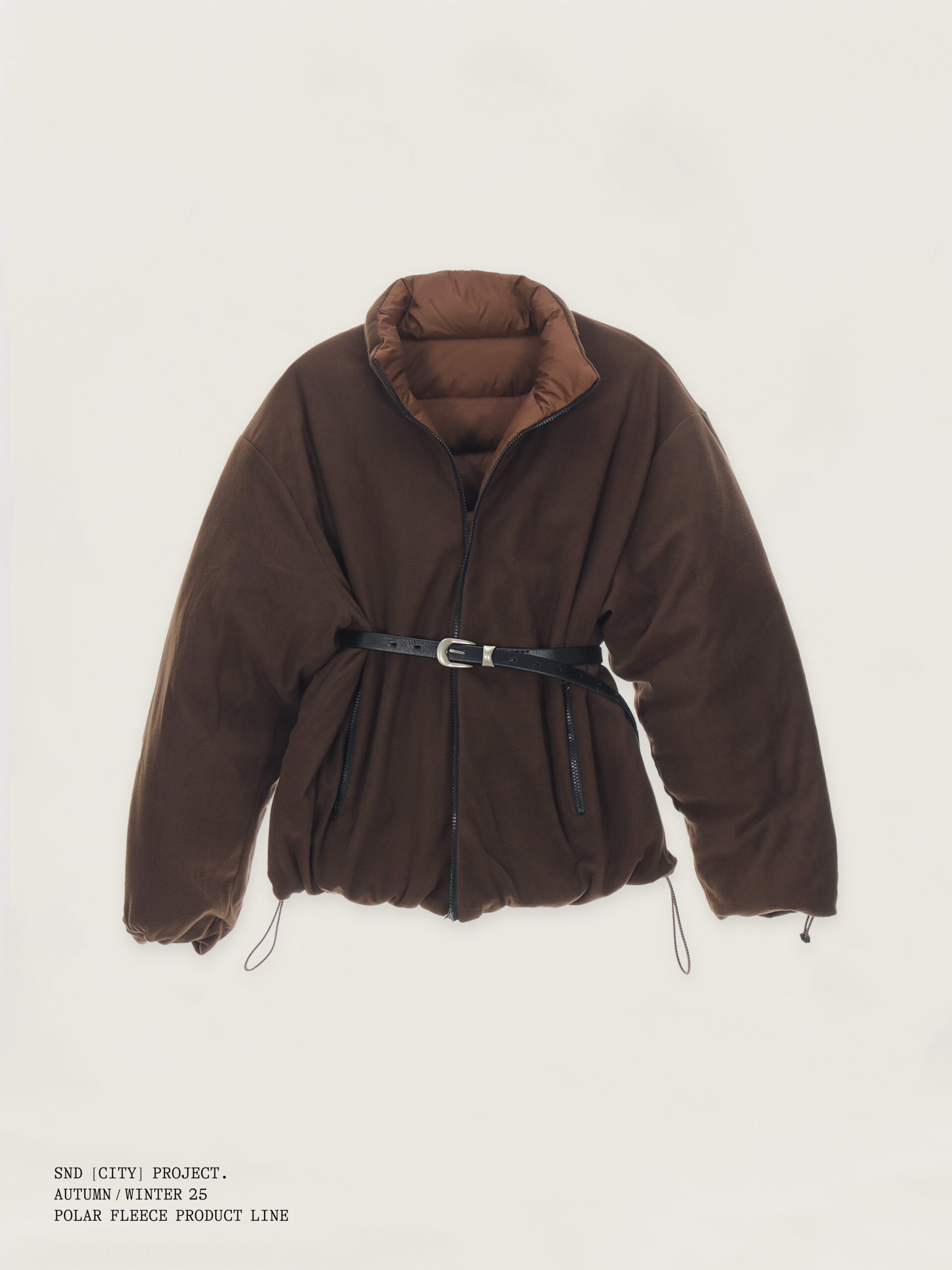 与此同时,SND CITY PROJECT 延续品牌对都市功能与实穿性的思考,推出摇粒绒与羽绒服两大类单品。 摇粒绒延续前作热门廓形,并在细节上全面升级:衣领、袖口与衣摆加入斜纹棉布包边,提升层次与耐用度;口袋采用撞色格纹面料,强化视觉识别;内里缝线全部包边处理, 整体更为干净利落。猪鼻扣与橡筋绳亦经过重新设计,呈现更精致的质感。 羽绒服则为 SND CITY PROJECT 的首次尝试,以轻量化设计在保暖与造型之间取得平衡,延续品牌简约、实穿的调性,为冬季穿着带来更多可能。