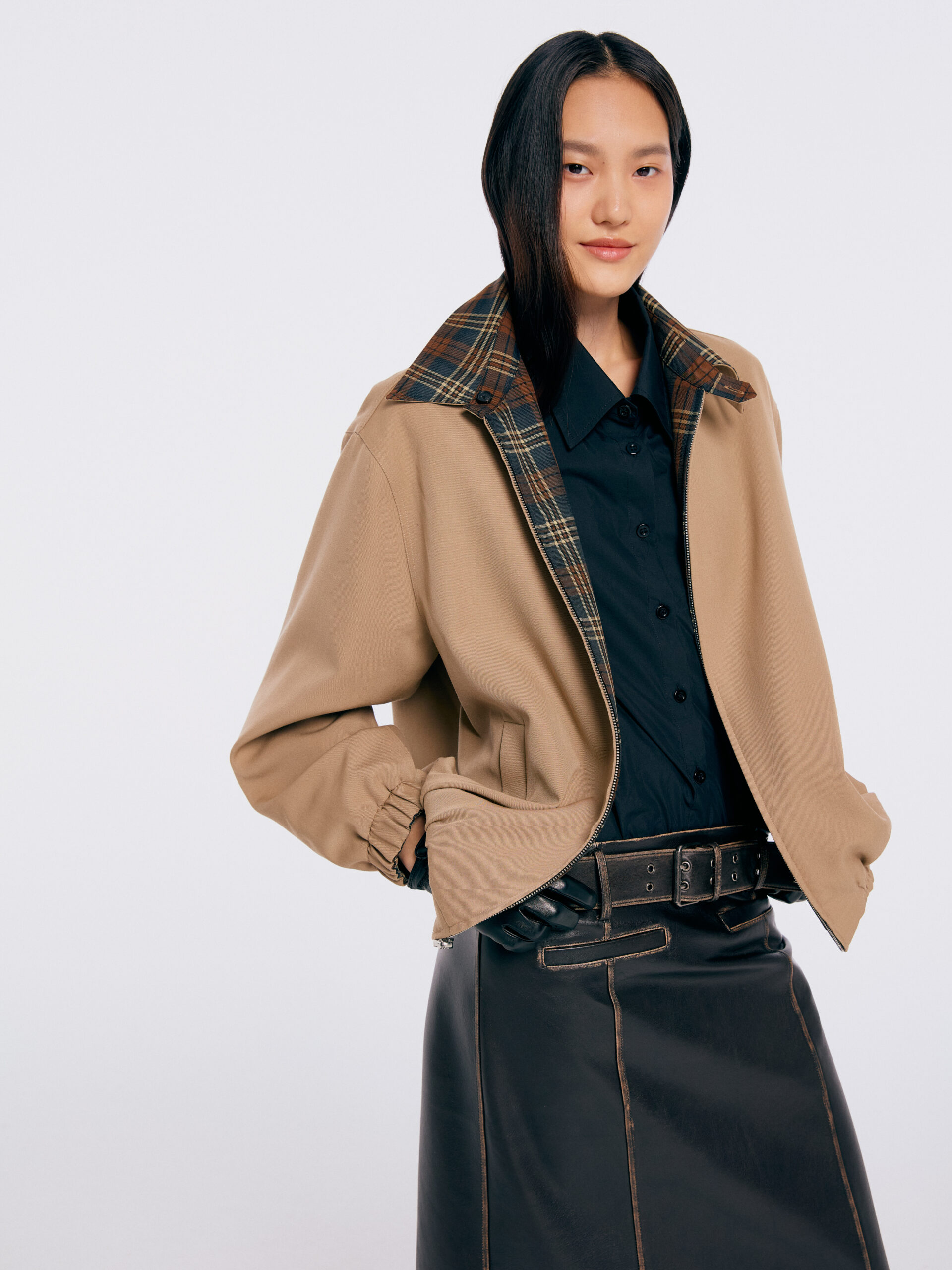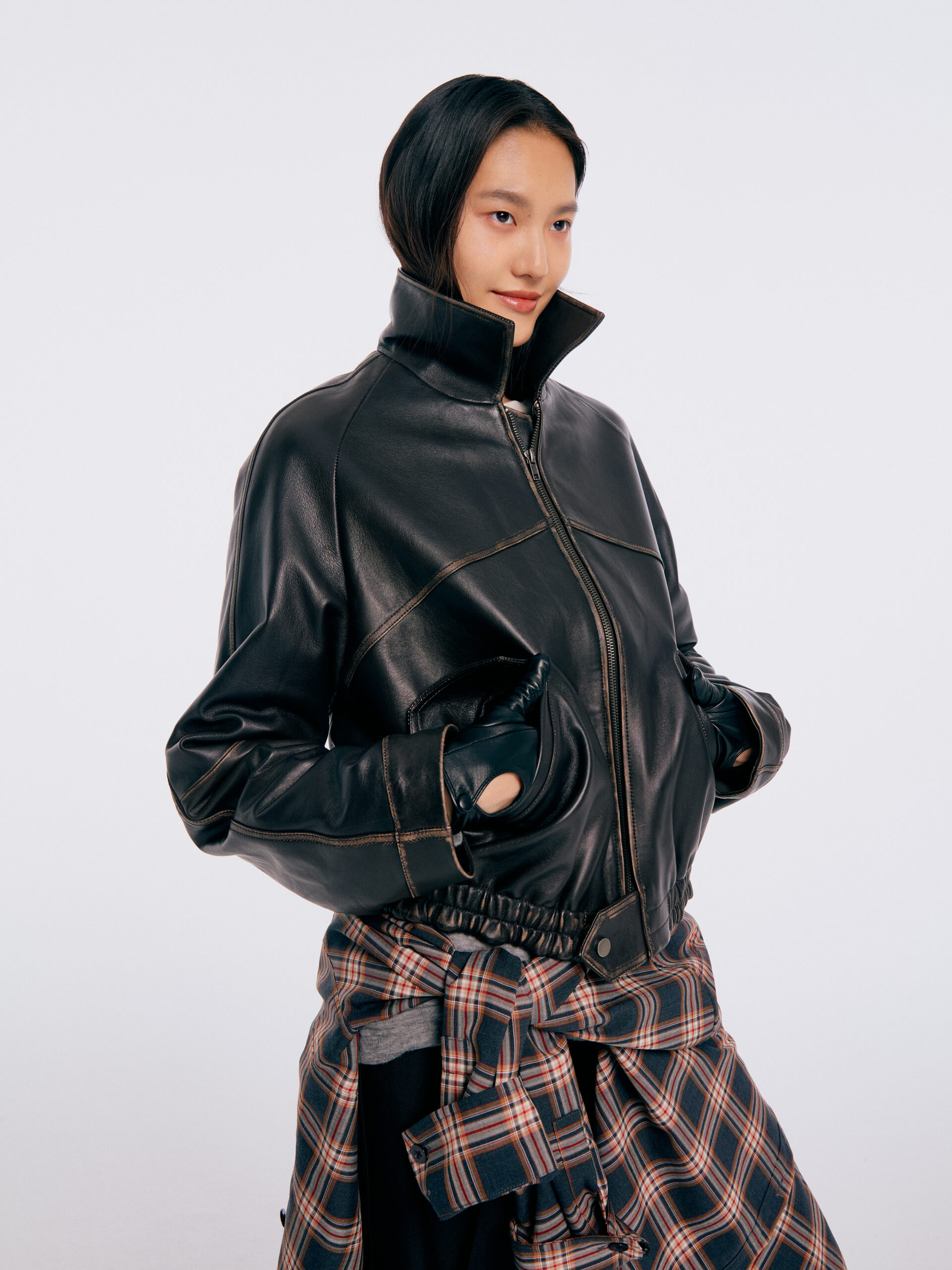 作为 SND CITY PROJECT 的延伸篇章,URBRIC 以「城市中的织造结构」为核心理念,将建筑的理性美学与日常服饰相结合,探索成衣在当代都市语境中的新表达。 系列设计中,经典的苏格兰格纹被注入体积与建筑感;不规则褶皱的衬衫裙以结构与柔软并 存的方式呈现;做旧皮夹克则以 vintage 的触感重塑都市感的自由精神。URBRIC 所呈现的, 并非功能性的城市制服,而是一种平衡秩序与个性的当代日常。