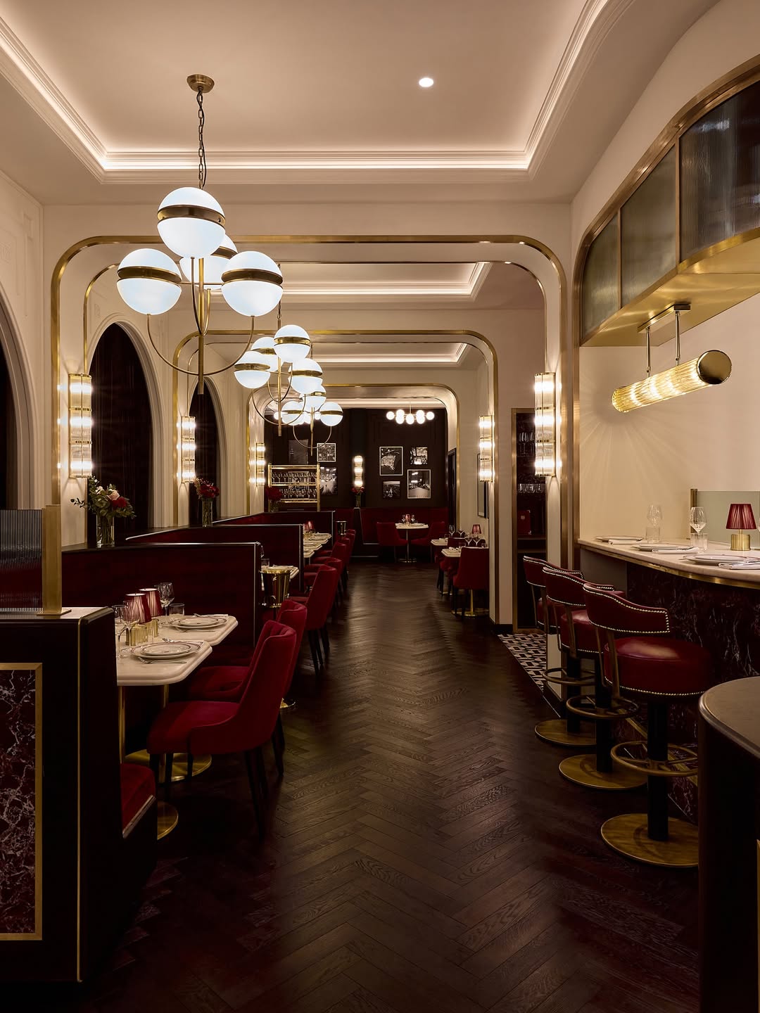 该旗舰店与建筑师 Ben Porto 进行了深度合作,共同打造出独具特色的空间设计。细看店铺,主入口处保留了建筑的原始内饰,完美展现了百年历史的弯曲玻璃窗和窗框,整个设计注重保留历史风貌,同时营造出奢华的店面氛围。