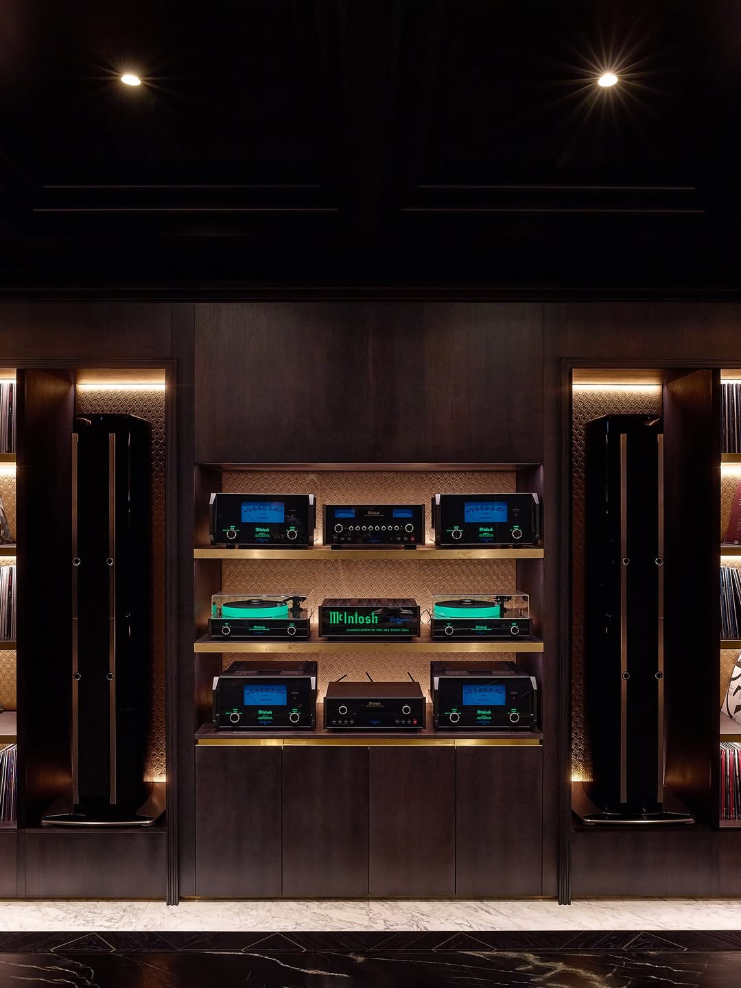 此外,该旗舰店还配备了与 McIntosh 合作的音响系统,位于店铺的下层,这个区域展示了多个品牌鞋履和配饰系列。值得一提的是,也是 KITH 所有旗舰店中最「顶级」的音响系统之一。