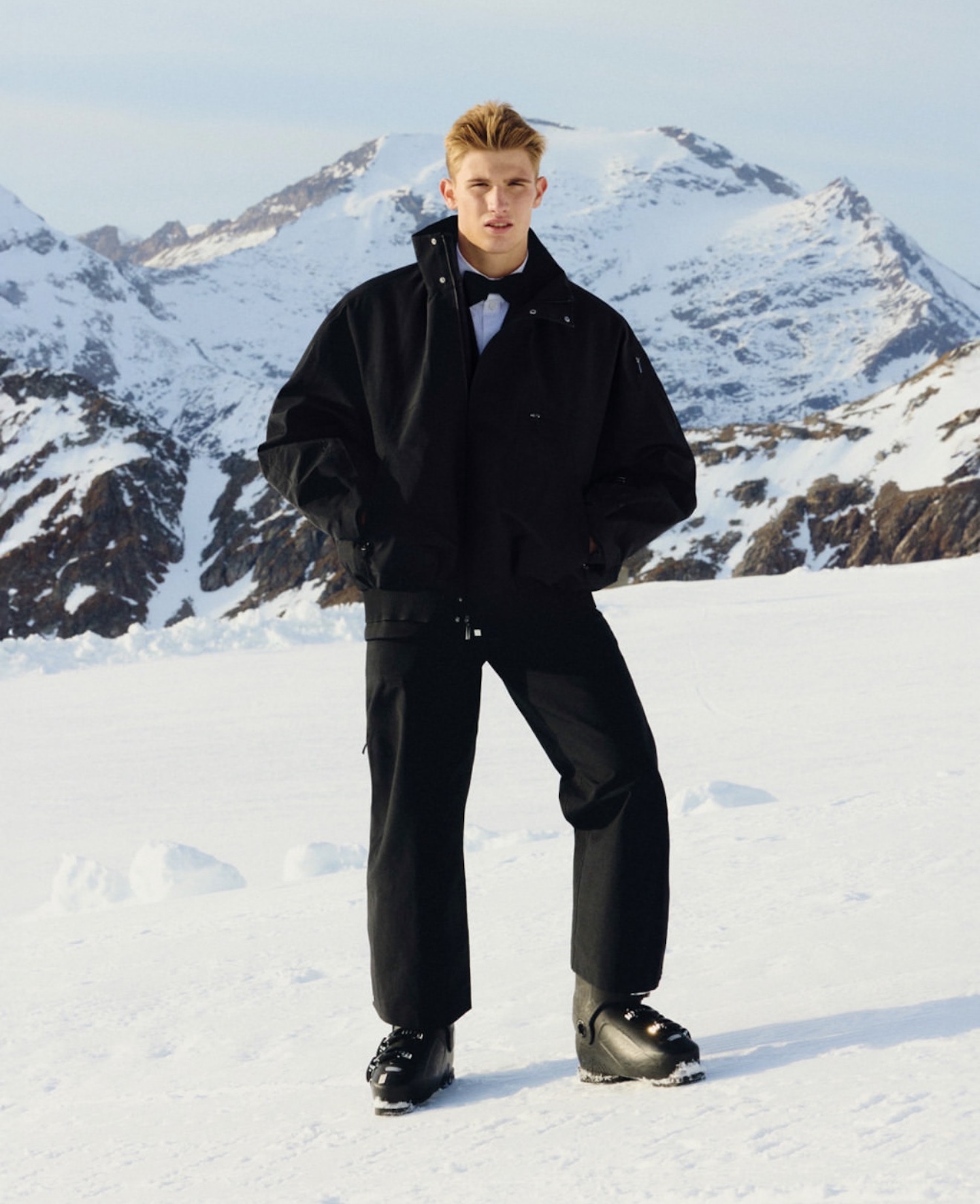 Nike 与 JACQUEMUS 再度携手,并将目光投向雪山,推出了包含 18 件单品的 Après Ski 系列。双方首次将滑雪服和山地风格服饰引入合作,融合了高性能工程技术与 JACQUEMUS 极简风格,为冬季运动服饰注入时尚与前卫。该系列以三层 GORE-TEX® 面料的外套和裤装为核心,在对严寒环境的同时兼顾舒适性,让穿者能从雪道丝滑过渡到滑雪后的休闲时光。抢眼的二合一 GORE-TEX 外套将剪裁合身的防水外壳与可拆卸保暖飞行员夹克结合,配套的 GORE-TEX 长裤为其锦上添花。每款单品都饰有品牌联名标识。