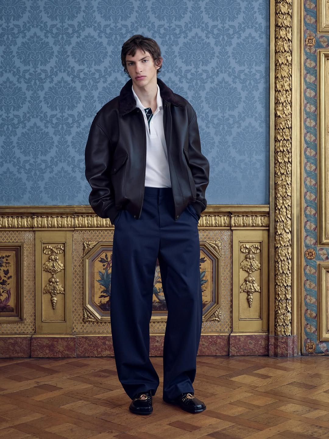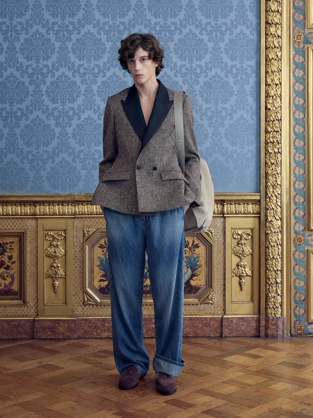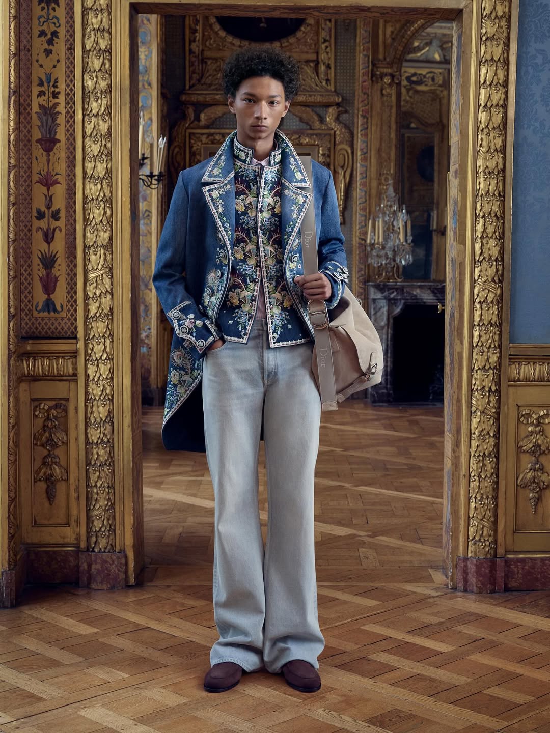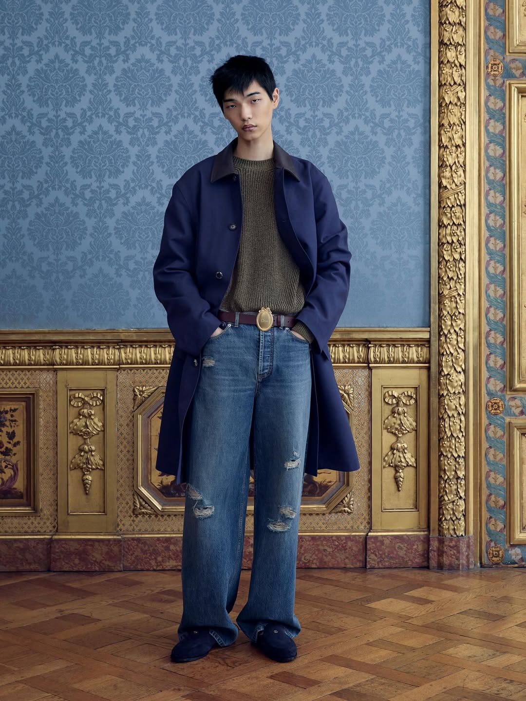 本季继续围绕 Anderson 标志性的视觉符号展开:华丽刺绣外套,以及以全新方式呈现的经典 Bar 夹克。系列在巴黎 Île Saint-Louis 的一座历史宅邸中拍摄,Anderson 指出这里曾在 19 世纪由波德莱尔居住,其隐含的精英文化语境正是其研究服装阶层符号的重要背景。