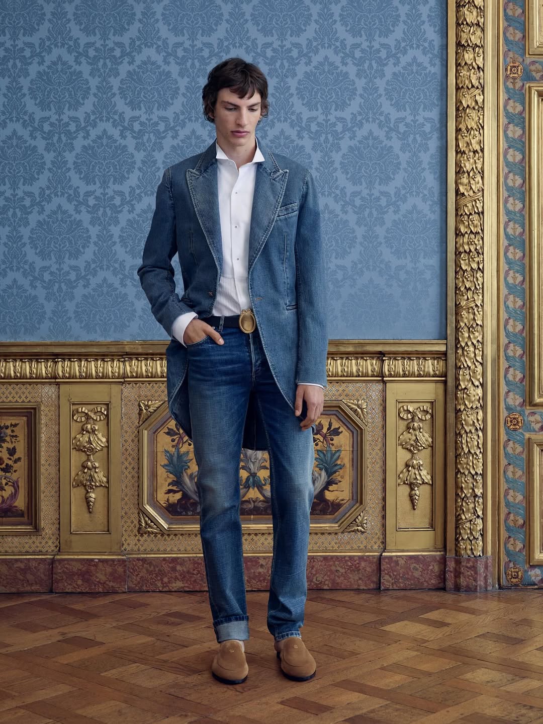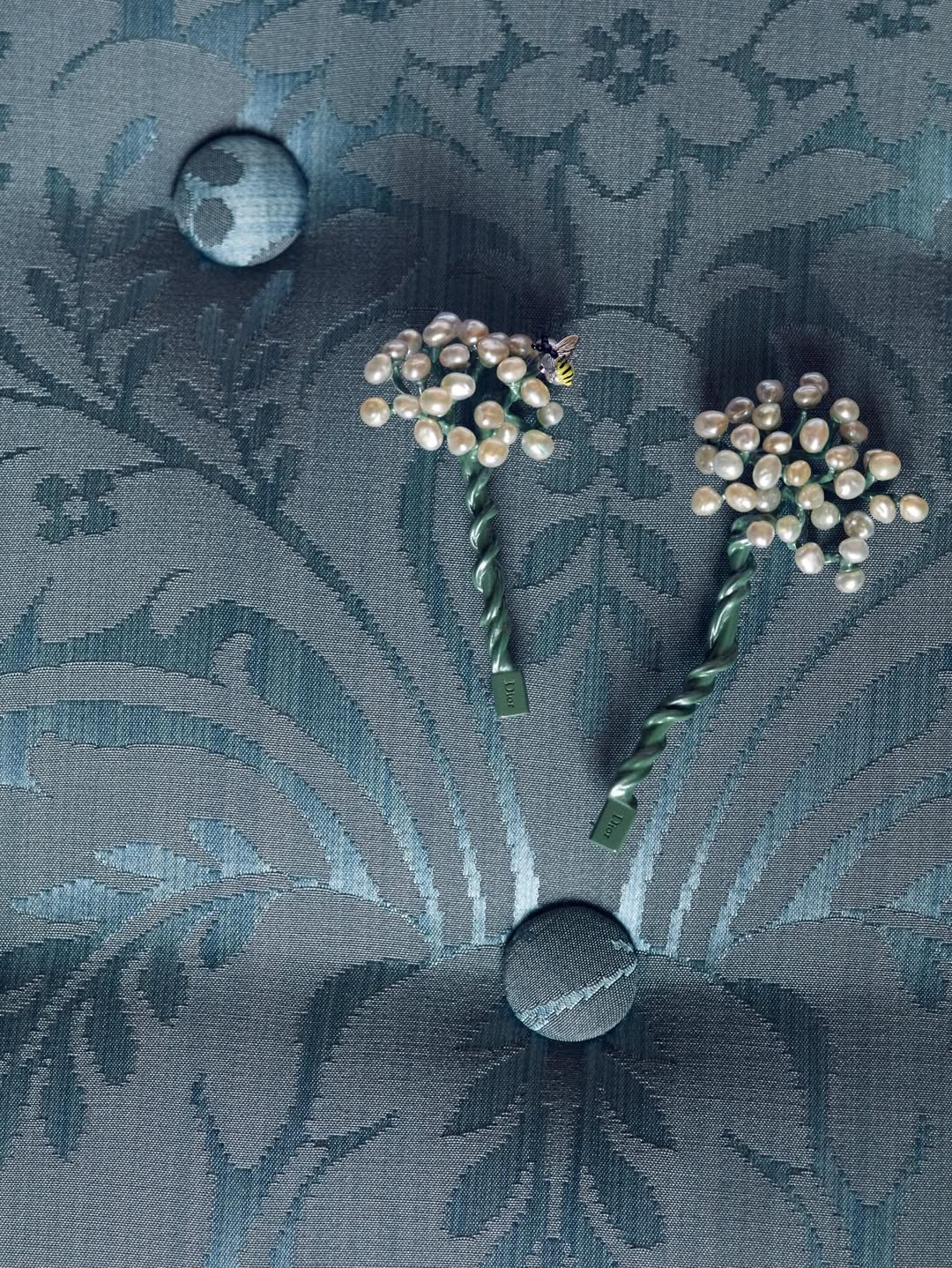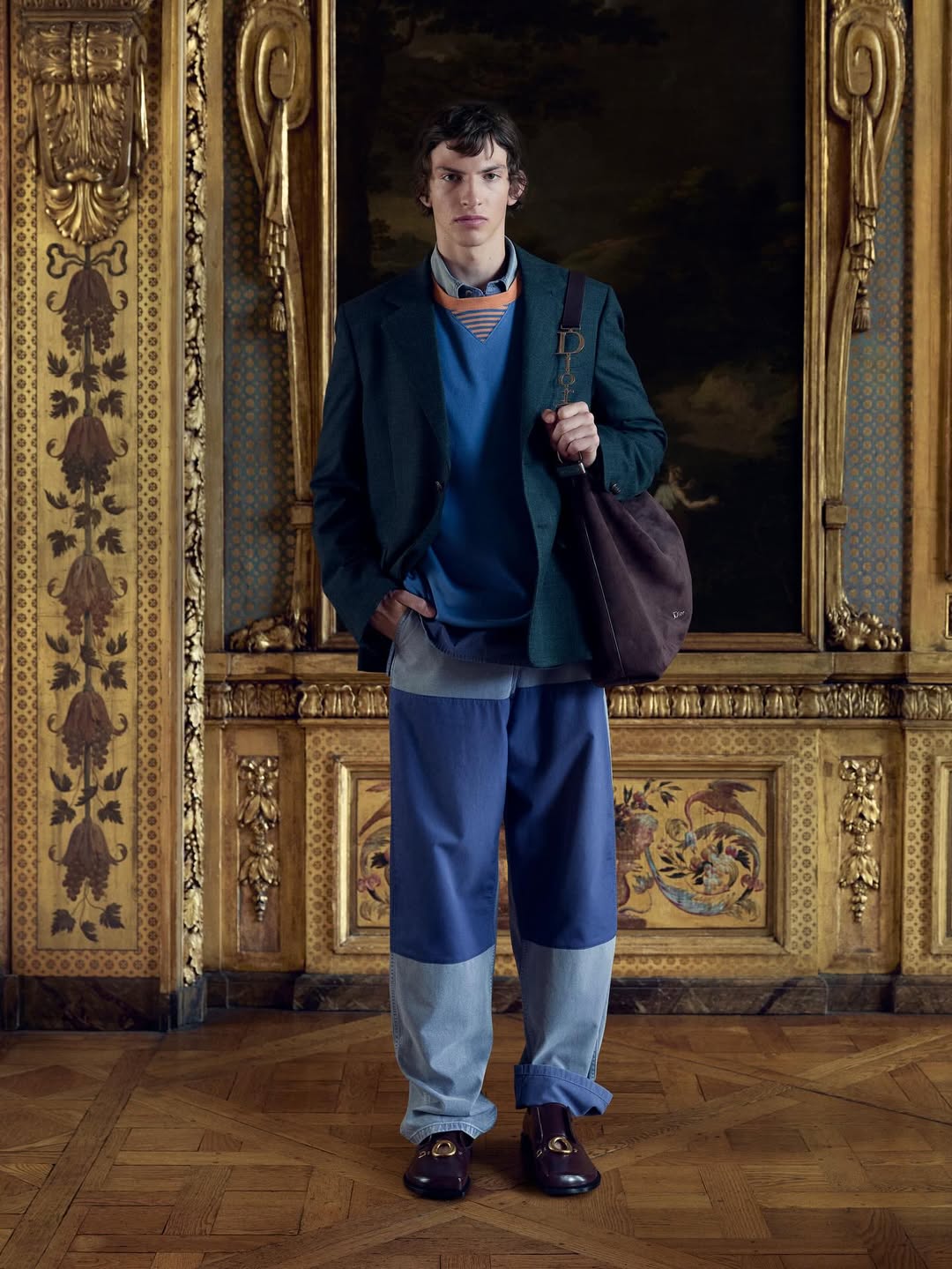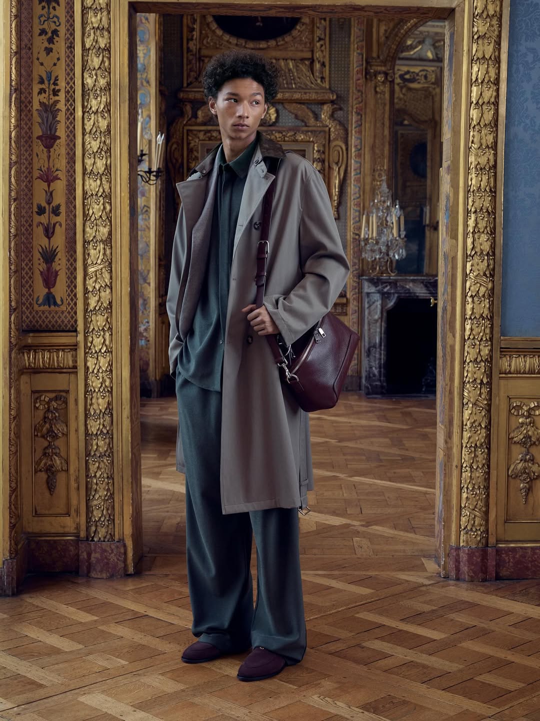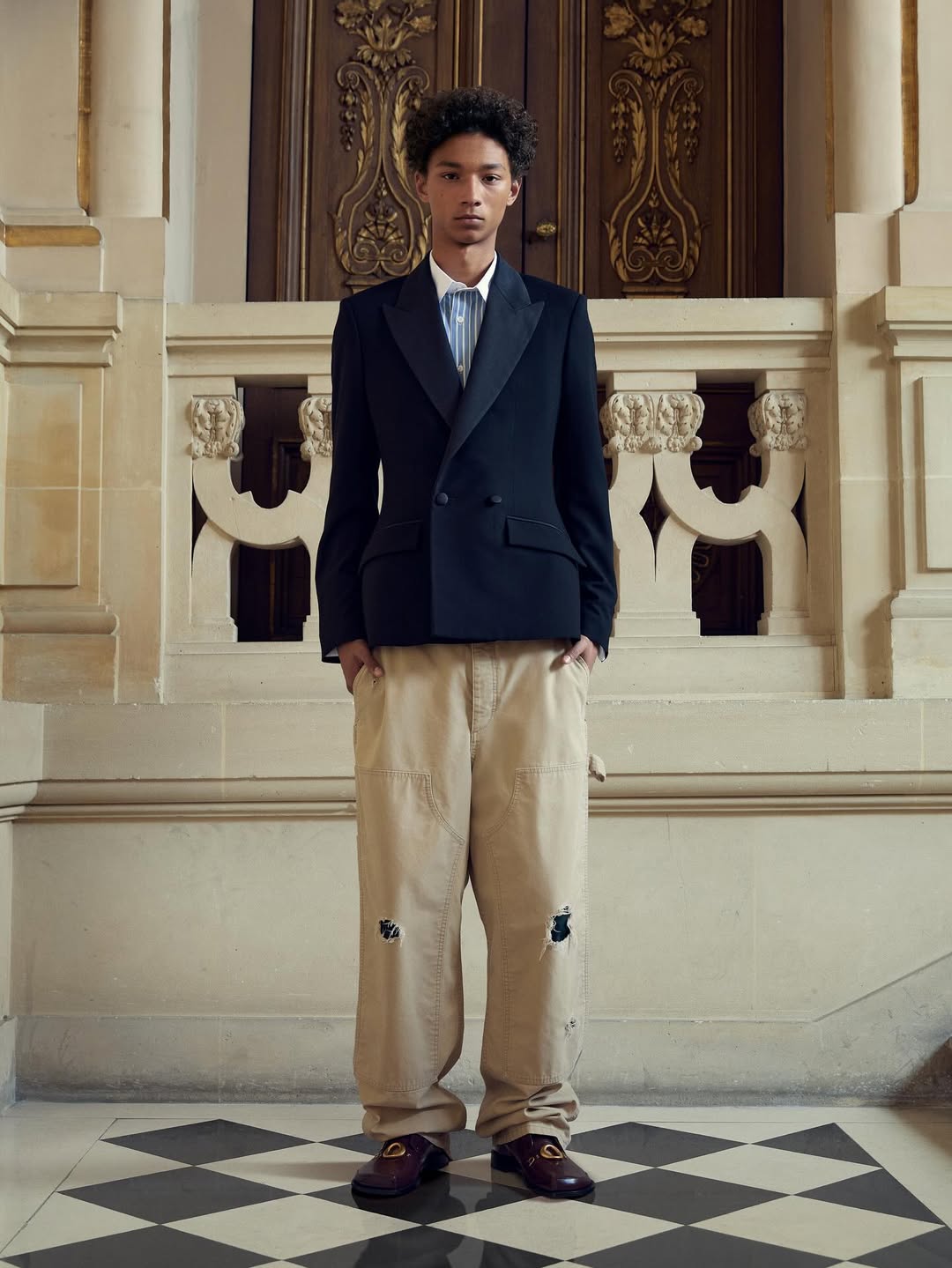 本季继续围绕 Anderson 标志性的视觉符号展开:华丽刺绣外套,以及以全新方式呈现的经典 Bar 夹克。系列在巴黎 Île Saint-Louis 的一座历史宅邸中拍摄,Anderson 指出这里曾在 19 世纪由波德莱尔居住,其隐含的精英文化语境正是其研究服装阶层符号的重要背景。