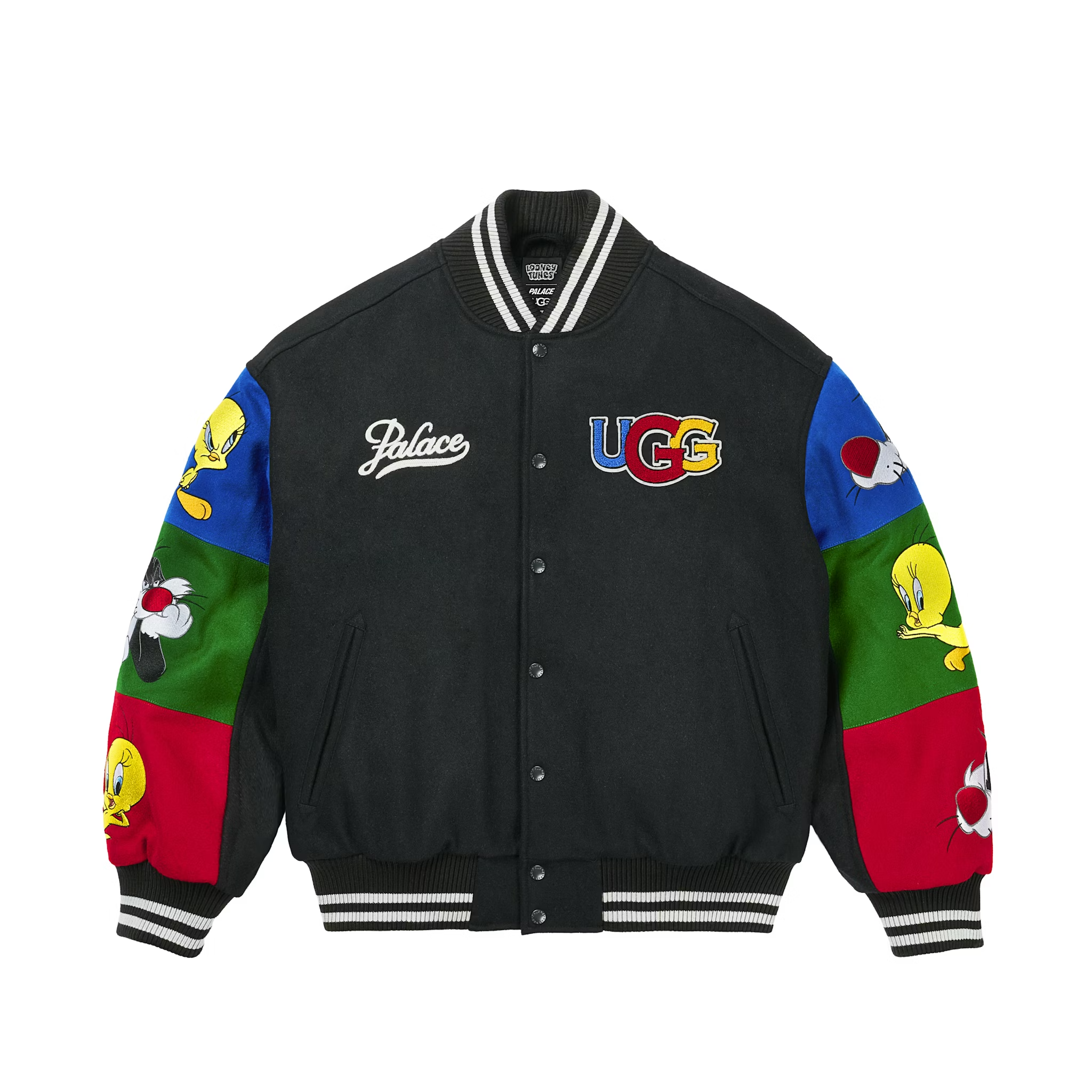 此番以经典 Tasman 和 Classic Mini 鞋款作为基础,在鞋面刺绣有 Sylvester 和 Tweety 的追逐图案,PALACE logo 和云朵也以同种工艺打造,加上柔软温暖的内衬,保证了可爱与舒适着用感。服装方面除了 T恤、卫衣套装外,还带来经典棒球夹克。UGG x Looney Tunes x PALACE 联名系列将于 12 月 5 日登陆欧美地区,12 月 6 日上架亚洲地区,喜欢的朋友不妨密切留意。