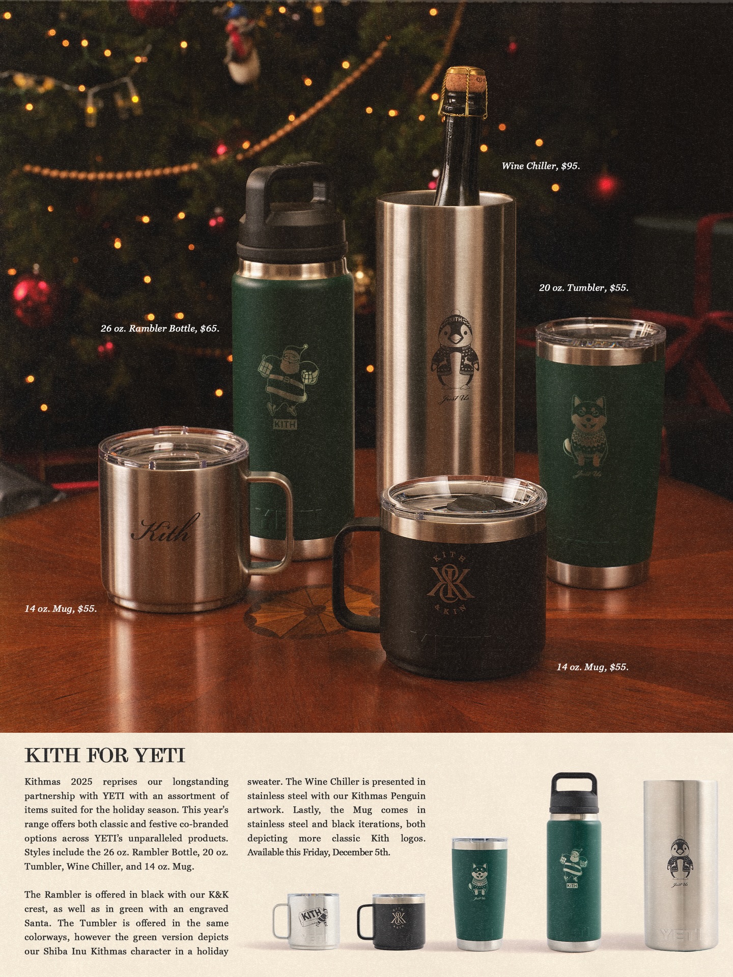 KITH 正式发布 2025 年度「Kithmas」假日系列,以豪华生活方式为概念打造迄今为止最丰富的节日产品阵容。系列涵盖与 Rocco 联名的智能饮料冰箱、Bose SoundLink Plus 限定配色音响、Backbone Pro 透明游戏手柄及 YETI 联名户外装备;家居线新增施华洛世奇纽约球队饰品与 Craftspring 手工装饰。迪士尼皮克斯主题服装、Radio City Rockettes 联名系列及两款限量高达模型套件同步登场,童装线提供可定制字母套装。据悉全系列产品将于美东时间 12 月 5 日通过 KITH 全球门店、官网及 App 同步发售,感兴趣的朋友不容错过。