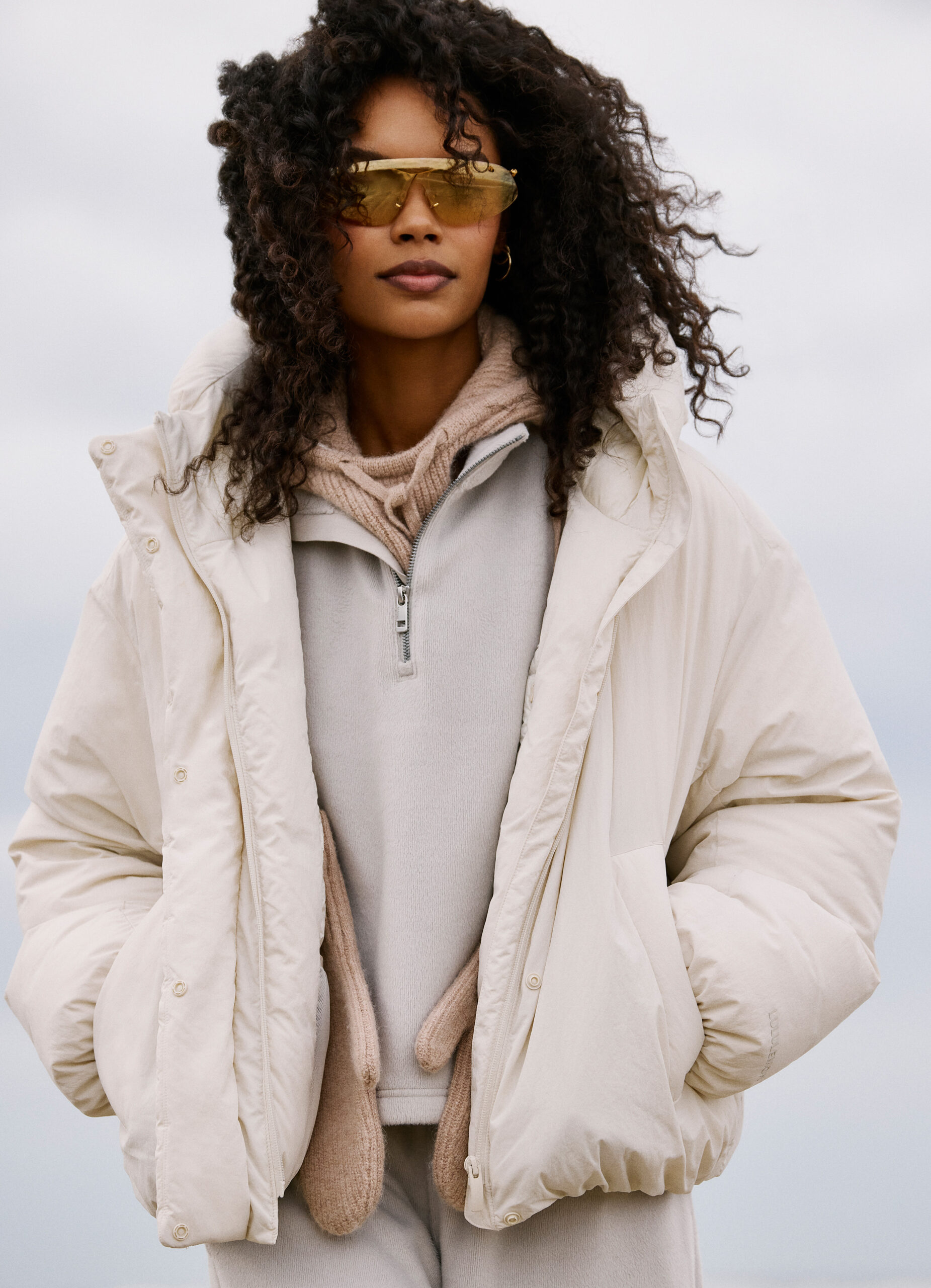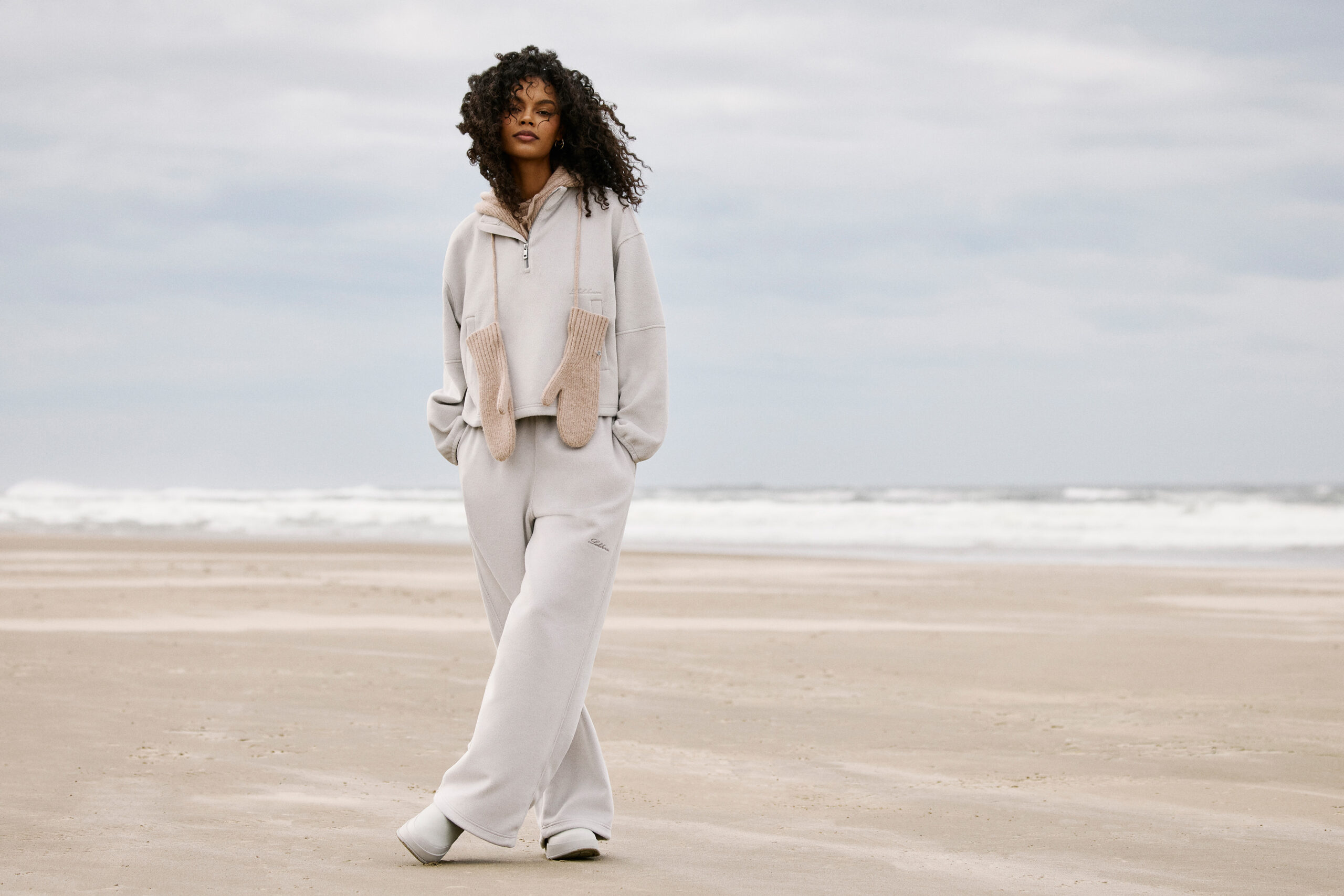 白色是呼吸的留白,也是柔软的底色。穿上 Plush Velour 绒面超宽松款卫衣套装,让细腻拉绒给予贴身呵护,伴她惬意度过休闲时光。600 蓬松度鹅绒填充的 Bubble-Hem 蓬松下摆羽绒外套及轻盈缓震的 Wunder Puff™ 短靴,舒适成为生活本色。