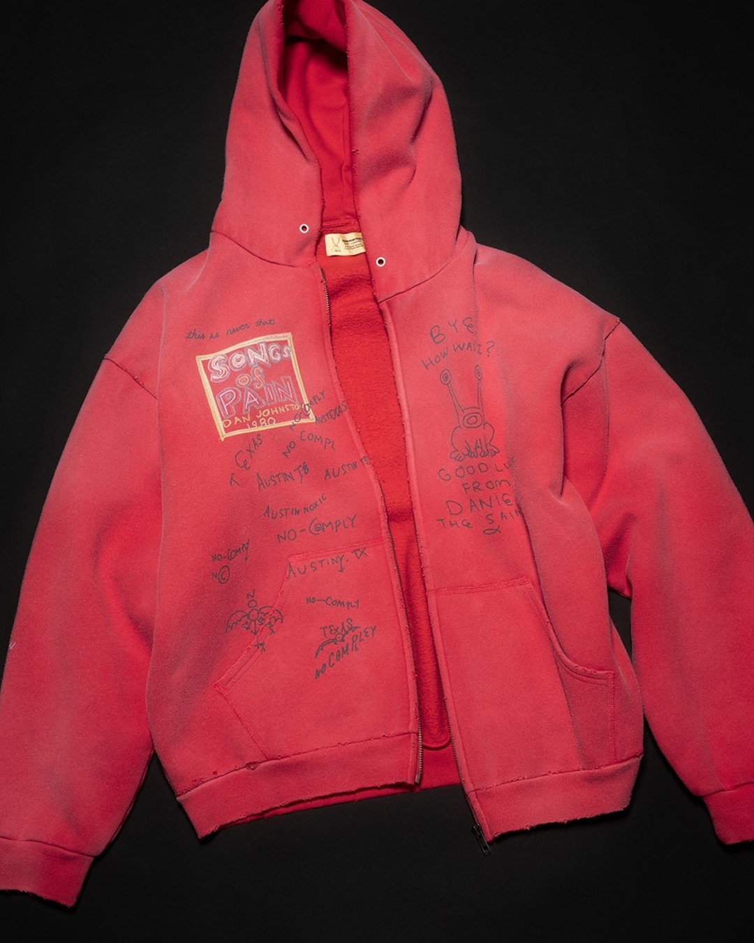 近日,thisisneverthat® 再度携手已故传奇艺术家 Daniel Johnston,推出全新合作胶囊系列。该系列以品牌视角重新诠释 Johnston 充满情感的标志性作品,包括其经典专辑《Hi, How Are You》封面等元素。产品线涵盖印有专辑封面的连帽衫、皮夹克、牛仔裤、帽子及艺术海报等,融合街头风格与艺术创作。据悉系列将于 2025 年 12 月 12 日在日本正式发售。此外,联名「无辜的青蛙杰里迈亚」搪胶雕塑预计于明年 1 月上市,敬请留意部分门店可能的发售延迟。
