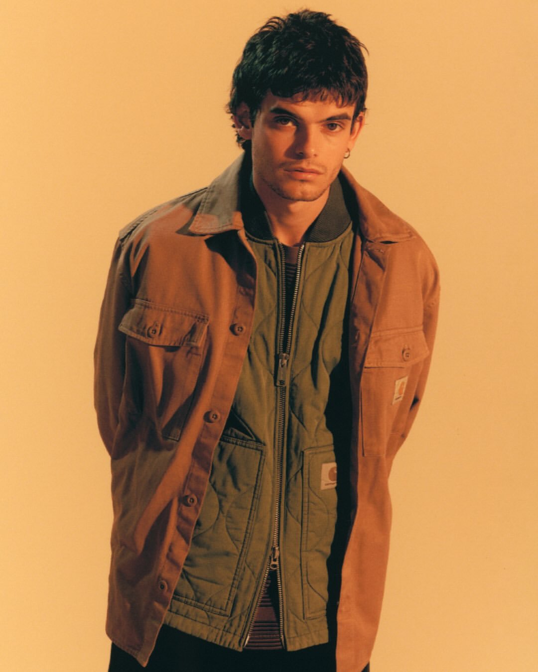 帆布和针织面料的服装选用了柔和的酒红色、棕色和灰色等染色色调。外套延续了品牌与传统制服的对话:Adair 大衣从复古消防员夹克中汲取灵感,采用金属扣环设计;Shepton 夹克则重新诠释了 B-6 飞行夹克的经典比例。整个系列现已上架 Carhartt WIP 门店以及官网,感兴趣的朋友不妨前往了解详情。