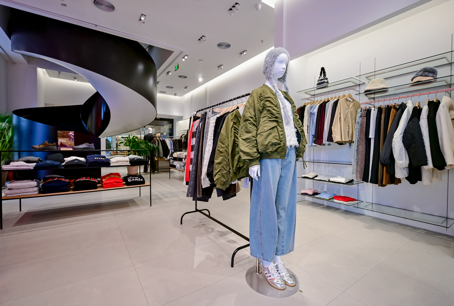 i.t blue block 与 BEAMS 前滩太古里店坐落于前滩太古里核心区域,双层空间,延续了品牌标志性的视觉符号,搭配现代简约的设计语言,打造出清新灵动又兼具质感的购物环境。门店巧妙运用光影与空间层次,让消费者在自由穿梭中感受潮流与舒适的平衡。同时,门店设计呼应前滩商圈的国际化氛围,以简洁线条与自然质感材质碰撞,既保留了 i.t blue block 和 BEAMS 各自的品牌基因,又融入本土消费场景的实用需求,成为兼具打卡属性与购物功能的潮流空间。