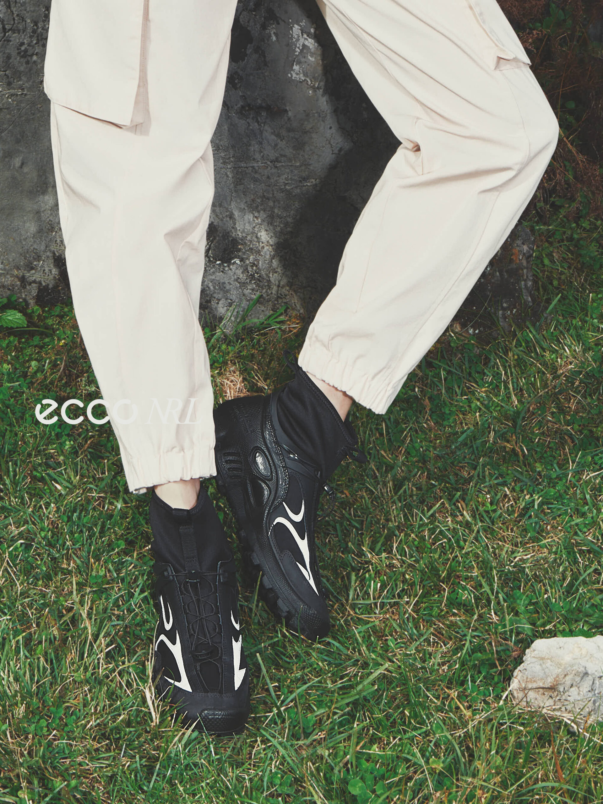 延续对都市潮流与实用功能的追求,本季联名鞋款亦着意出新。BIOM C-TRAIL 系列以张扬亮眼的撞色拼接设计结合茶褐色、草绿色等配色,彰显个性态度,BIOM 2.2 TRL 系列则通过鞋面交织的反光条和反差鲜明的色彩对比,构建具有辨识度的外观,更配备拉链、系带与靴款等不同鞋型,可满足多样需求。此外鞋款还搭载 ECCO 自主研发的 BIOM® 科技,通过符合人体工学的鞋楦设计,打造兼具时尚与舒适穿着的鞋履;BIOM 2.2 TRL 系列更搭载 LYTR 科技,通过 FLUIDFORM™ 直接注塑科技将轻量发泡底材嵌入中底,以轻盈体验陪伴她们的都市旅程。