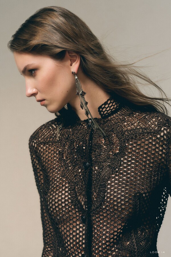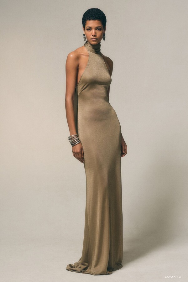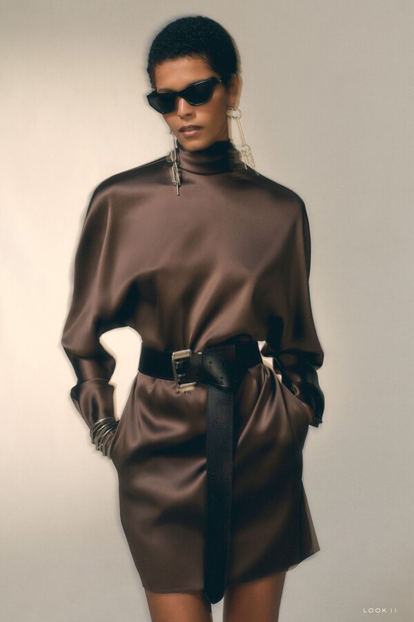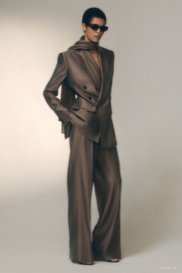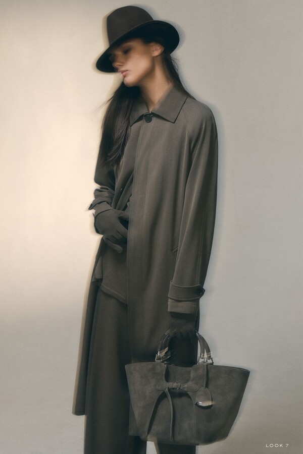 Ralph Lauren 在 2026 早秋系列中转变了其地理和情感的基调,以新墨西哥州的广袤无垠取代了海岸的轻松惬意。根植于矿物色调、阳光晒痕般的质感以及对精湛工艺的致敬,整季以一种内敛的自信徐徐展开。质感成为了标志性语言:一条饰有斑斓流苏的皮裙耗费 60 个小时手工裁剪而成;另一件镂空麂皮夹克经机器精心钩织,并以柔和的光泽润饰,也需要几乎同样长时间。亮点还包括 Fortuny 风格褶裥的无袖青铜色连衣裙、经高光泽处理的罗纹针织套装。其他面料则经过水洗处理,营造出柔软舒适的质感。