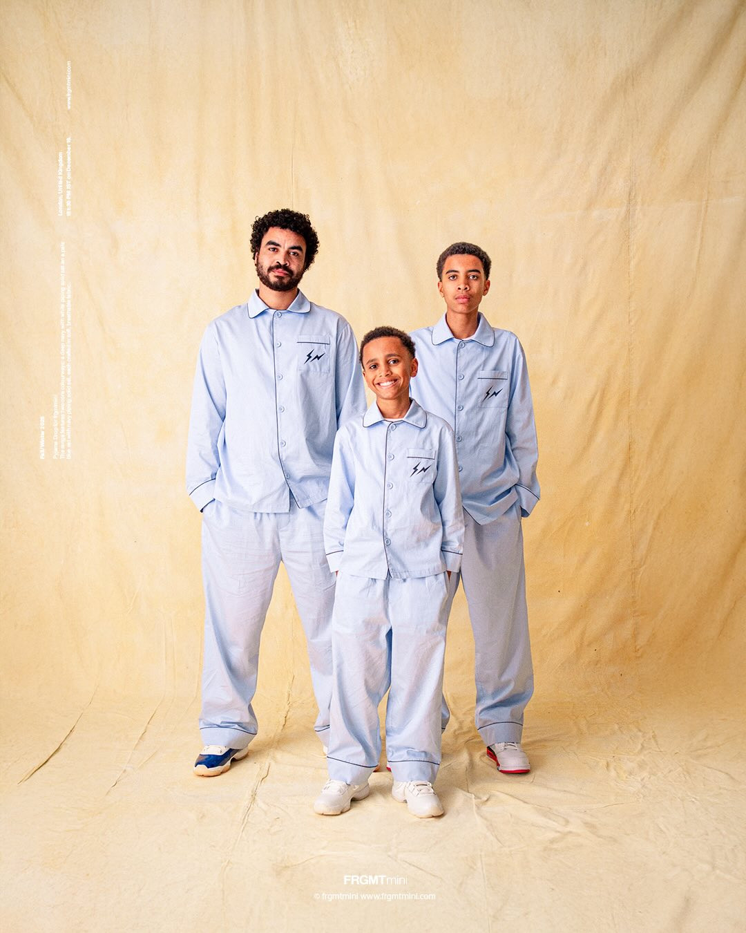 由藤原浩主理的童装支线 FRGMTmini 正式完成品牌定位升级,不再只服务于儿童穿搭,而是将标志性风格拓展至成人与家庭生活领域,转型为主打全家共享的生活方式品牌。焕新后的首个居家系列 Family Pyjama Collection 同时覆盖成人与儿童尺码,带来深海军蓝与浅蓝两款配色,并通过白色或深蓝色滚边细节勾勒轮廓,选用透气亲肤的高品质面料,并采用宽松版型设计,让居家服同样具备潮流表达。目前,FRGMTmini 全新家庭睡衣系列已在品牌官网独家发售,Dover Street Market 银座店也将于 12 月 23 日起上线。