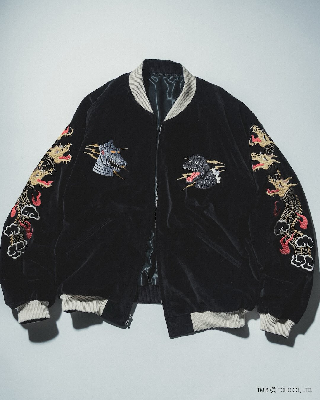 这款夹克采用奢华的刺绣工艺,并以黑色天鹅绒面料打造而成。双面黑色内衬使其用途广泛,而略微宽松的版型则是这款夹克独有的设计。这款备受哥斯拉粉丝和横须贺夹克爱好者追捧的单品,将在 2026 年 1 月 2 日的新年促销活动中上架。