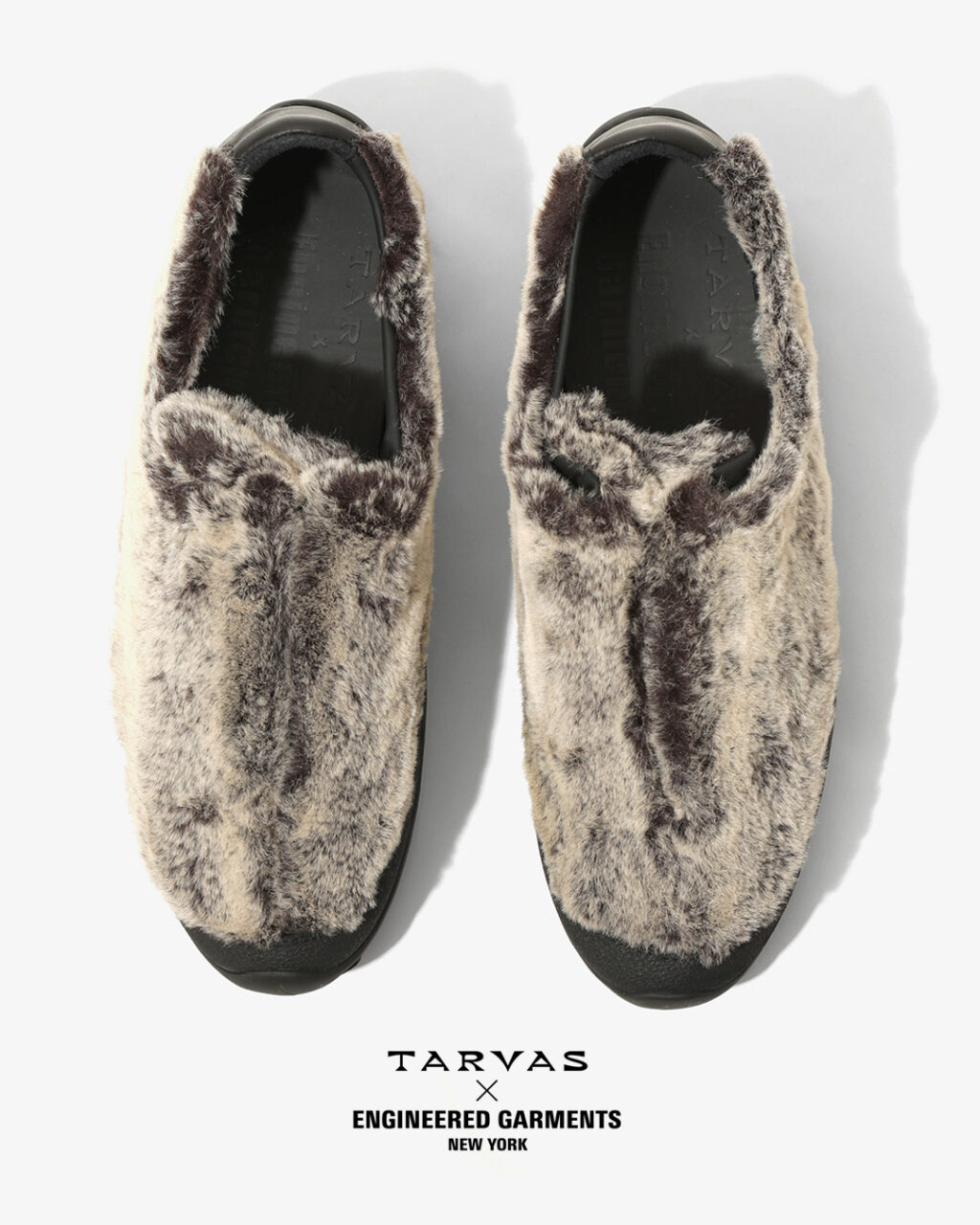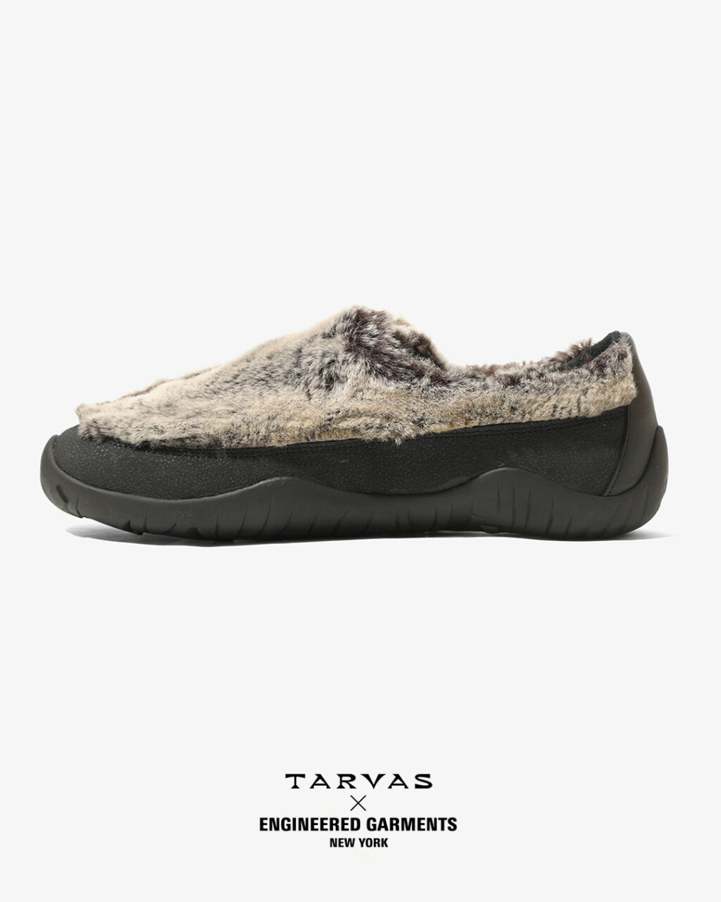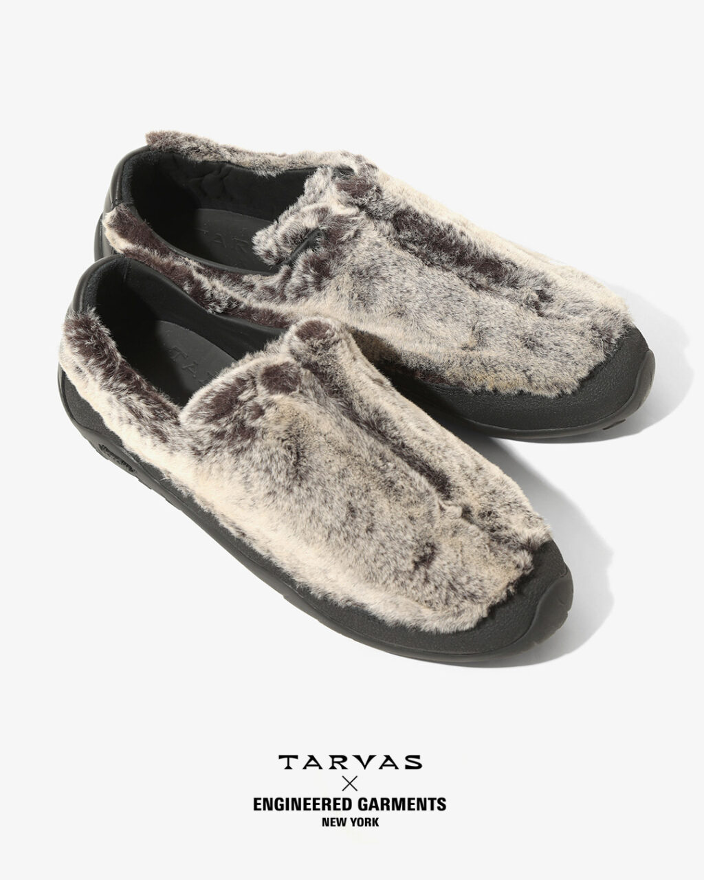 ENGINEERED GARMENTS 与来自芬兰赫尔辛基的鞋履品牌 TARVAS 联手推出了全新鞋履系列。此次合作双方以 TARVAS 的「WANDERER」圆润鞋型为基础,鞋型轮廓让人联想到户外莫卡辛鞋,鞋面则饰以蓬松的人造毛皮。该鞋采用便捷的套穿式设计,方便穿脱。鞋底选用了 Vibram 橡胶材质,以提供卓越的缓震性能。目前该 ENGINEERED GARMENTS x TARVAS 合作系列已于 NEPENTHES 门店以及官网发售,可选配色包括深灰色、带有醒目皮毛光泽的黑色以及低调的深豹纹色,感兴趣的朋友不要错过了。