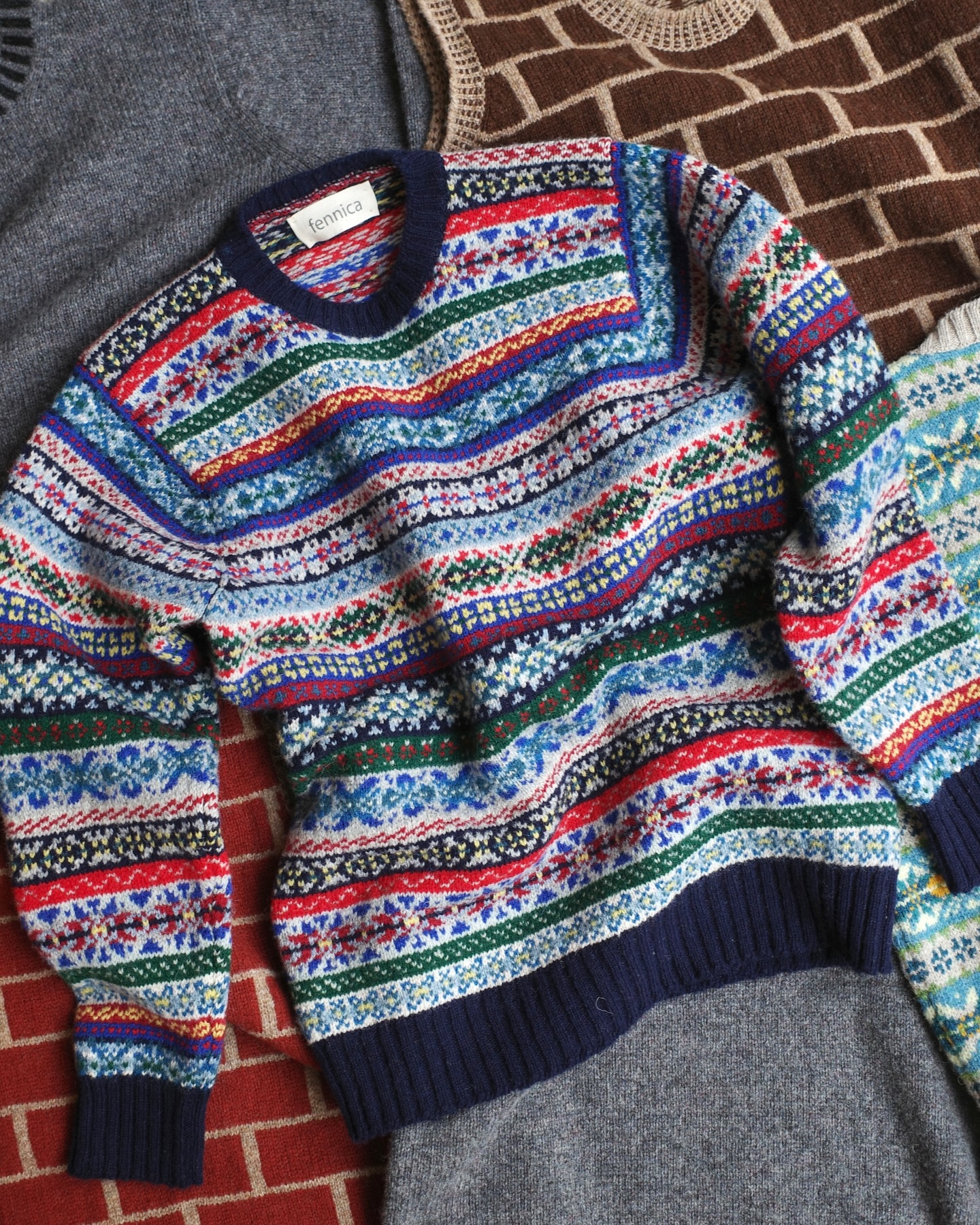 BEAMS JAPAN 携手英国针织厂 Jamieson’s Knitwear 为旗下厂牌 fennica 打造冬季特别款毛衣系列。Jamieson’s Knitwear 是一家家族企业,五代以来一直专注于生产设得兰群岛本地绵羊的羊毛。本次的毛衣系列使用了标志性的费尔岛风格图案和特别定制的砖纹图案和罗纹条纹设计,使用 100% 纯正的设得兰群岛羊毛纱线打造,已在 BEAMS 官方商城上架。