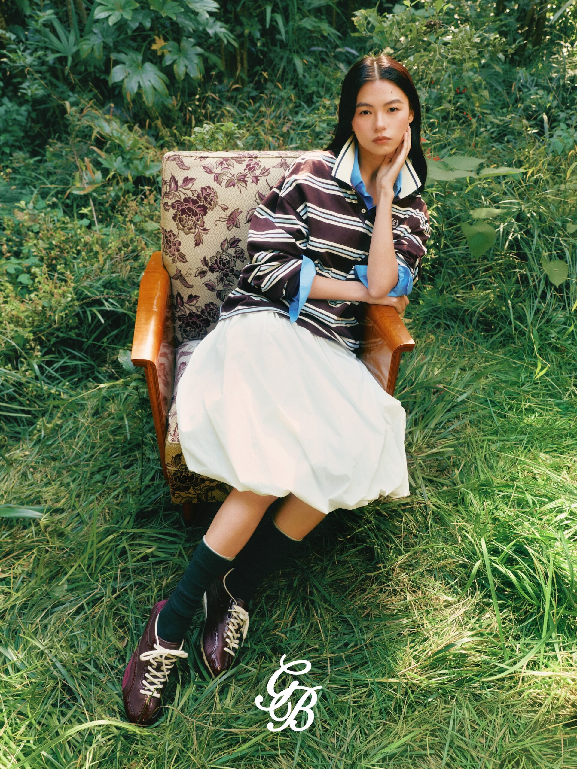本季的设计语言亦围绕着「她的两种力量」这一初衷,在柔与力之间寻找着平衡:轻盈的蓬蓬裙与抽褶细节被融入运动感单品之中;柔软的菱形针织开衫与学院气息条纹 Polo 衫,同洗水牛仔与硬朗立领夹克相碰撞。纵使切换不同场景,「她」的多面状态也得以在一套造型中被同时呈现,不张扬却具有存在感。与此同时,品牌独具意义的白鸽符号也以印花与刺绣的方式回归,在细节中等待着被人发现。