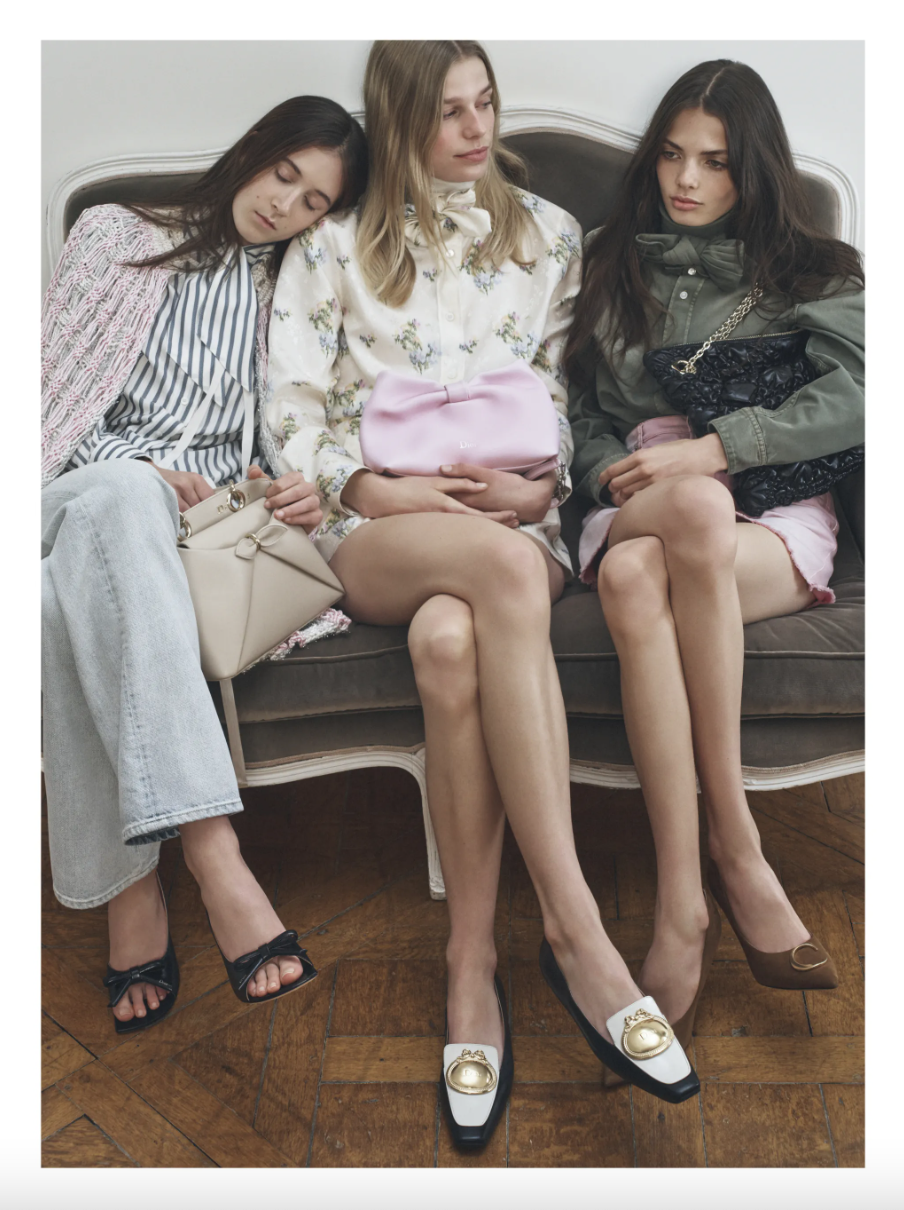 广告涵盖彩色和黑白照片,如同视觉速记,展现了 Jonathan Anderson 在六月男装秀和十月女装秀中确立的共同准则。这些设计涵盖了他对牛仔和针织衫等经典服饰的全新诠释,以及蕾丝晚礼服、硬领领带等更正式的单品——都体现了创始人 Christian Dior 对 18 世纪的痴迷。「在我执掌 DIOR 的这段时间里,我一直在思考男装和女装如何相互融合。我希望顾客能自由穿梭于不同服饰之间。这关乎于玩转服装。」