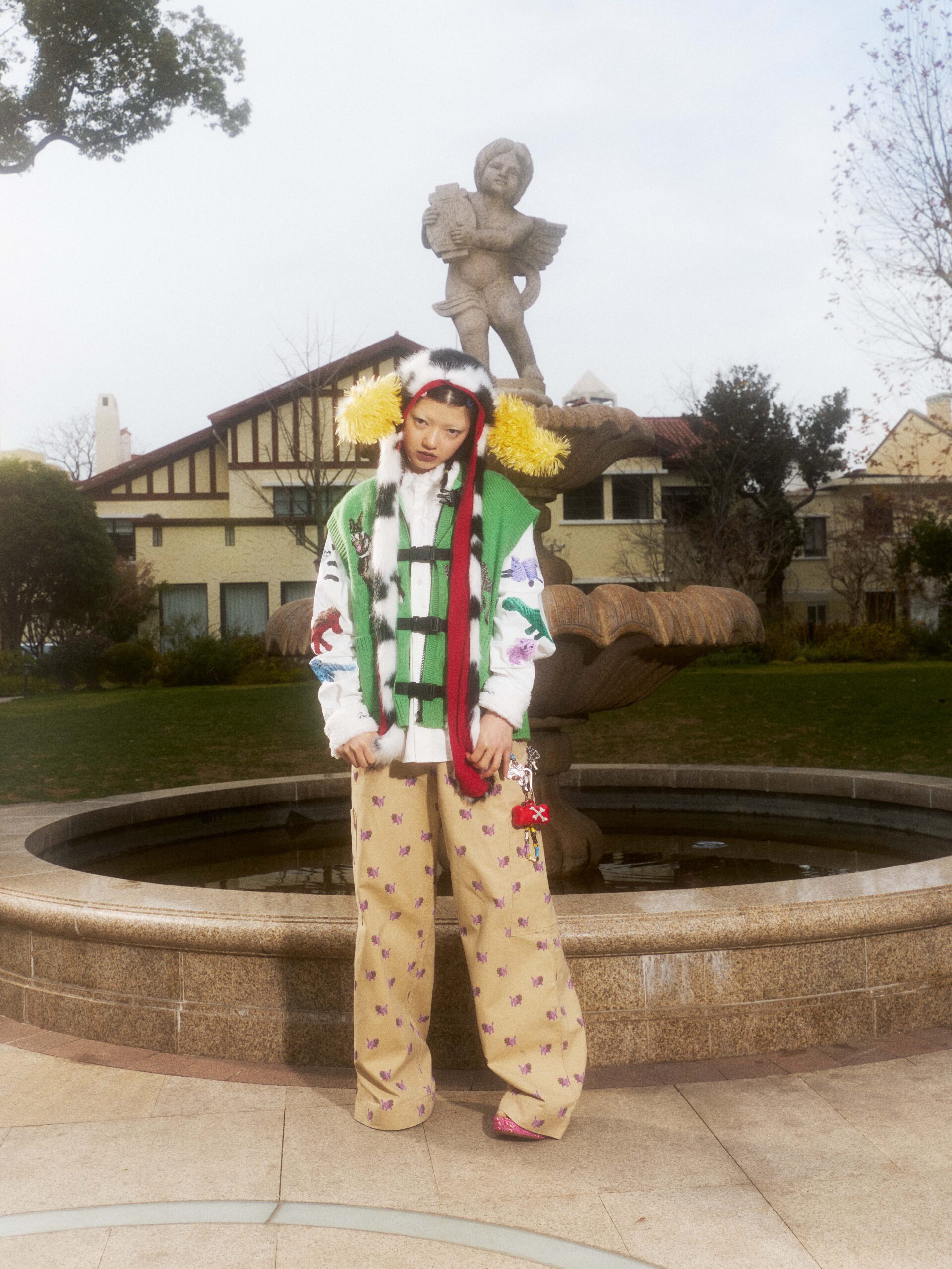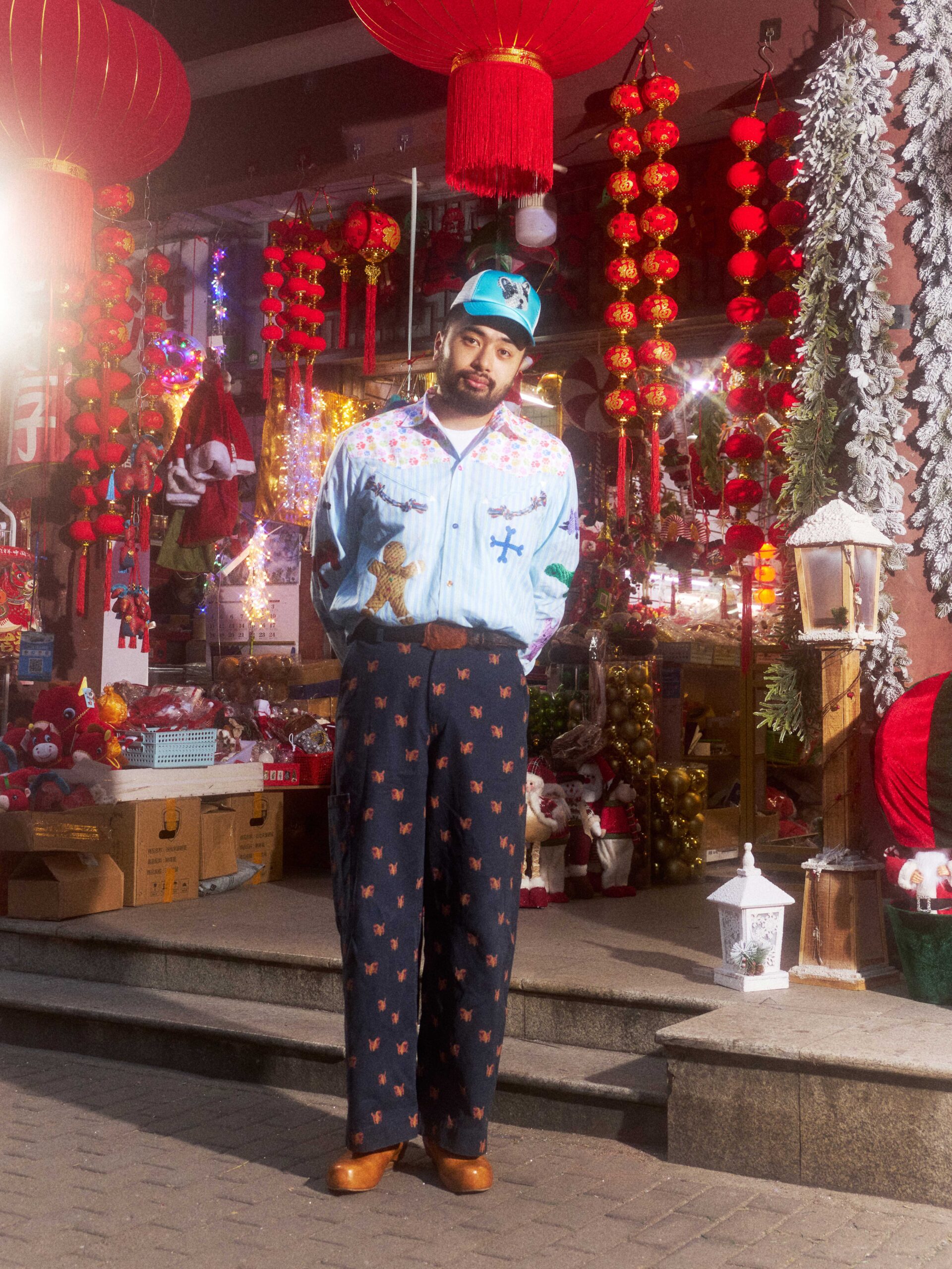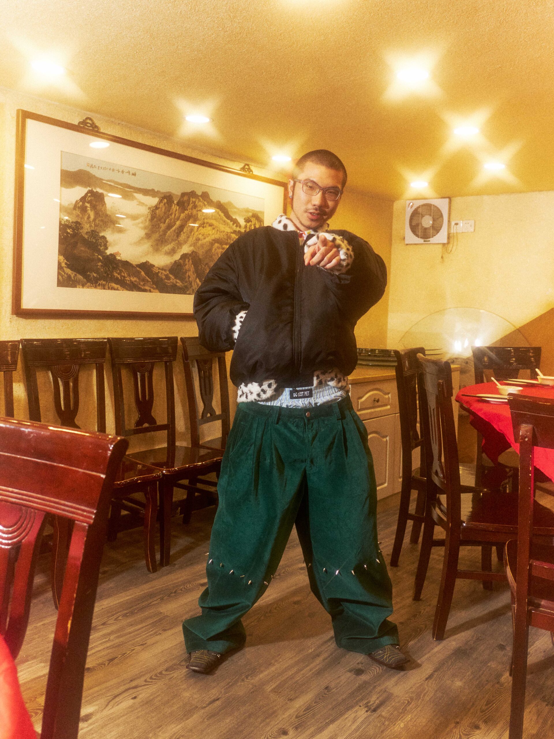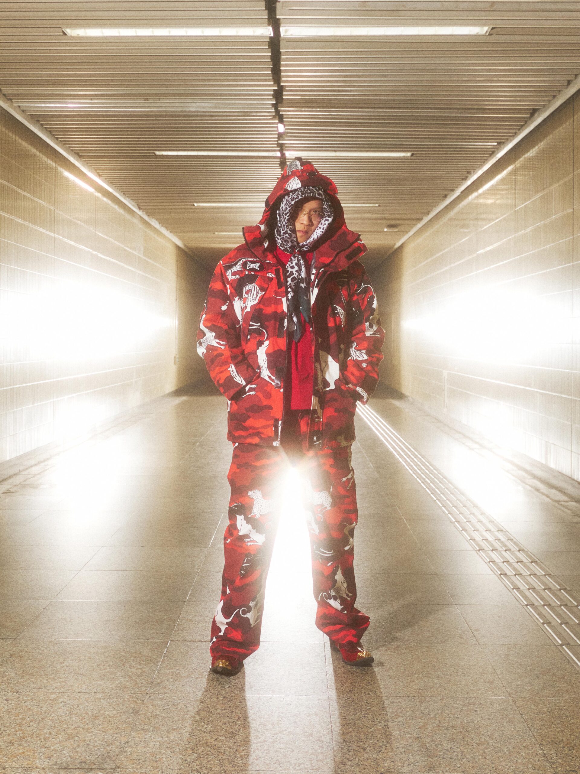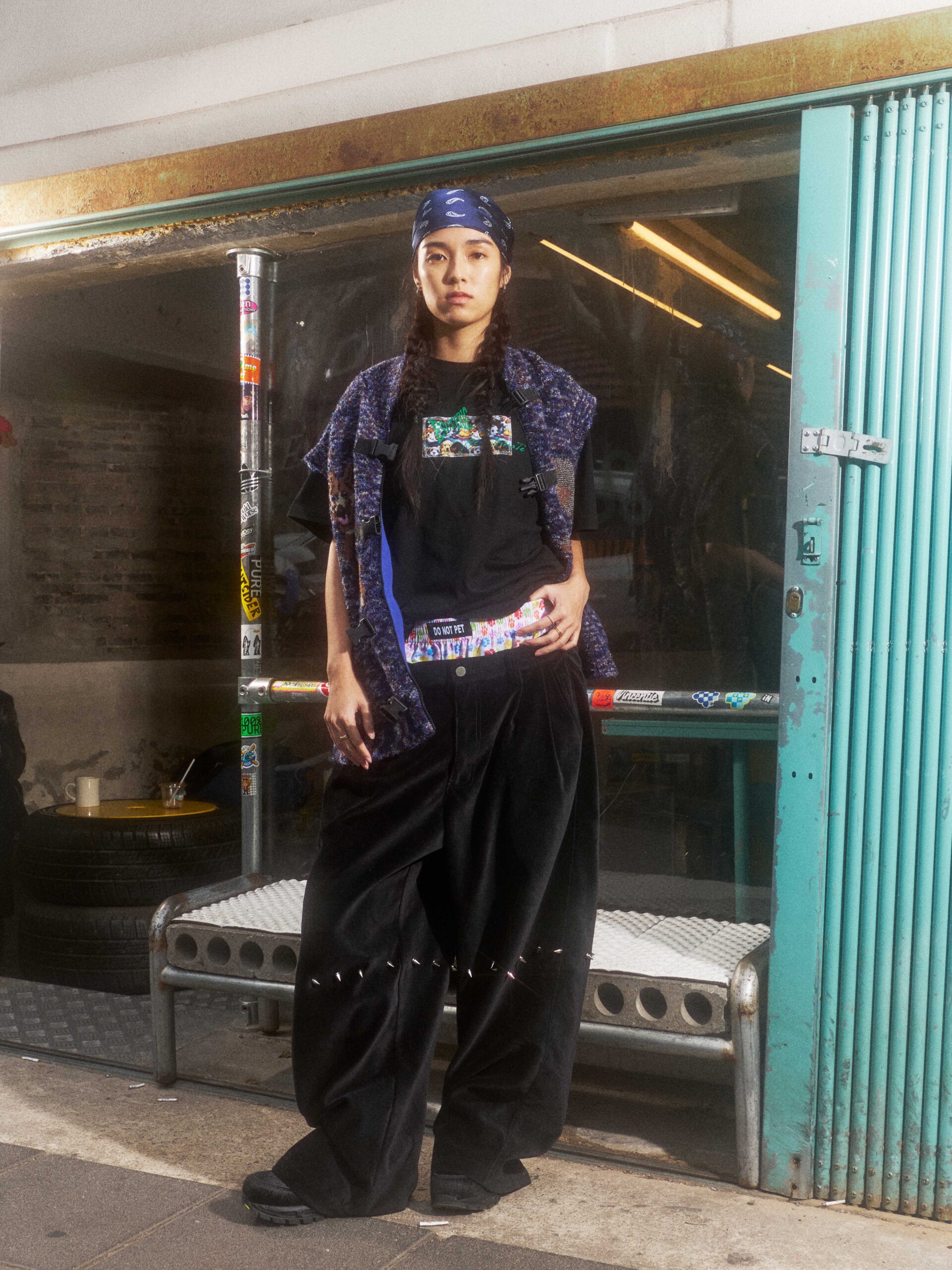 本次合作中,高翔以 ESOTERIC THING 的街头视觉语言将本土文化中「狗」的多重象征进行解构与再叙事:忠诚、警觉、野性、陪伴、灵性与边缘视角,被重新编码为青年个体的精神隐喻。系列单品涵盖迷彩工作套装(灵感源自古籍《相犬经》中的流浪犬意象)、双方 Logo 叠加的限定 Box & Logo Tee、以「陨石边牧」为灵感的双膝破洞牛仔夹克与双膝牛仔裤,以及犬形背包、记忆碎片项链、犬帽围等。
