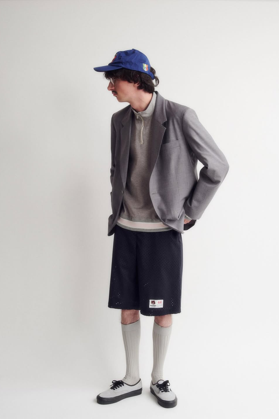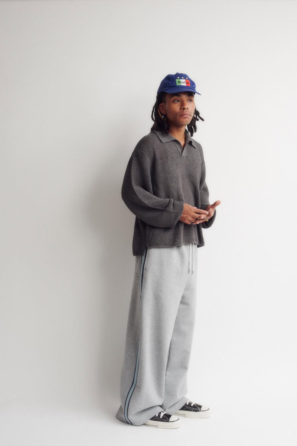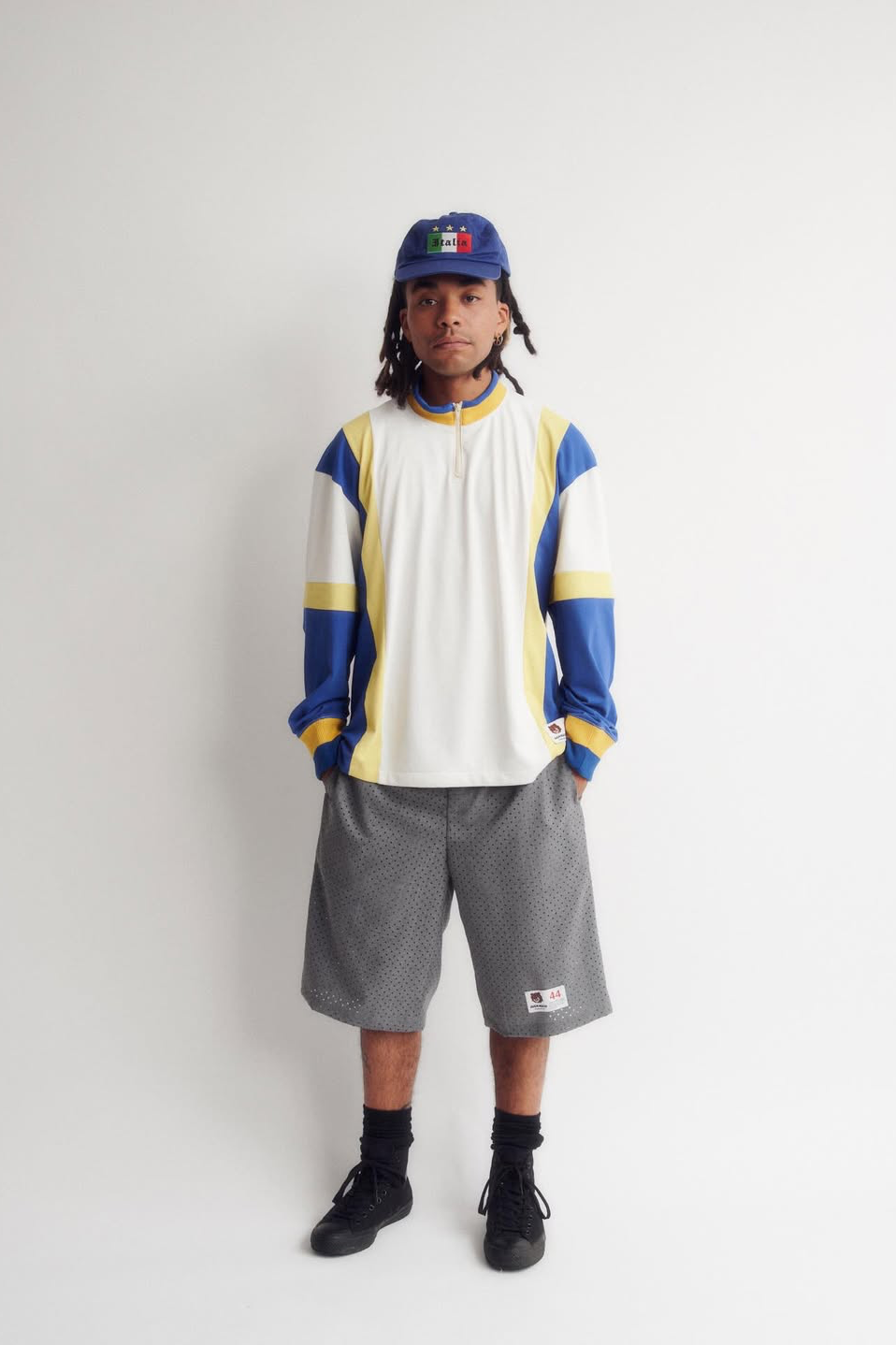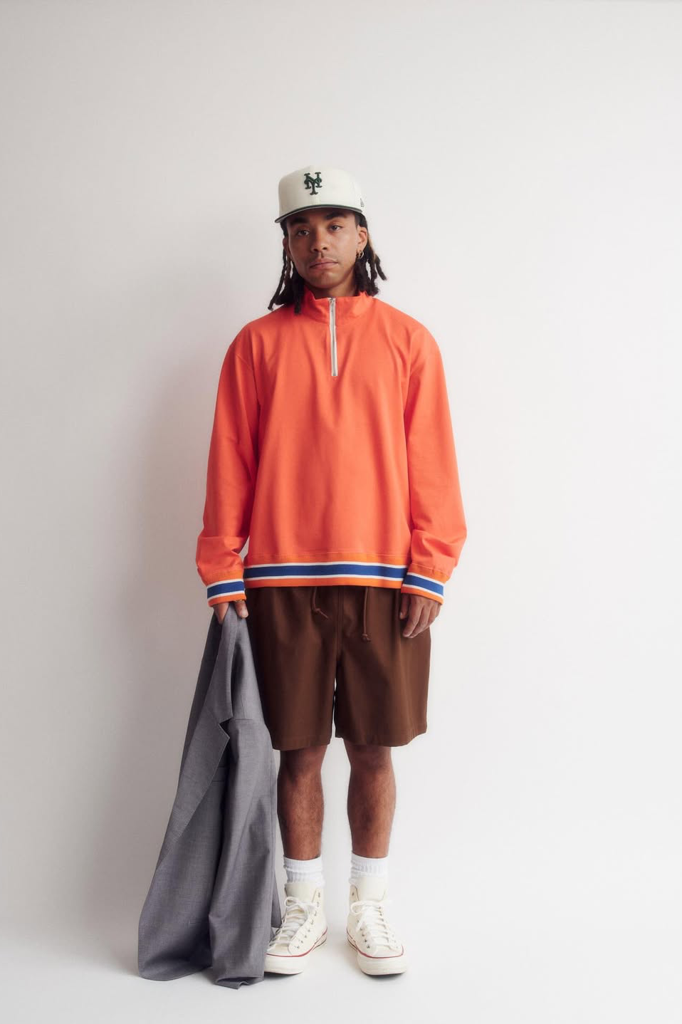 新系列的灵感源自 20 世纪 80 年代传入意大利的美国复古服装。美式学院风或运动装到了意大利后,衬衫或反织卫衣会被赋予夸张且略显多余的造型元素。一件普通的牛津布衬衫会被改造成一件极尽休闲的衬衫,与原本的风格大相径庭。这种精神贯穿了整个系列,但又略作调整以契合 DIGAWEL 的审美:半拉链卫衣的袖口和下摆饰以条纹;敞领衬衫采用了方正版型;篮球短裤的长度及膝,剪裁更加休闲、适合日常穿着;运动裤的裤型也比通常款更宽松。
