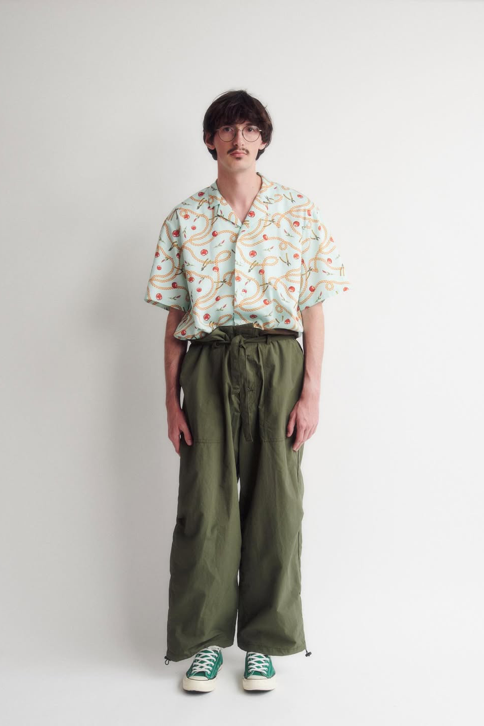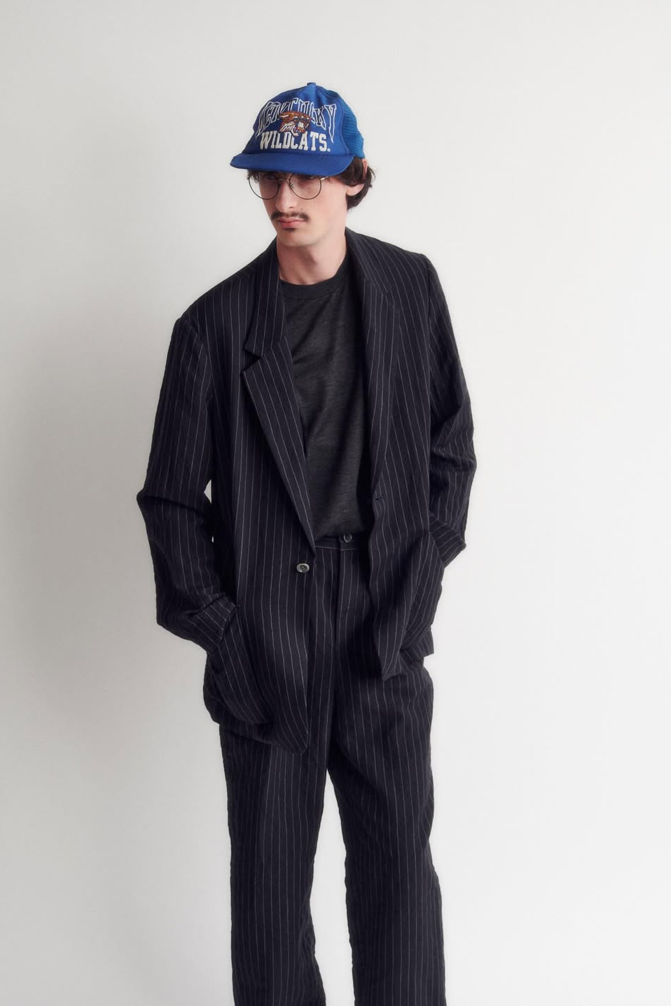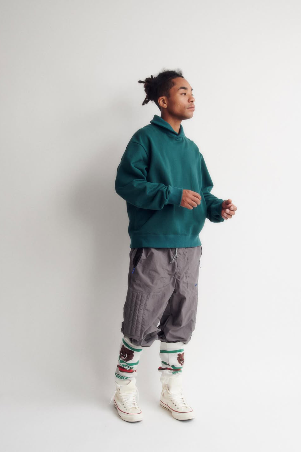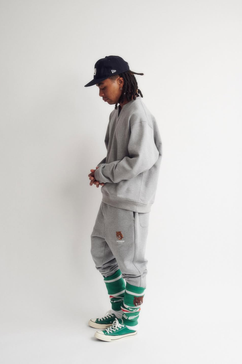 新系列的灵感源自 20 世纪 80 年代传入意大利的美国复古服装。美式学院风或运动装到了意大利后,衬衫或反织卫衣会被赋予夸张且略显多余的造型元素。一件普通的牛津布衬衫会被改造成一件极尽休闲的衬衫,与原本的风格大相径庭。这种精神贯穿了整个系列,但又略作调整以契合 DIGAWEL 的审美:半拉链卫衣的袖口和下摆饰以条纹;敞领衬衫采用了方正版型;篮球短裤的长度及膝,剪裁更加休闲、适合日常穿着;运动裤的裤型也比通常款更宽松。