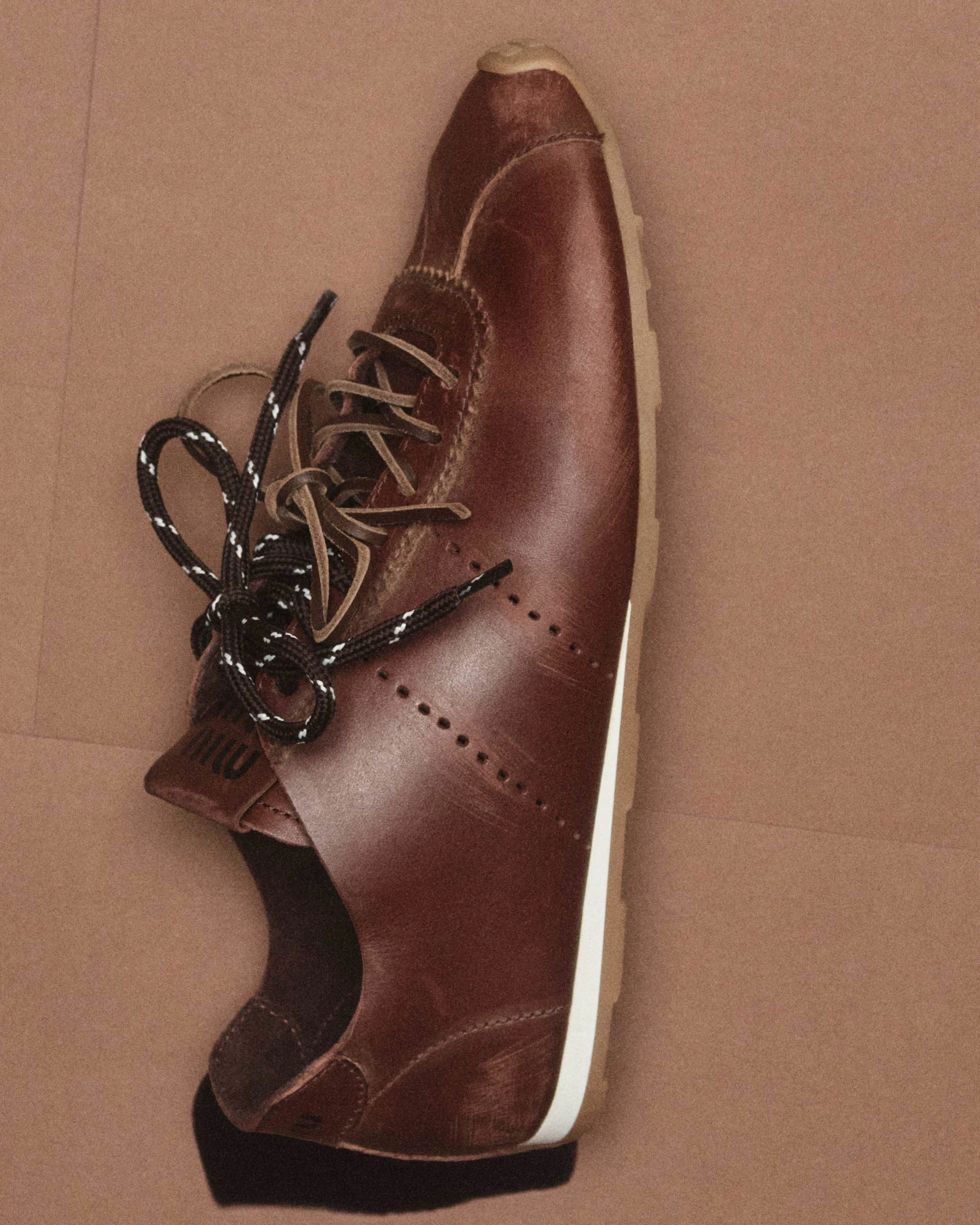 鞋包配饰方面,品牌推出了轻量级运动鞋 Plume 的全皮版本,以及灵感源自 90 年代、结合天然橡胶底与白色科技面料及麂皮的 Tyre 系列新作。标志性的 Beau 保龄球包则带来了全新的半月形轮廓设计。
