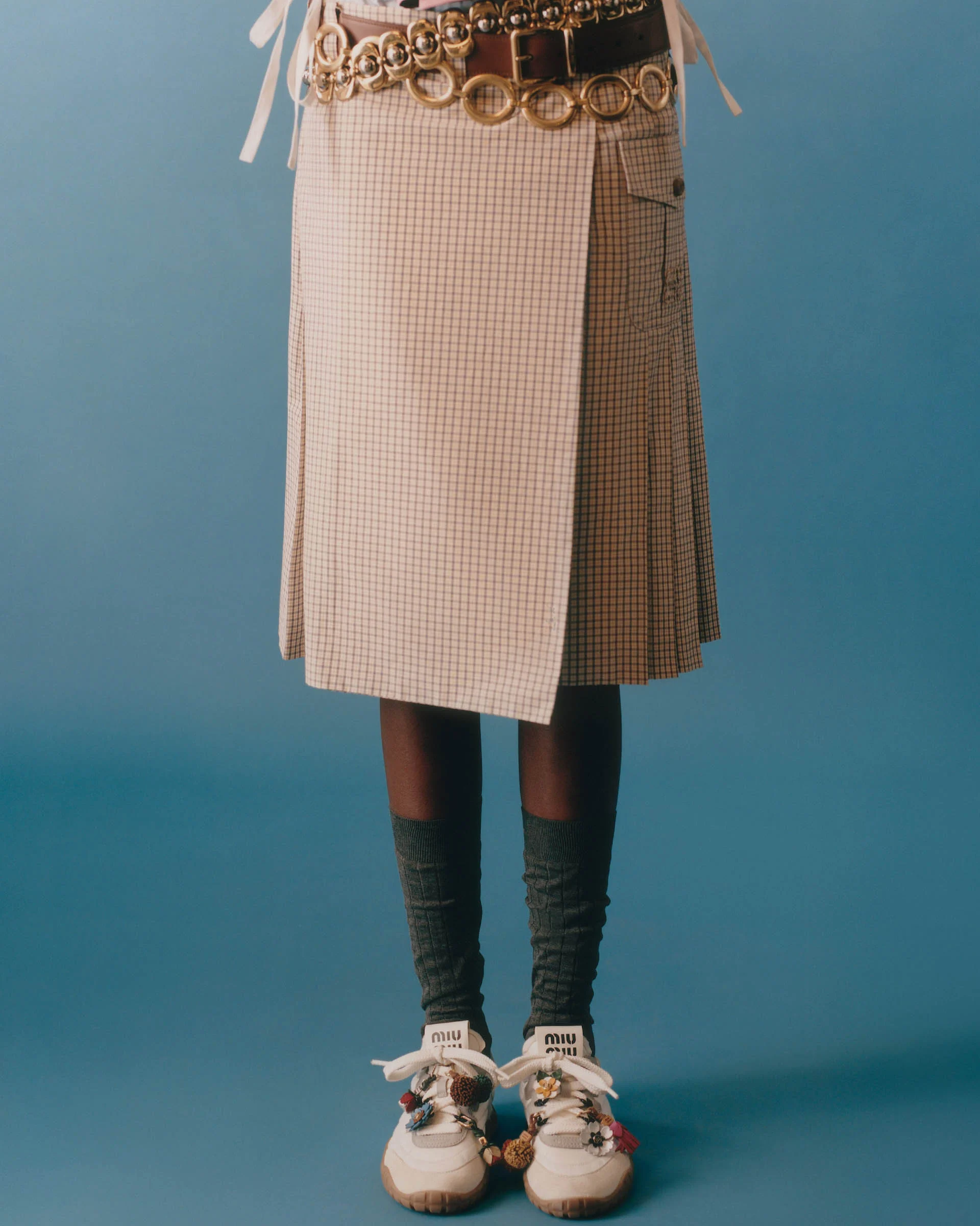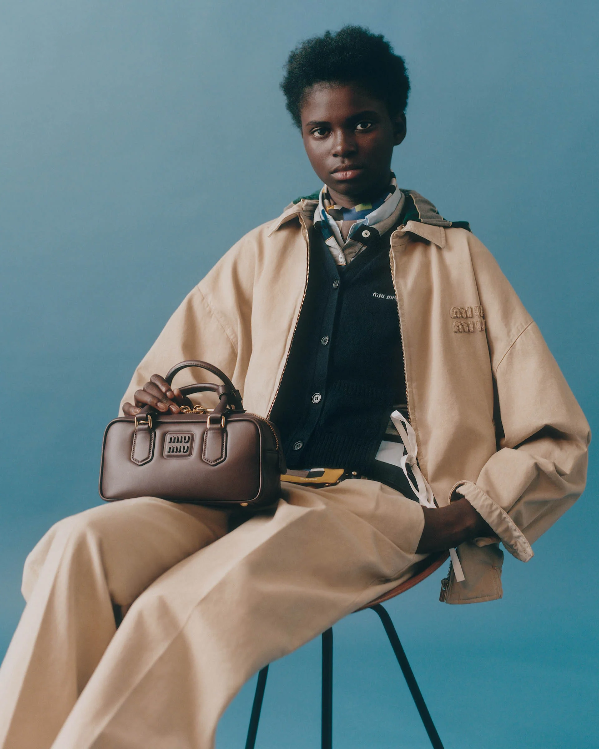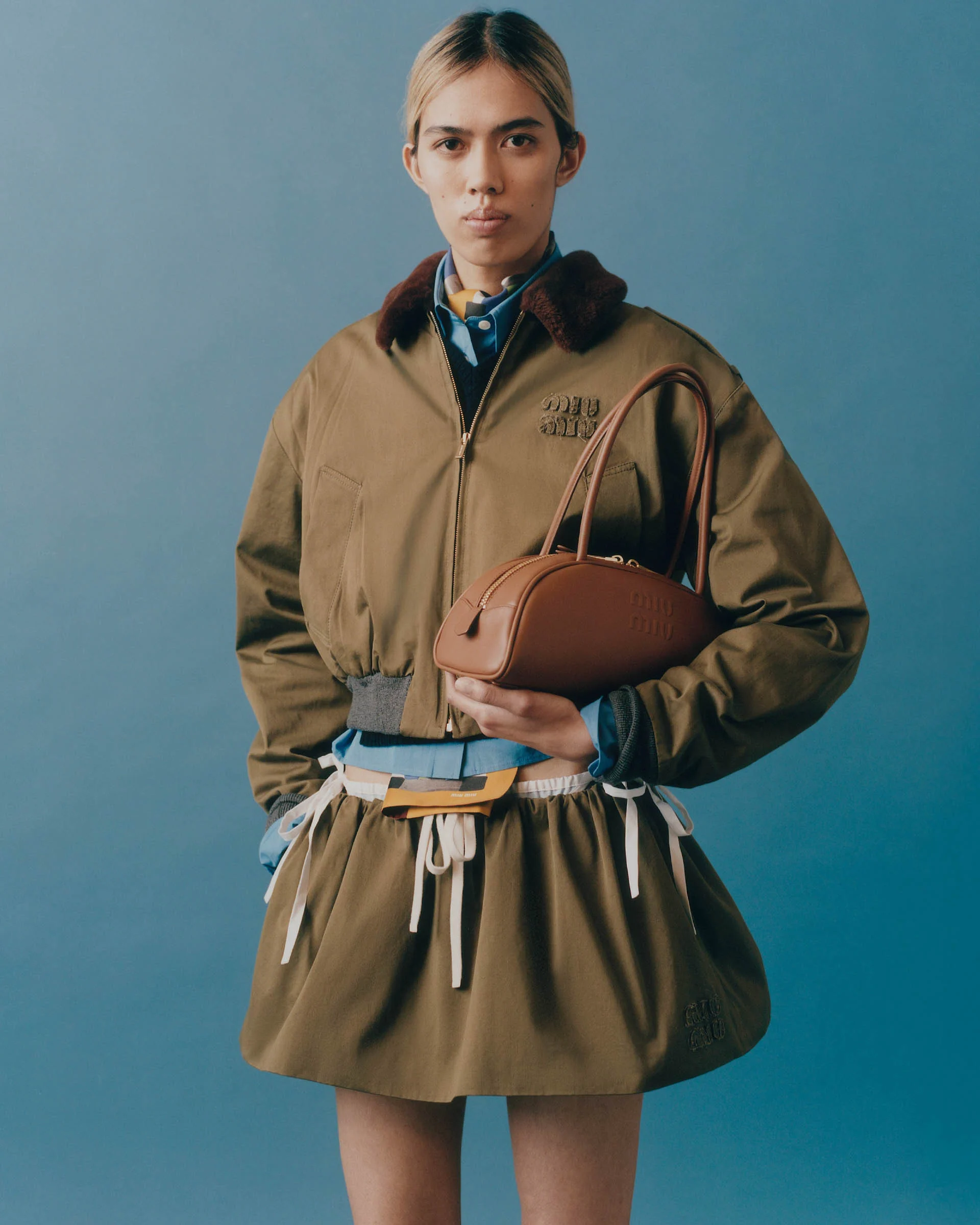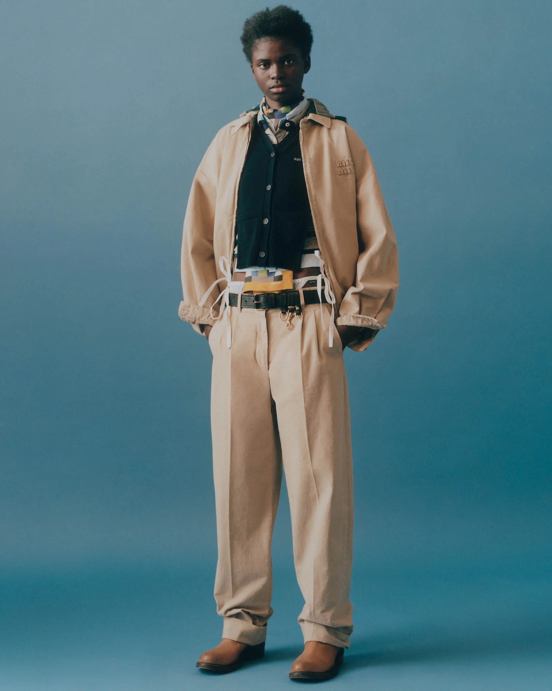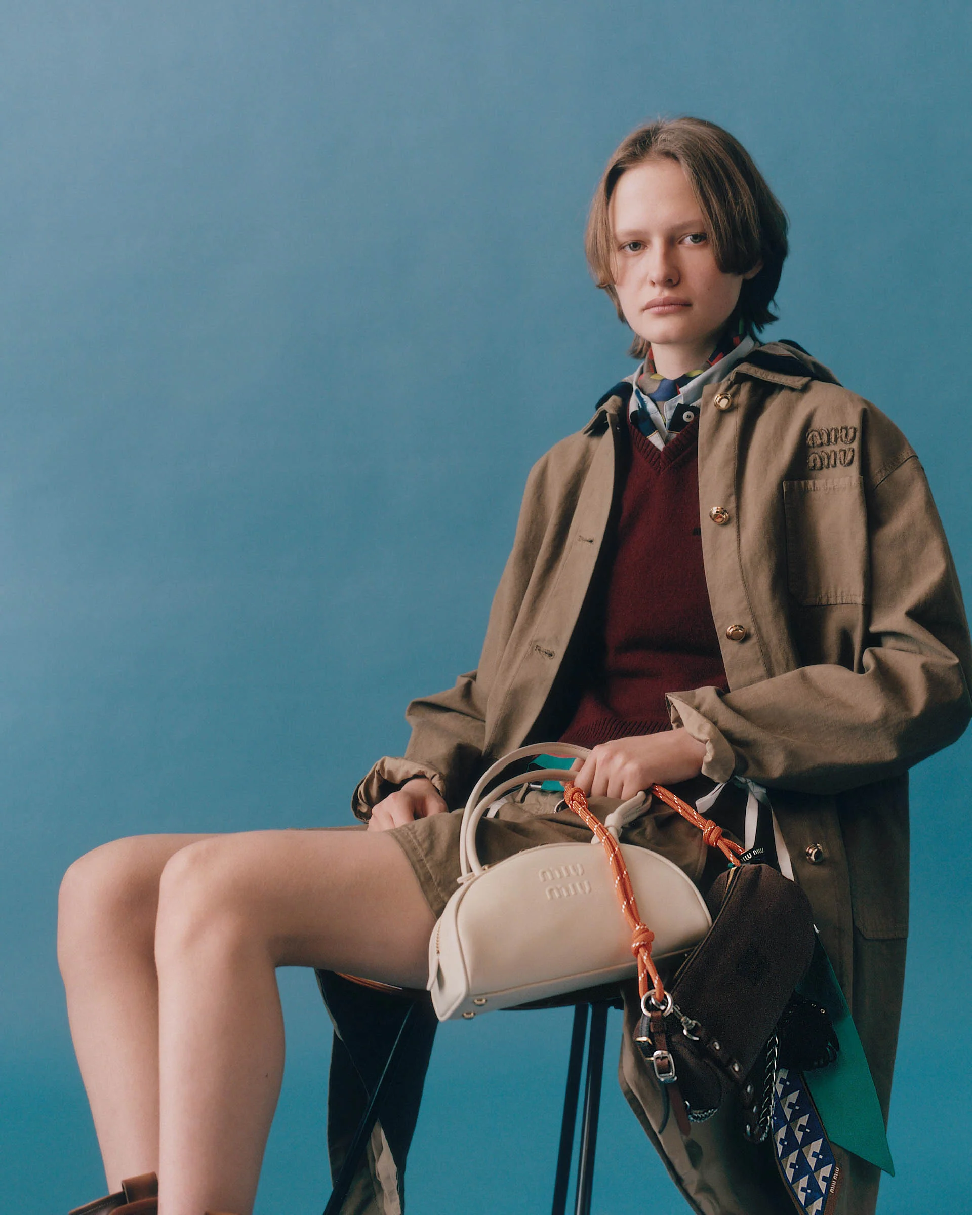 Miu Miu 全新「Prelude」系列以工作制服为灵感,在延续品牌经典设计准则的基础上,打造了一系列实穿性极强的衣橱单品。重点款式包括饰有品牌标志的斜纹布夹克、长裤、超短裙以及围裙式连衣裙;此外,条纹波罗衫、雪尼尔毛衣及棉质波普林衬衫裙等基础单品也悉数亮相。