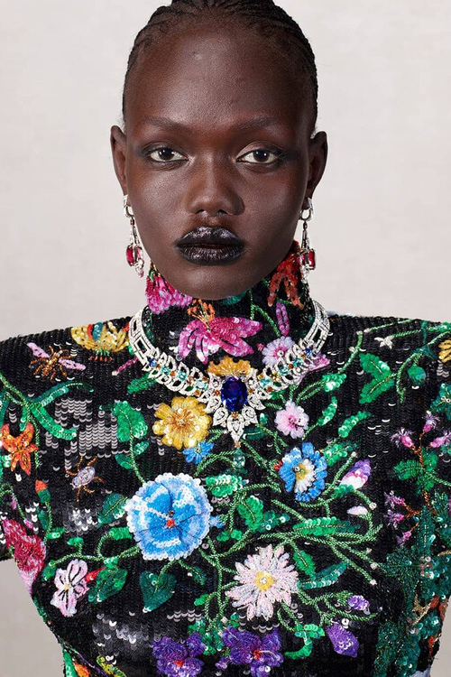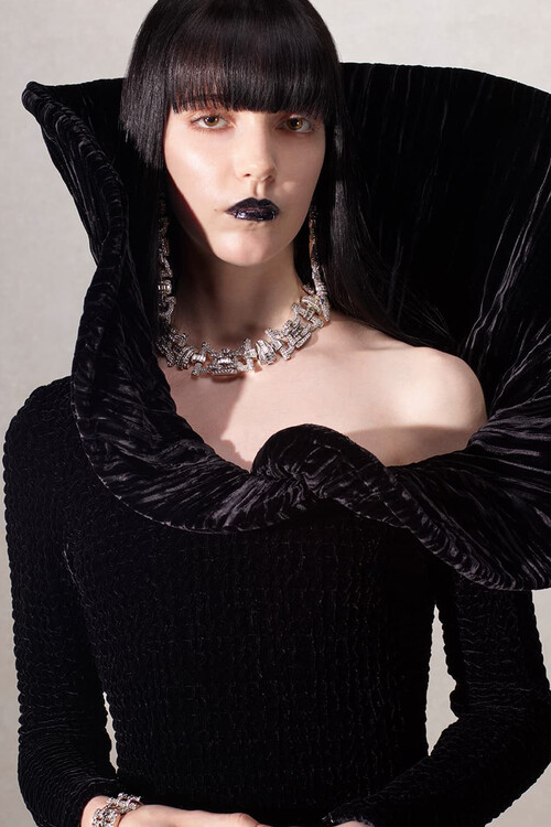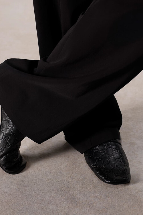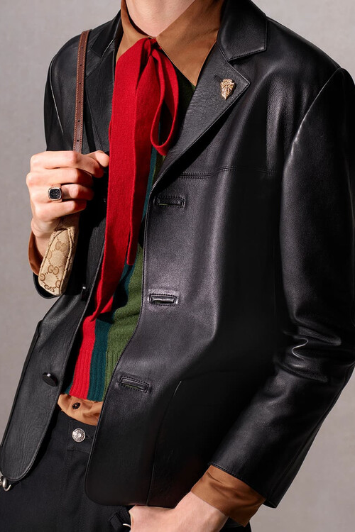 作为 Demna 执导的首个完整广告系列,GUCCI La Famiglia 系列大片由 Catherine Opie 掌镜,摒弃了直白的叙事手法,转而采用肖像摄影。可以看到照片风格简约:中性的摄影棚背景、正面拍摄姿势,以及注重清晰度而非戏剧性的构图。每位模特都被塑造成独特的类型,其特征通过态度和服饰而非动作来体现。红色外套散发着桀骜不驯的气质,黑色西装搭配 Bamboo 1947 鞋履显得沉稳大气,而牛仔和皮革则展现出一种刻意营造的漫不经心。强调服装本身无需过多的造型或概念包装,直接表达自我。