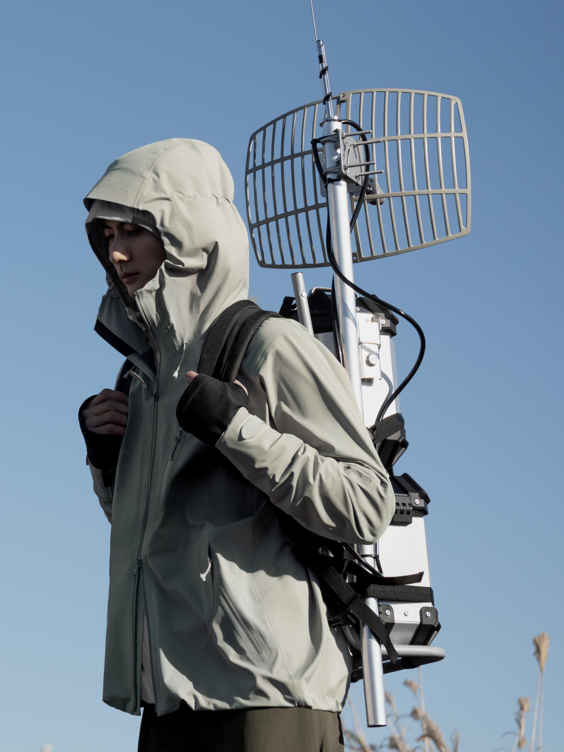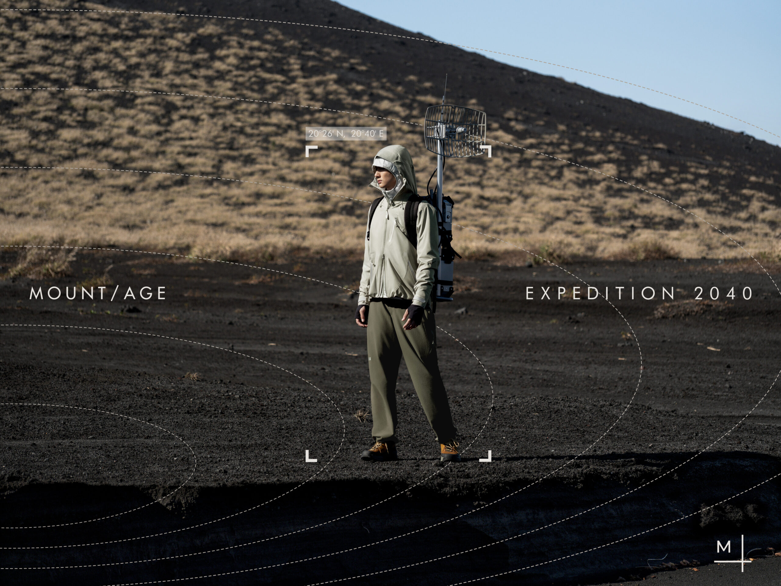 MOUNT/AGE 构建起成套化产品体系,涵盖防护性硬壳、多品类内搭、功能性裤装与户外鞋履。M/2040//SHELL_M1 男子防水夹克,作为本季首发系列中的核心单品,搭载 GORE-TEX 防水科技,集持久防水、防风性能与环保属性于一体;并以基于亚洲身形的动感剪裁,为复杂环境下的身体活动提供灵活与贴合的保障,使穿着者敏捷应对户外挑战;设计上则运用系列弧线分割手法,配合特别开发系列主题辅料,使整体视觉带来更高层次质感。M/2040//SHELL_W1_P 女子印花防水夹克,将专业防护与未来感美学相结合,在硬核户外科技与女性户外活动剪裁基础上,采用以水面波纹为灵感的印花图案设计,通过数码滤镜处理,兼具户外自然与未来探索氛围。