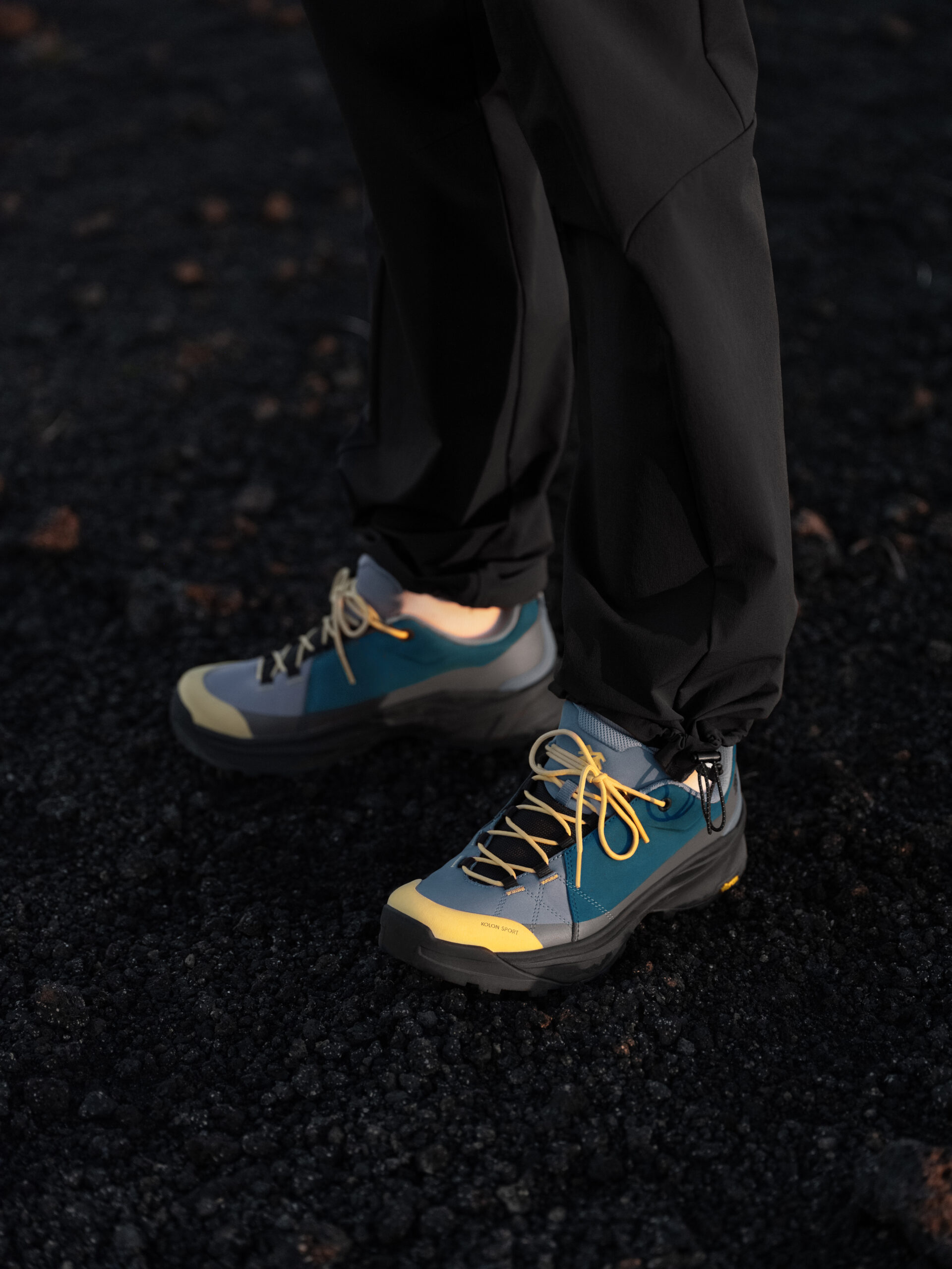 本系列同步推出 MA APPROACH MT 接近徒步鞋,融合野外攀爬与徒步双重性能,以头层牛皮与橡胶上翻包覆结构强化耐用性;鞋底搭载攀爬区,使用 Vibram ARCTIC GRIP ALL TERRAIN 冰面止滑科技,带来更强户外性能。鞋履采用系列主题的色彩跳跃设计,应对未来探险中的美学挑战。