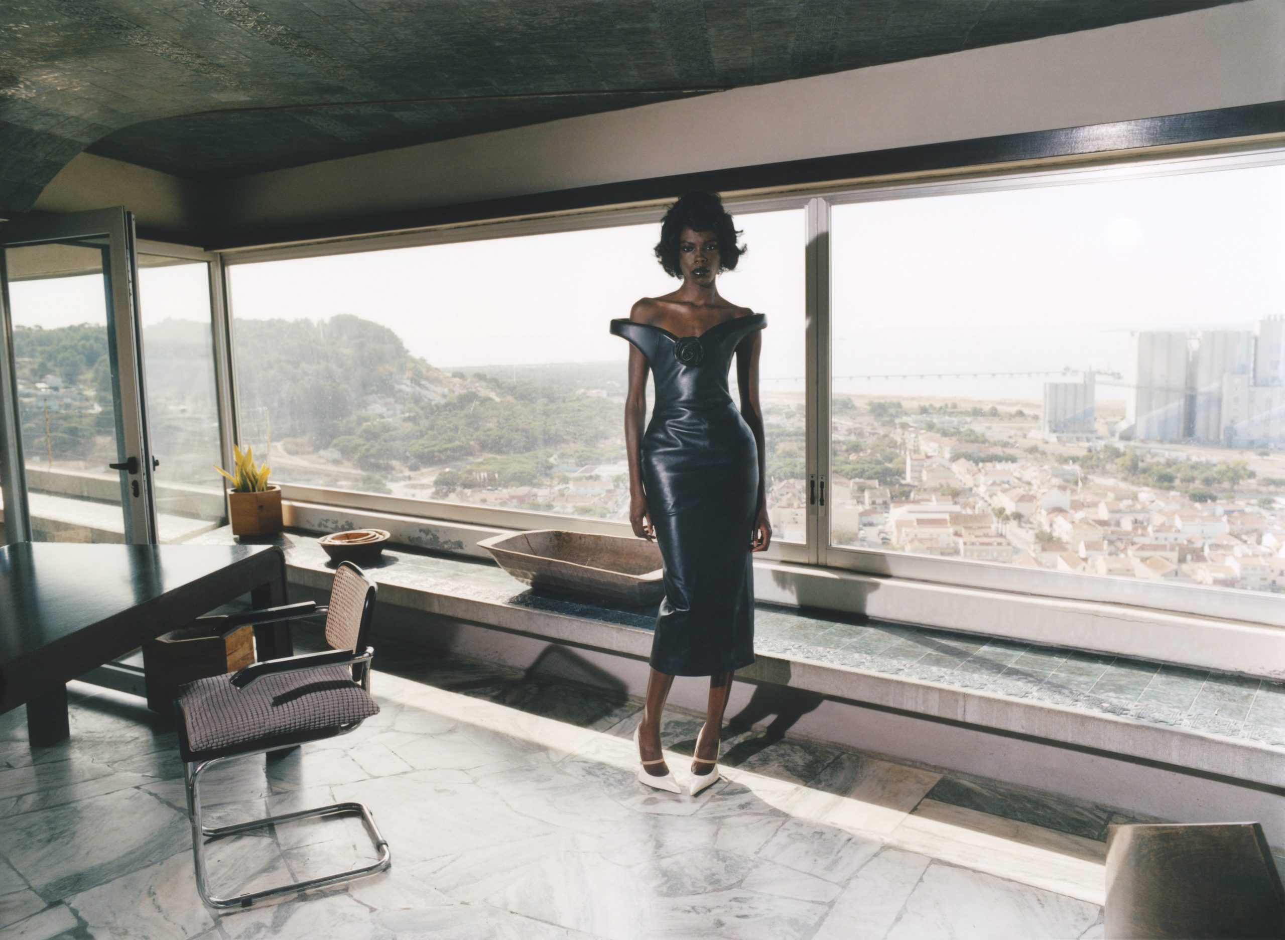 该系列服装以锋利的肩部线条和垂坠的皮革为特色——这些元素几十年来一直是 Mugler 的标志。除了盔甲般的剪裁,Miguel Castro Freitas 为 Mugler 设计的首款手袋——Lua 和 Aurora 也十分引人注目。在工业夜幕景观的映衬下,这两款手袋开启了现代女性气质的新篇章,神秘、迷人且大胆无畏。