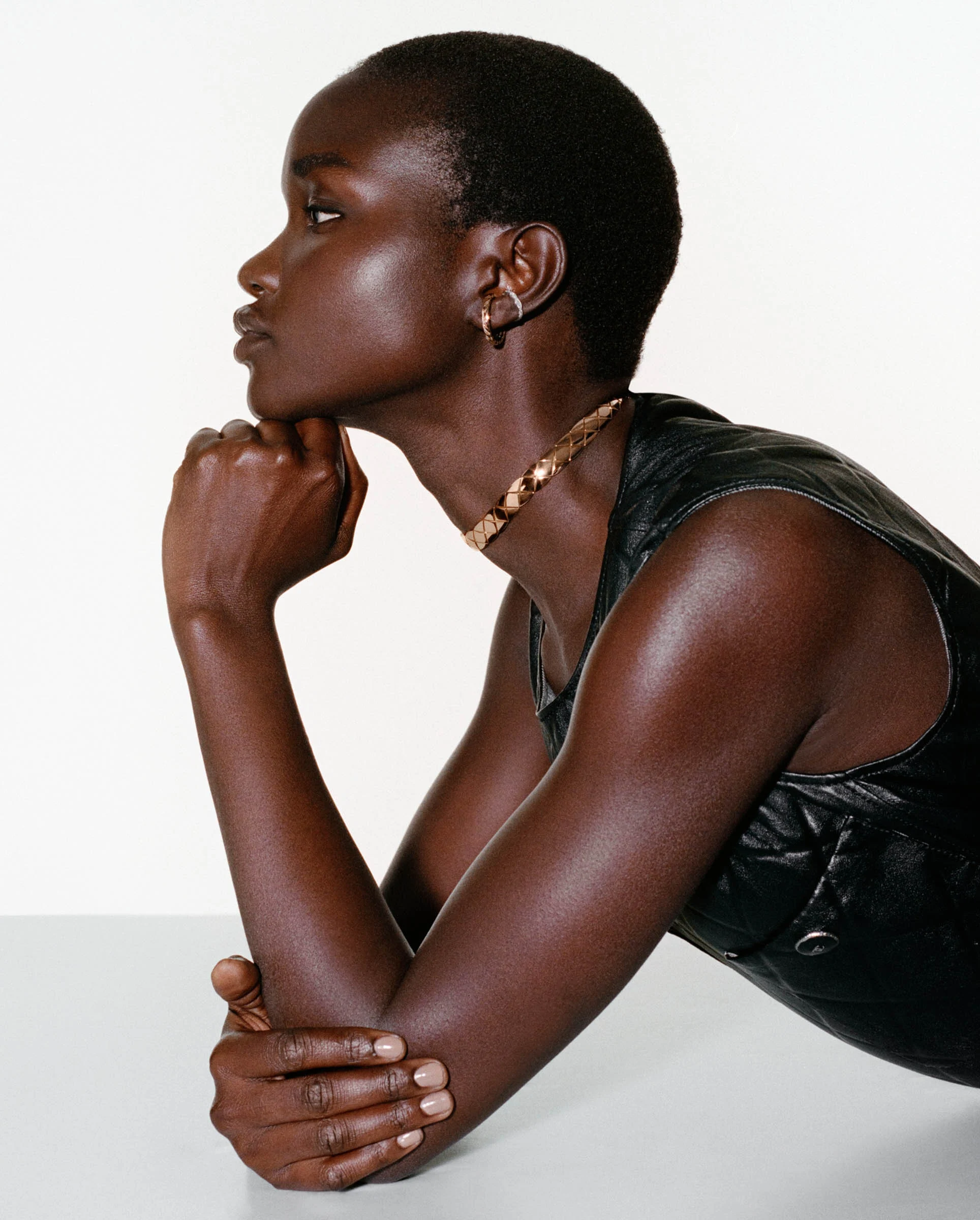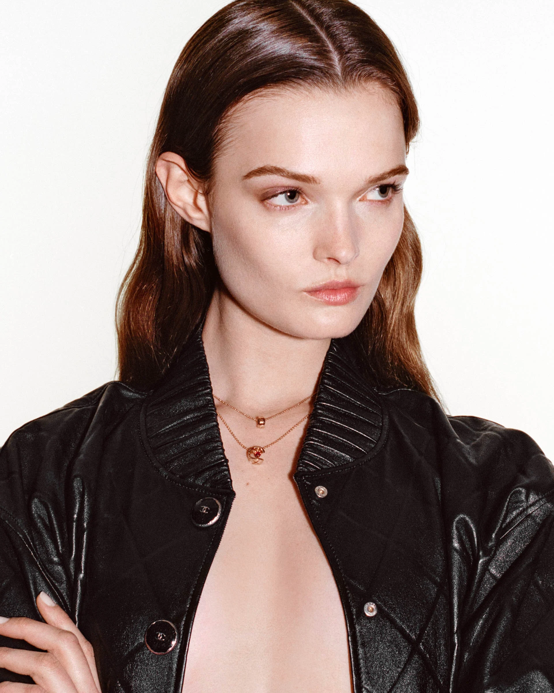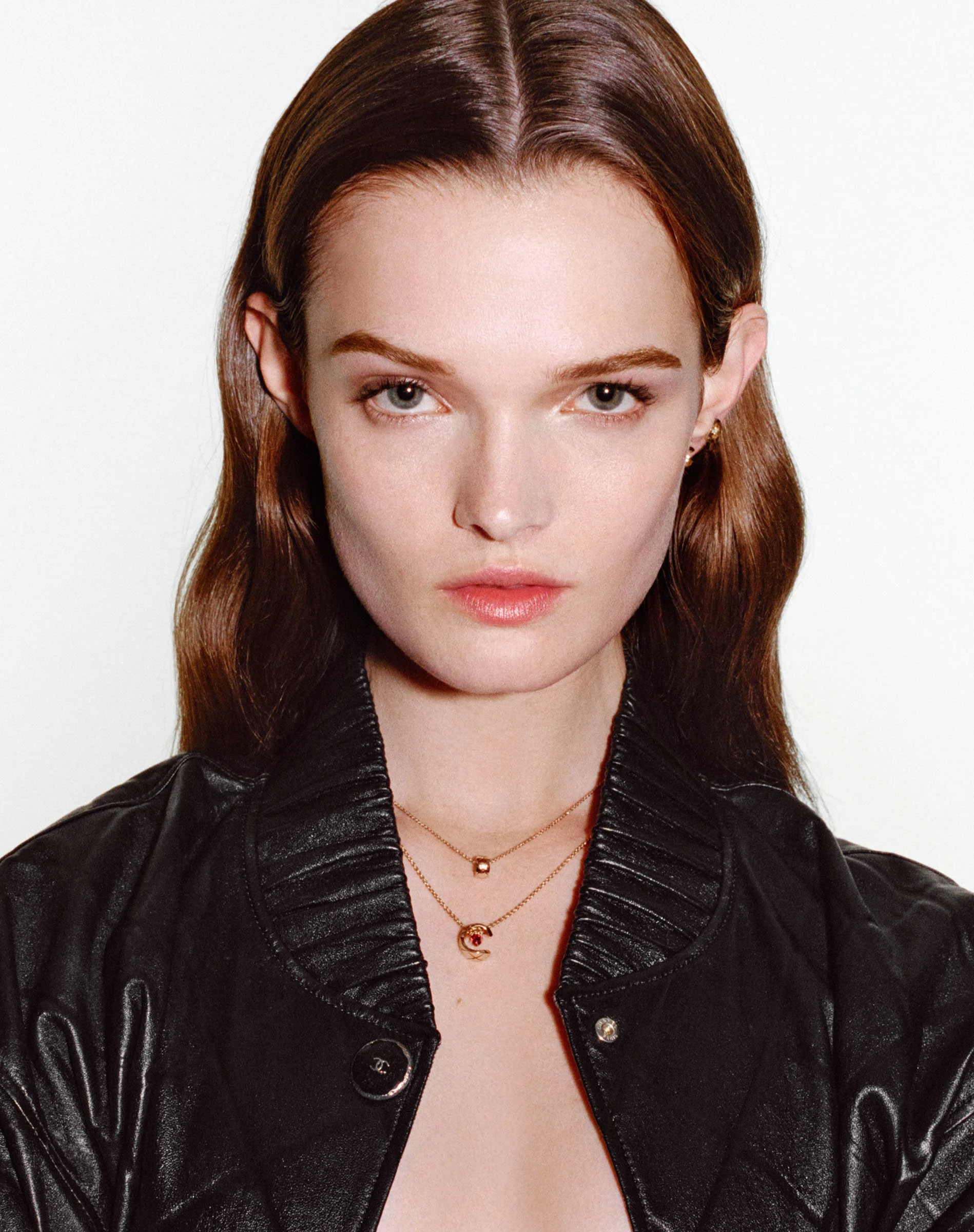 延续 Gabrielle Chanel 让身体摆脱束缚、自由运动的时尚宣言,全新项链作品采用创新的网格化连接结构,并配备滑动搭扣,使金质材质如同第二层肌肤般精准、柔软地贴合颈部曲线。无论是贴身短项链还是前卫的项圈,都通过 BEIGE 米色金、黄 18K 金及白 18K 金的简约线条,呈现出极致的精准与张力。