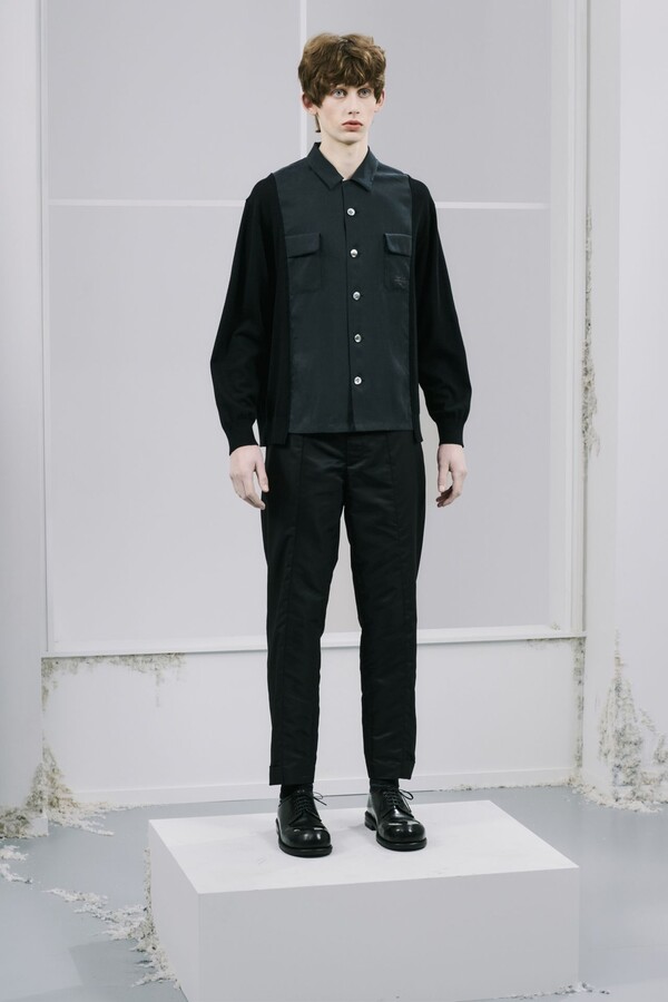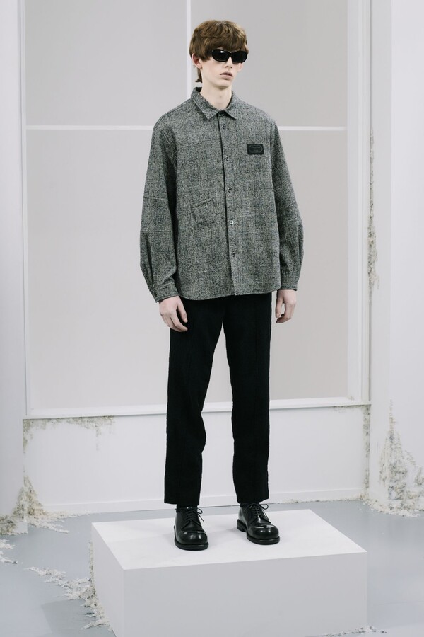在 UNDERCOVER 2026 早秋系列中,高桥盾没有延续时装秀上戏剧化的不和谐,而是将其理念融入到更为内敛、更具亲和感的设计中,同时又不失品牌在反叛与实穿性之间的张力。新系列被描述为「对经典基础单品的当代诠释」, T 恤、毛衣、衬衫、飞行员夹克和简约剪裁构成了本季的核心,每件单品都经过微妙的调整,而非彻底的解构。简洁的线条、精准的比例以及细微却匠心独运的细节都体现了精准的魅力。