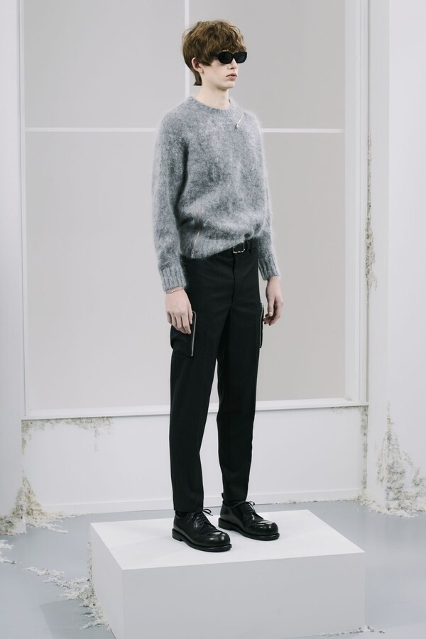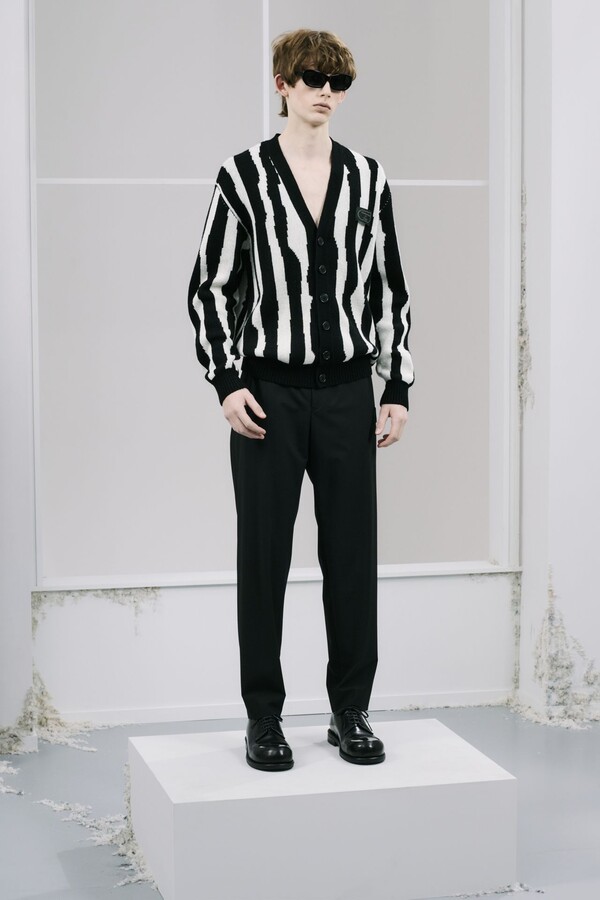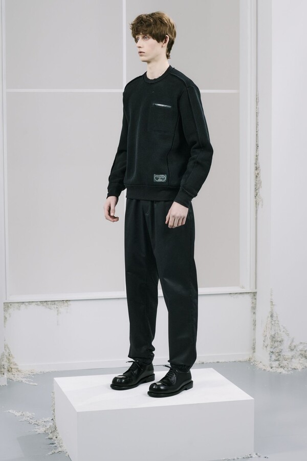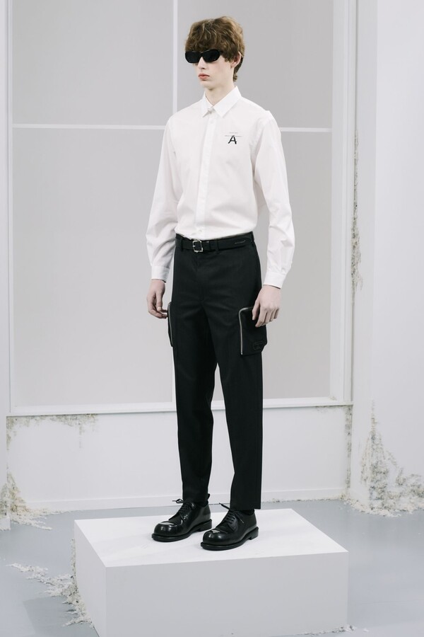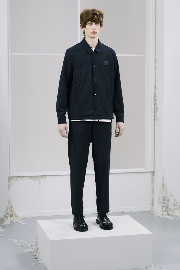 廓形上则进行了明显的调整——与近几季相比,本季的廓形刻意更加紧凑。在男装界充斥着宽松廓形的当下,这种回归更修身、更精准剪裁的设计显得恰到好处。剪裁虽合身但不紧绷,强化了整体的精致感。