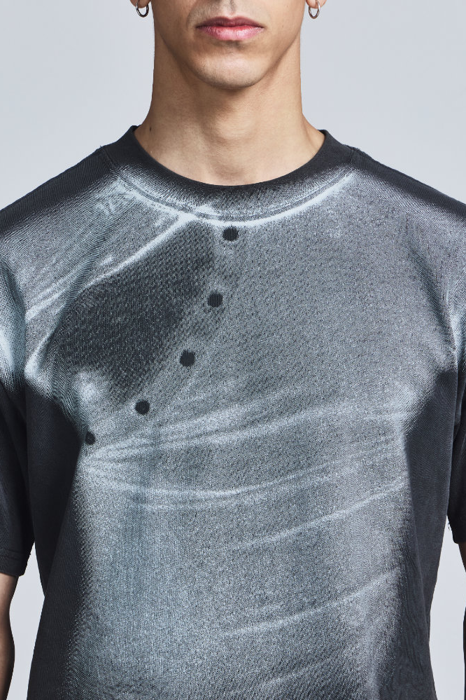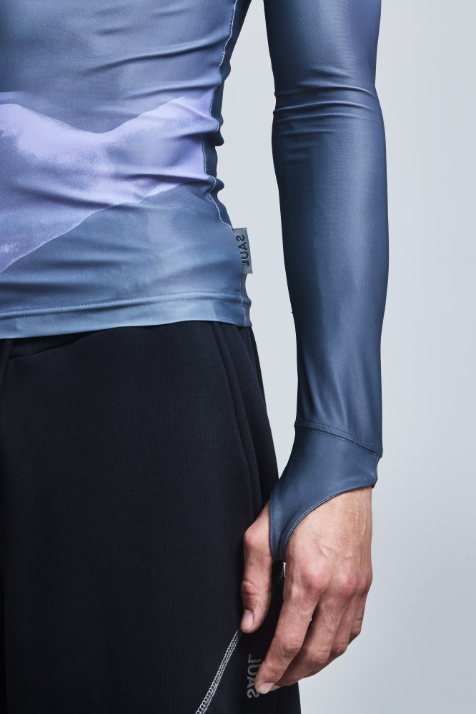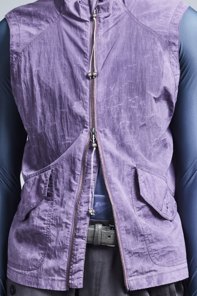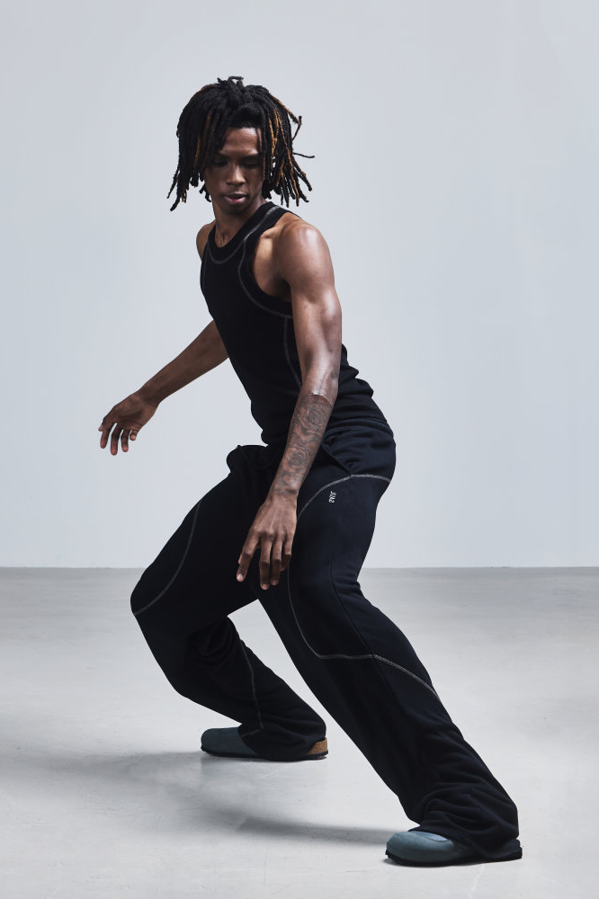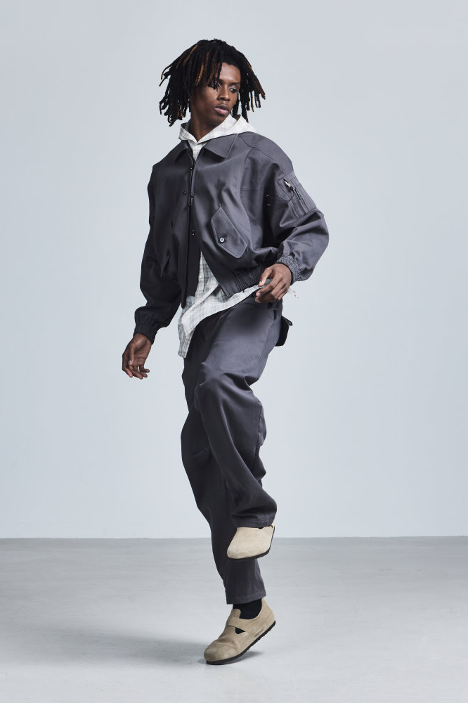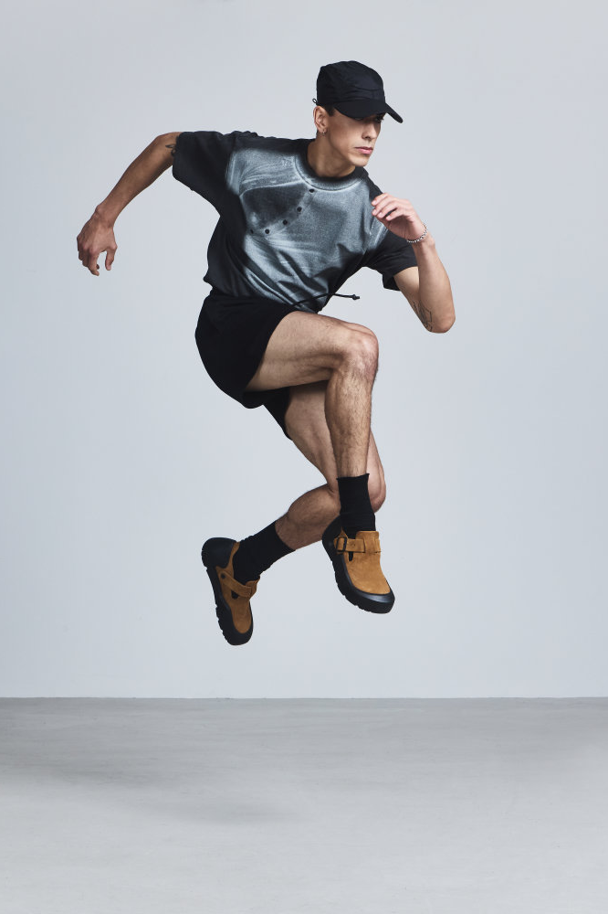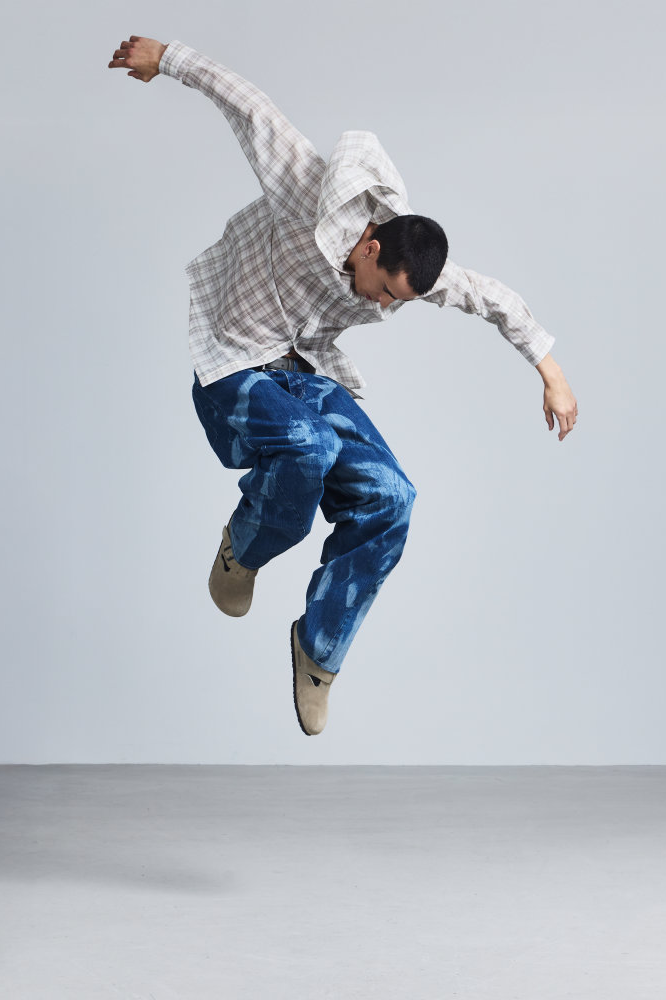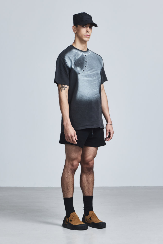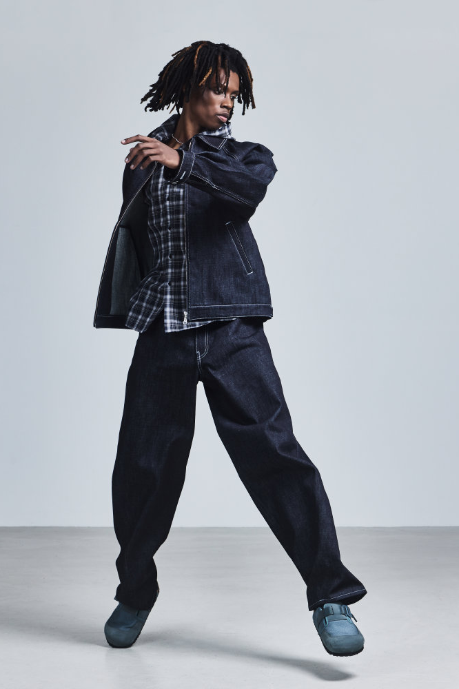 主打单品直接体现了这一点:弹力亨利领上衣紧贴身形,采用不对称的开合设计;紧身背心胸前印有拉伸的手印,象征被拥抱的感觉;厚重的牛仔套装上则激光雕刻着两个交缠人像的抽象图案。品牌标志性的动感剪裁飞行员夹克、运动套装和高性能背心也再次回归,同时还推出了以防水棉府绸面料制成的连帽牛津衬衫等更多剪裁精良的款式。色彩方面主打柔和的灰色、浅黄色和淡紫色,强调结构感与流动性之间的平衡。