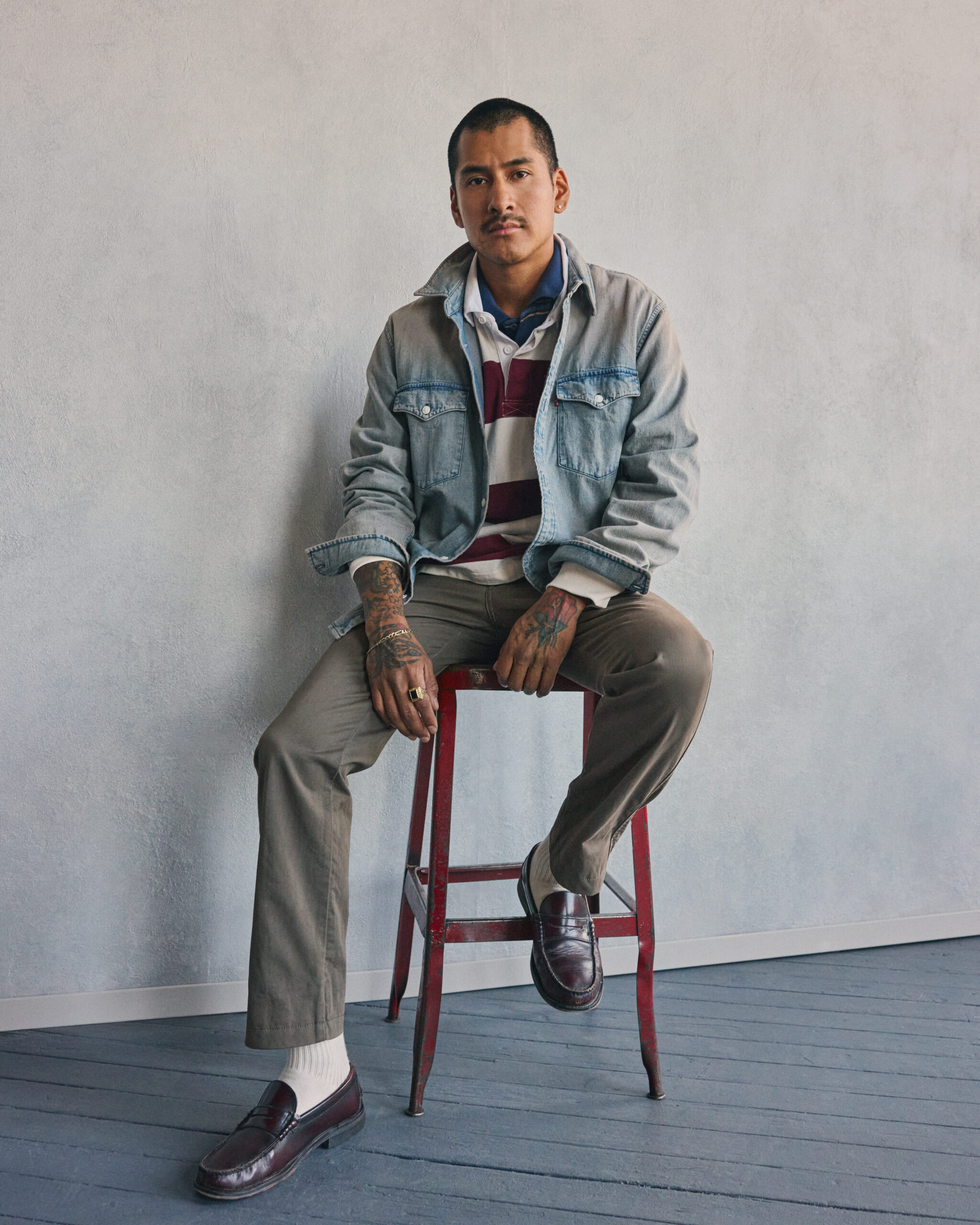 Levi’s® 甄选了品牌 2026 年风格交响系列中的经典单品,邀请 Dev Hynes 以个人视角自由诠释。Hynes 携手长期合作伙伴与摄影师 Katharina Korbjuhn,在洛杉矶亲自操刀造型设计并担任创意指导。以他广受好评的新专辑《Essex Honey》中的歌曲《Somewhere in Between》为灵感基底,捕捉了一系列真实而充满叙事张力的视觉瞬间。在最终呈现的内容中,Hynes 以打破常规的方式演绎单品:将 Authentic 休闲衬衫穿出新质感,Clayton 皮革夹克与 Hayes 宽松连帽卫衣进行叠穿,更将标志性的 578TM Baggy 牛仔裤与学院风纹理巧妙融合。拍摄场景穿梭于精心布置的艺术化影棚与未经修饰的排练现场之间——包括街头角落的大提琴演奏时刻。