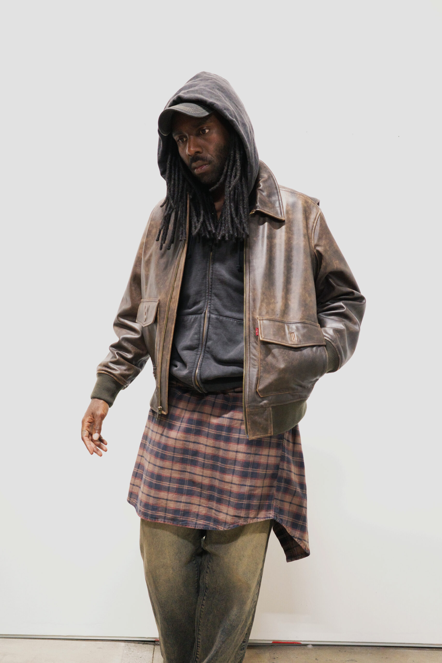 为解构精致型格与不羁质感的冲突平衡,Levi’s® 将目光投向于一位天生游走于两者之间的创造者。在全新系列中,品牌以融合废土风与学院风的矛盾美学单品为核心,将创意主导权交予真正的风格革新者——身兼音乐人、制作人、作曲家及唱作人多重身份的 Dev Hynes。作为 Blood Orange 乐队的灵魂人物,Dev Hynes 的艺术生涯始终贯穿着对矛盾张力的拥抱。他的音乐创作与时尚理念同频共振:纯粹、赤诚,始终忠于自我表达。