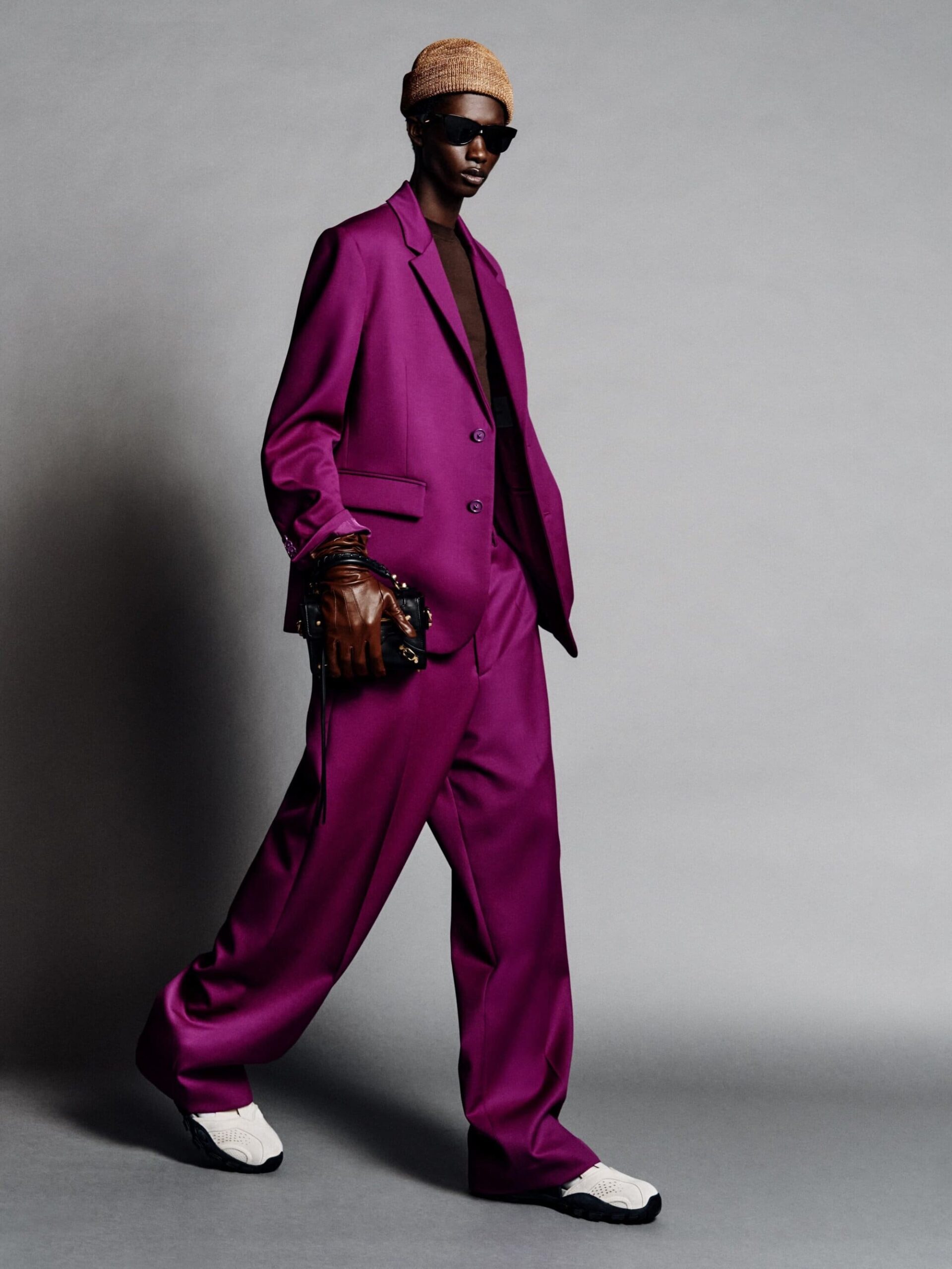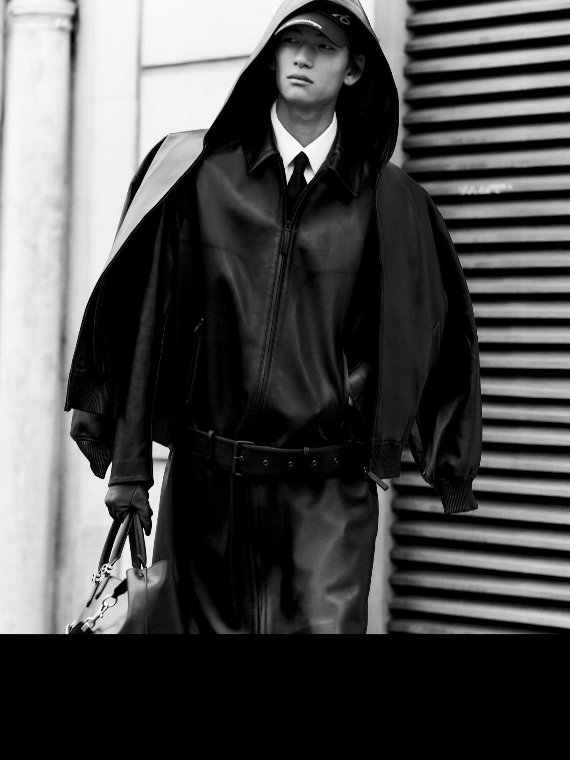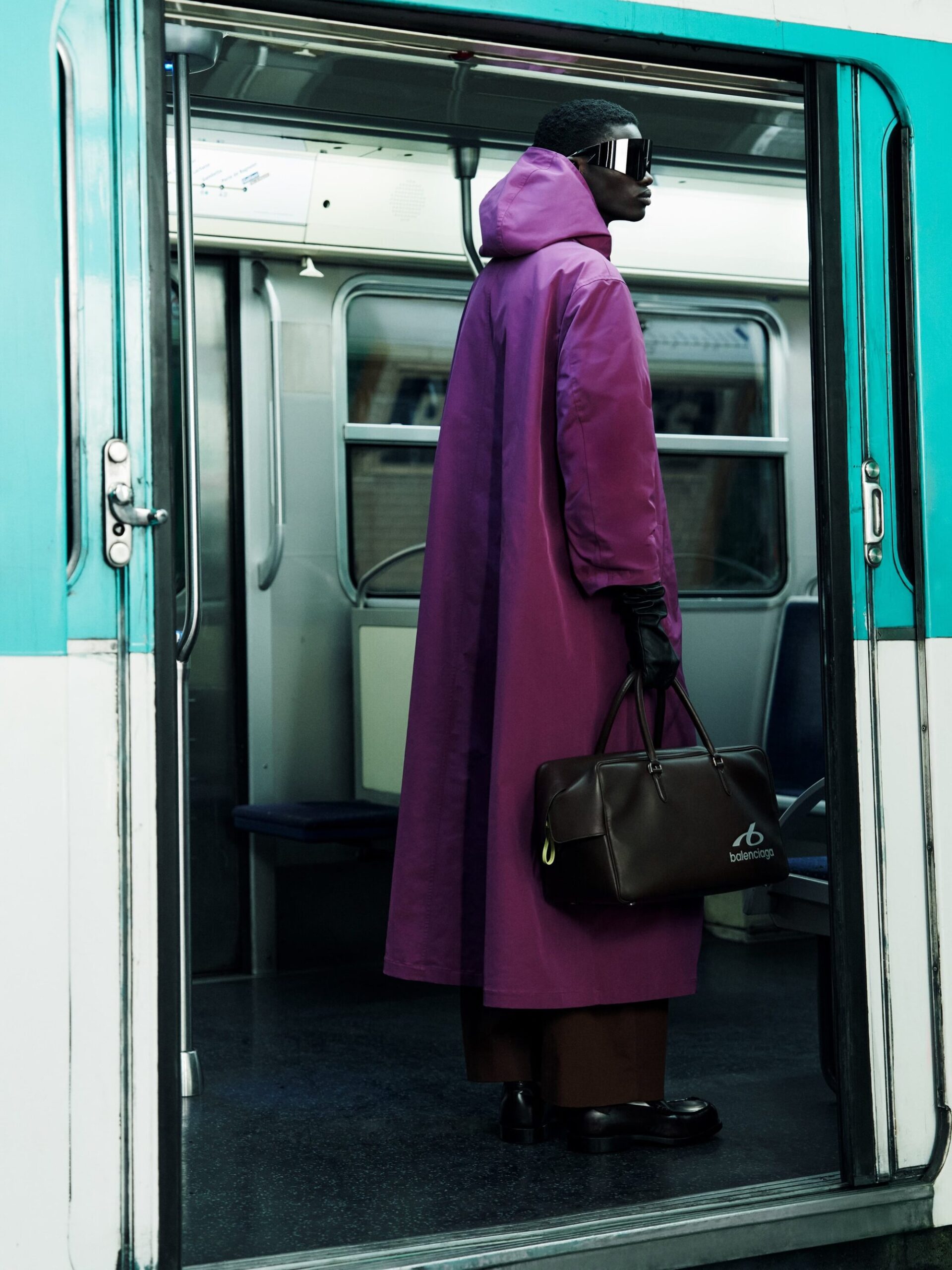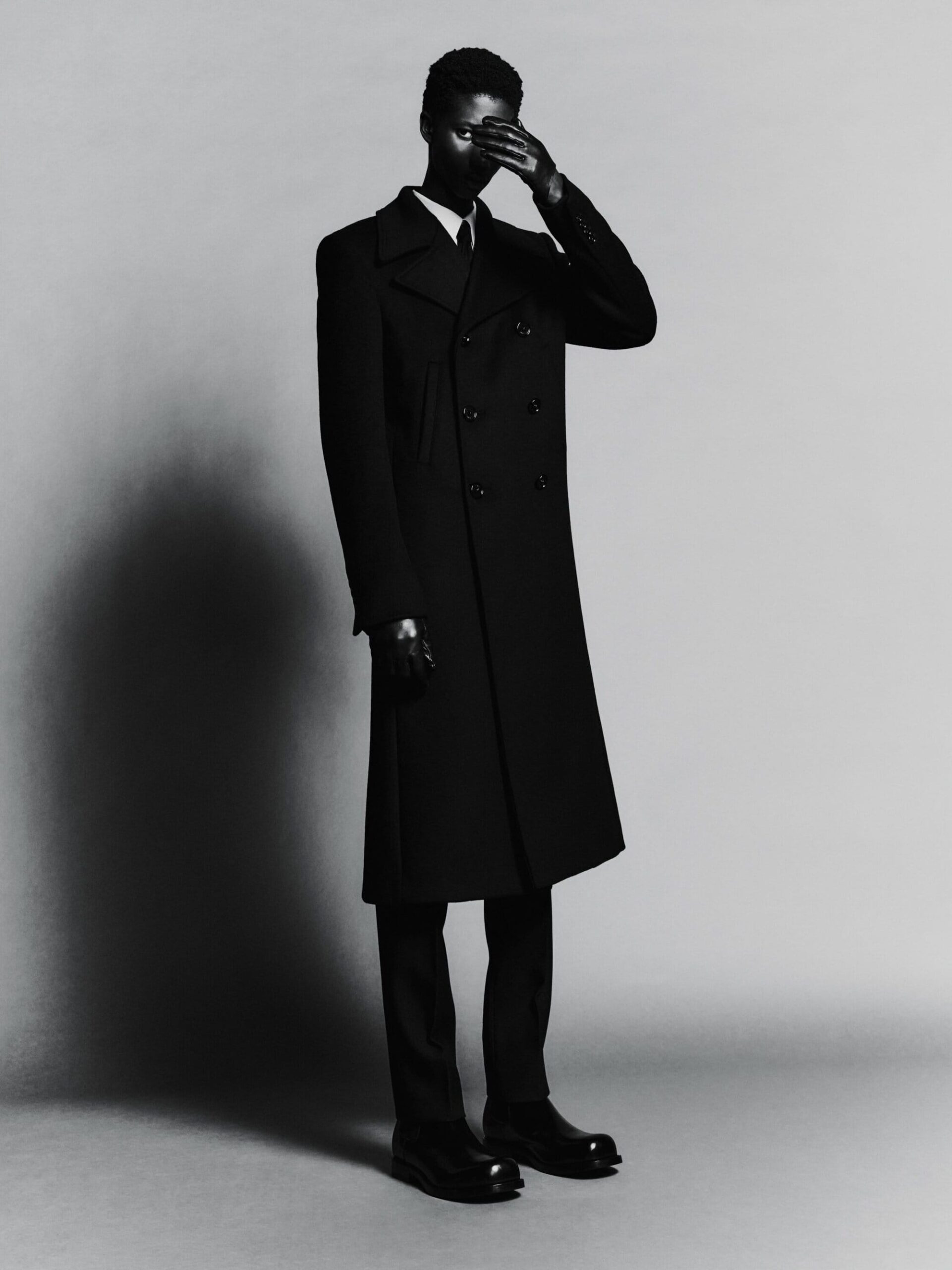 本系列将紧身连体衣与连裤袜定义为「科技服饰」,强调不仅具备装饰性,更拥有真正的运动表现力。品牌标志性的巨型运动鞋也迎来了轻量化革新,使其真正能够胜任跑步与运动。在致敬创始人 Cristobal 时,Piccioli 巧妙转化了经典廓形:男装骆驼绒大衣参考了创始人为自己裁剪的私人物品,而皮革夹克与流线型长裙则融入了标志性的露肩颈线与茧型剪裁。