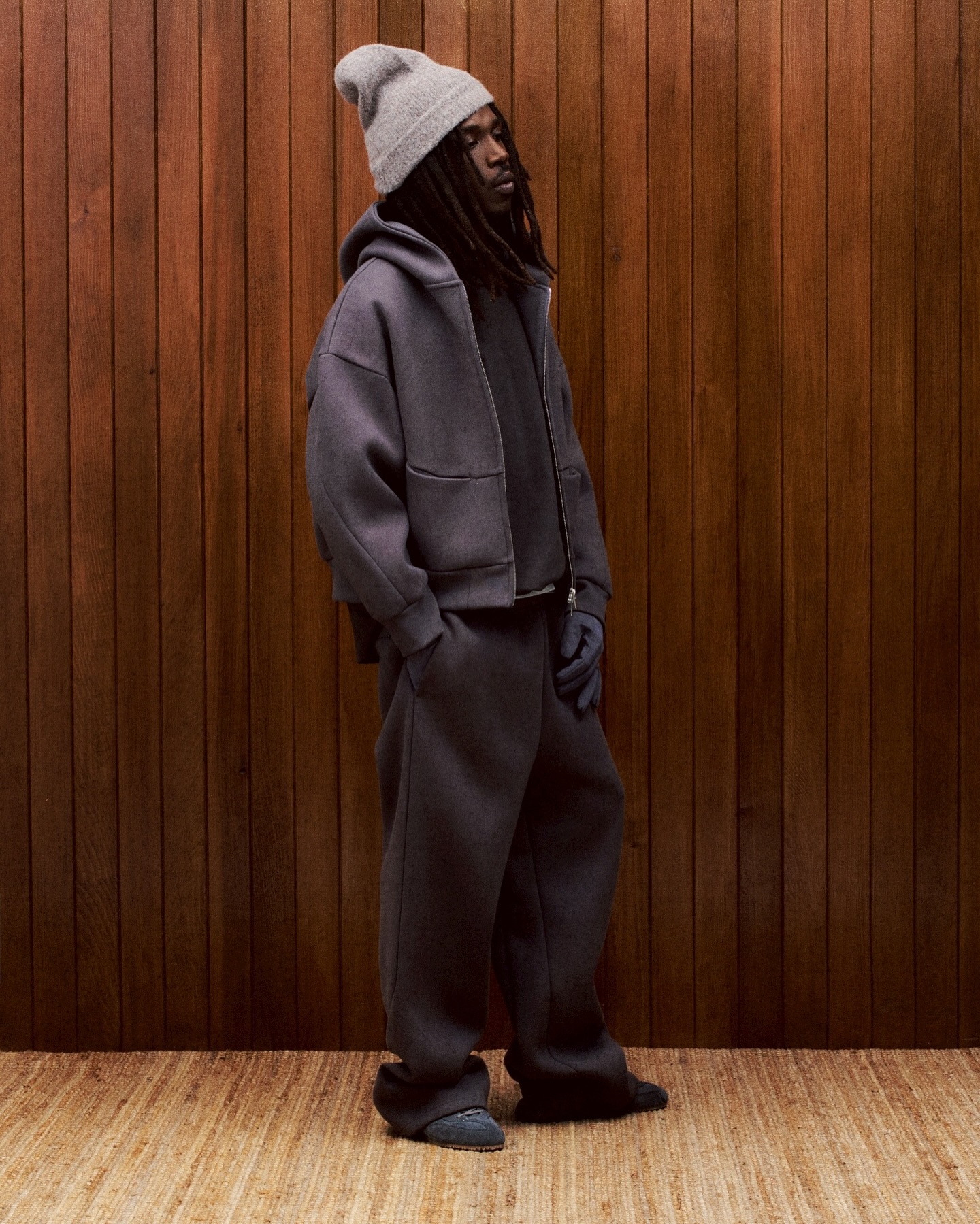 该系列聚焦高品质用料与概念化图像表达,推出多款核心单品,包括厚磅连帽卫衣、长袖 T 恤,以及定制剪裁的箱型外套。服装图案围绕禅宗思想与一休宗纯的精神遗产展开,既保留哲学意味,又具备鲜明的当代视觉张力。外套单品以结构感面料塑造 Seventh 一贯的宽松轮廓,并通过低调的双方联名细节强化整体完成度。配色方面则回归克制本源,选用黑色、灰色与米白等中性色调。