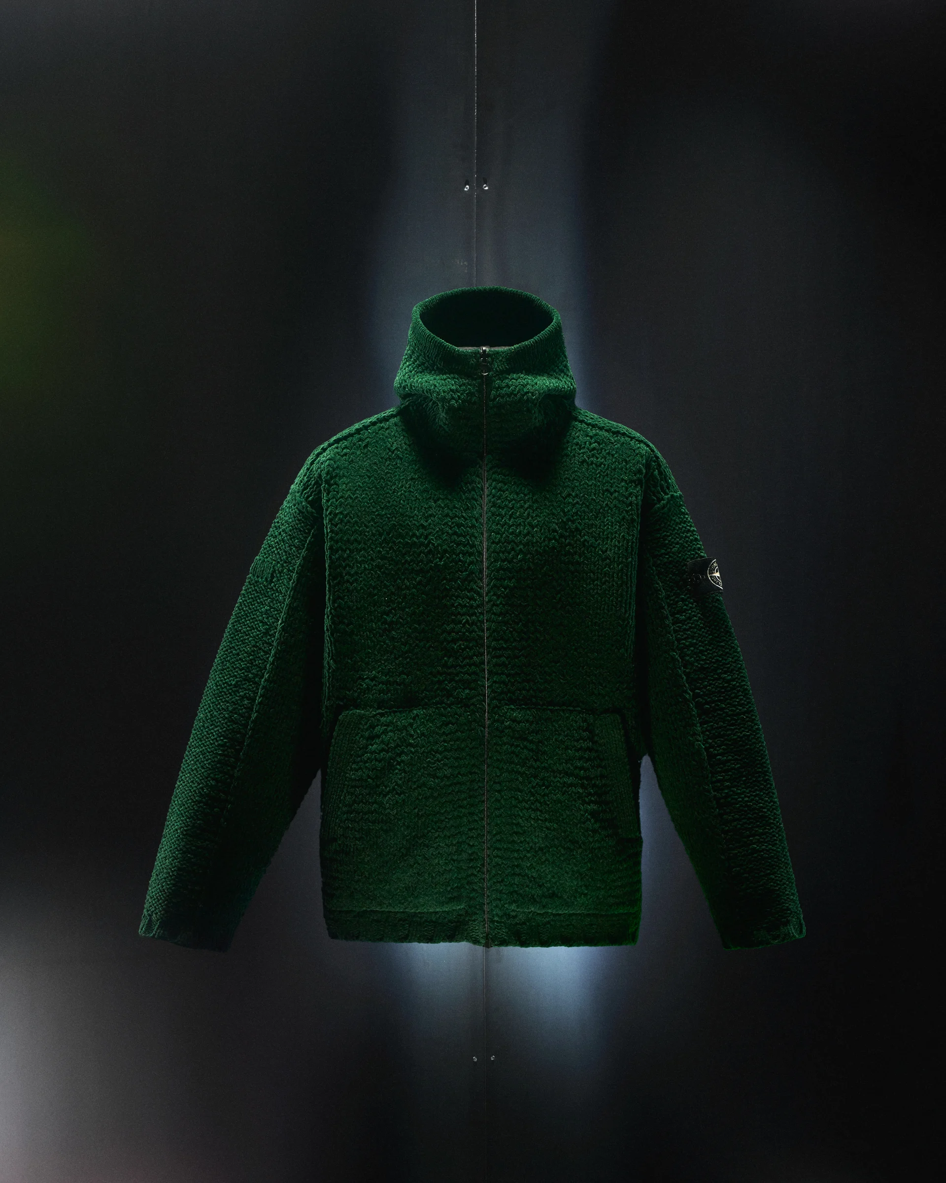 米兰时装周期间,Stone Island 发布了 Prototype Research 系列的第九季作品。这一展现品牌色彩调配极限的实验性项目,以品牌实验室在研发过程中诞生的实验性面料与加工工艺为内核。此次新作是该项目首次将研发焦点转向针织领域。品牌以一款可双面穿的棉质 Cotton Chenille 连帽开襟衫为原型,引入了名为「Air-Blow Lamination Knit」的尖端技术。该工艺将具有防水透气性能的 HDry® 膜直接贴合在针织物上。由于制作过程中会产生自然且不均匀的表面效果,使得每一件成衣都具备独特的个体差异。此外,超薄膜层的应用,完美保留并突出了针织材质原有的结构感、色彩深度与触感纹理。