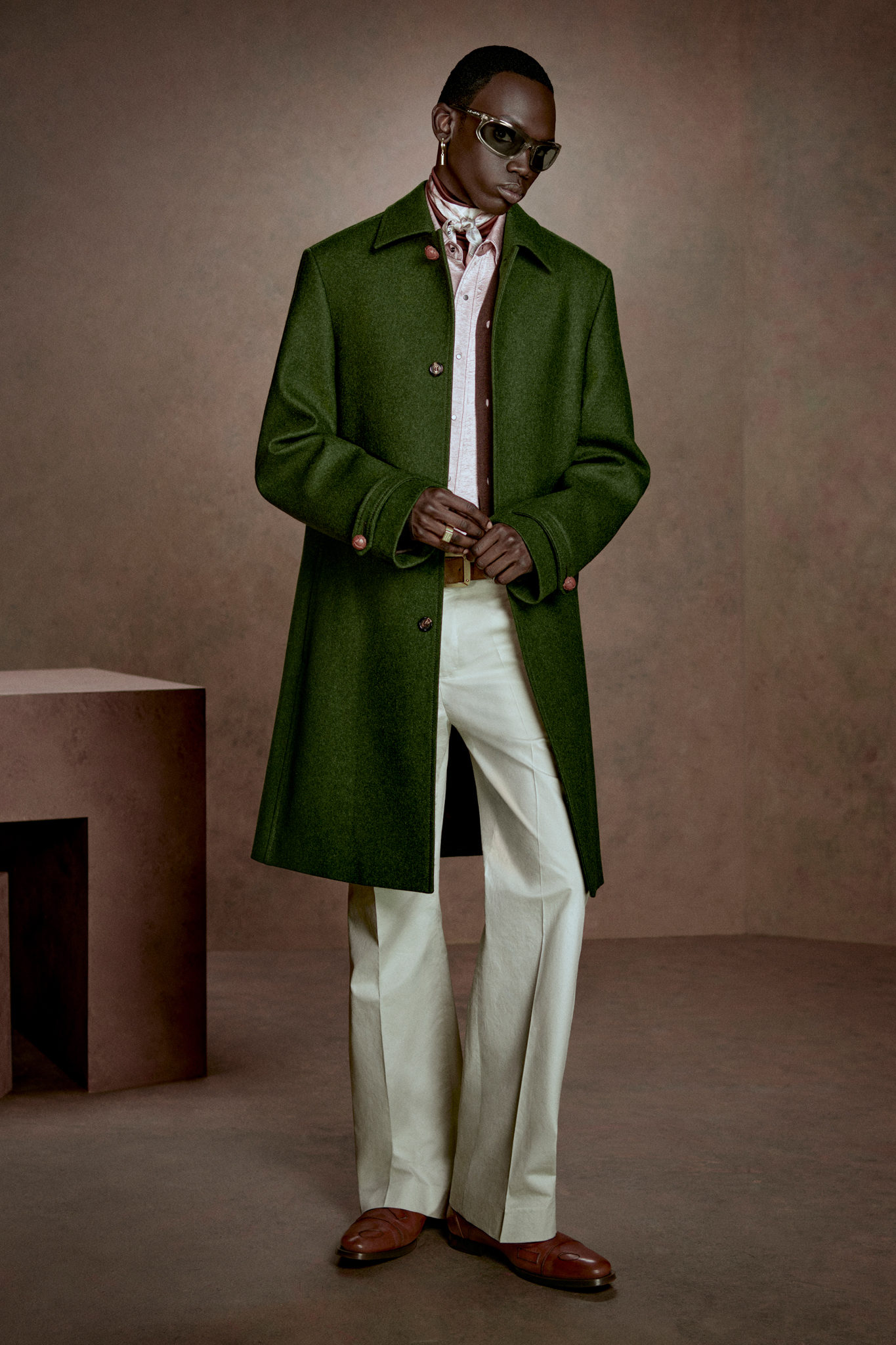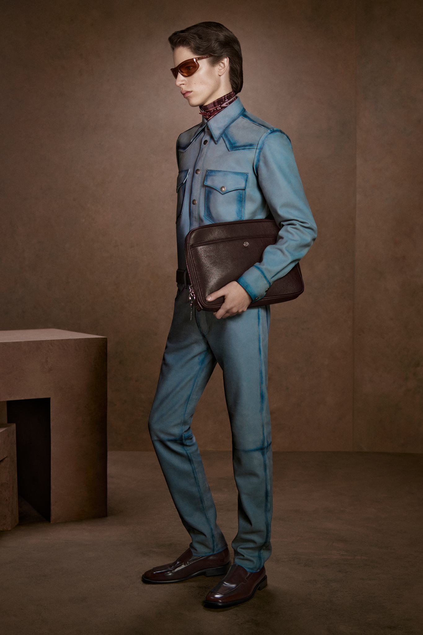 回顾过去三十年,Johansson 认为变化最大的,是年轻世代对时尚的消费方式。「如今,人们比以往任何时候都更看重整体体验,」他表示。在审美节奏愈发迅猛的当下,这也解释了为何「经典主义」重新成为行业焦点。本季秋冬系列正是围绕这一思路展开,以「男士着装指南」为灵感,从细条纹西装到升级版日常单品——焦糖色皮裤、做旧飞行夹克与类似粗呢质感的大衣——构建出一套兼具秩序感与个人风格的衣橱。