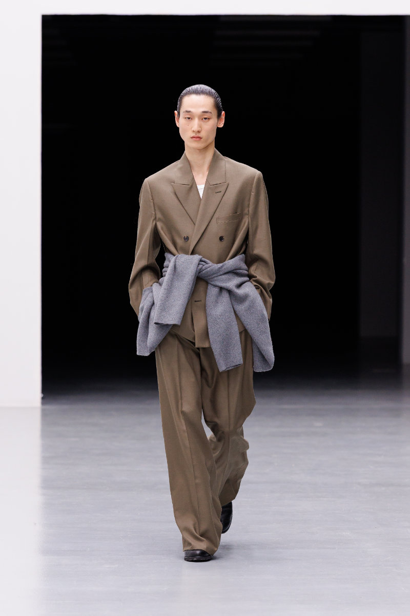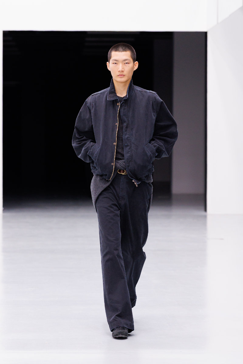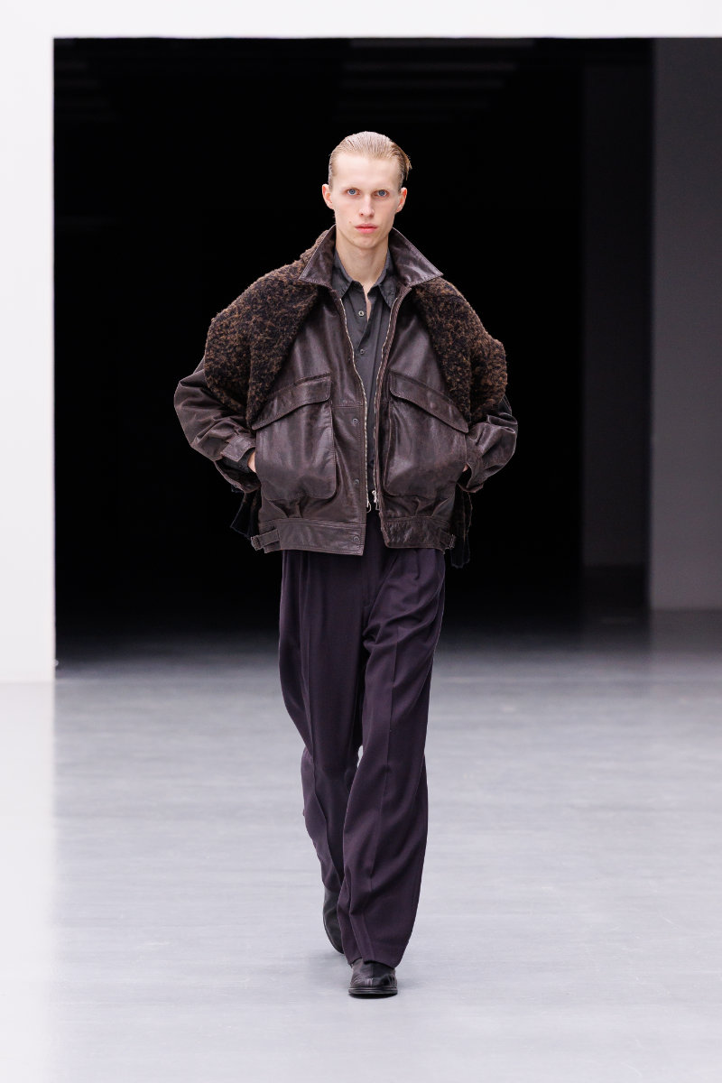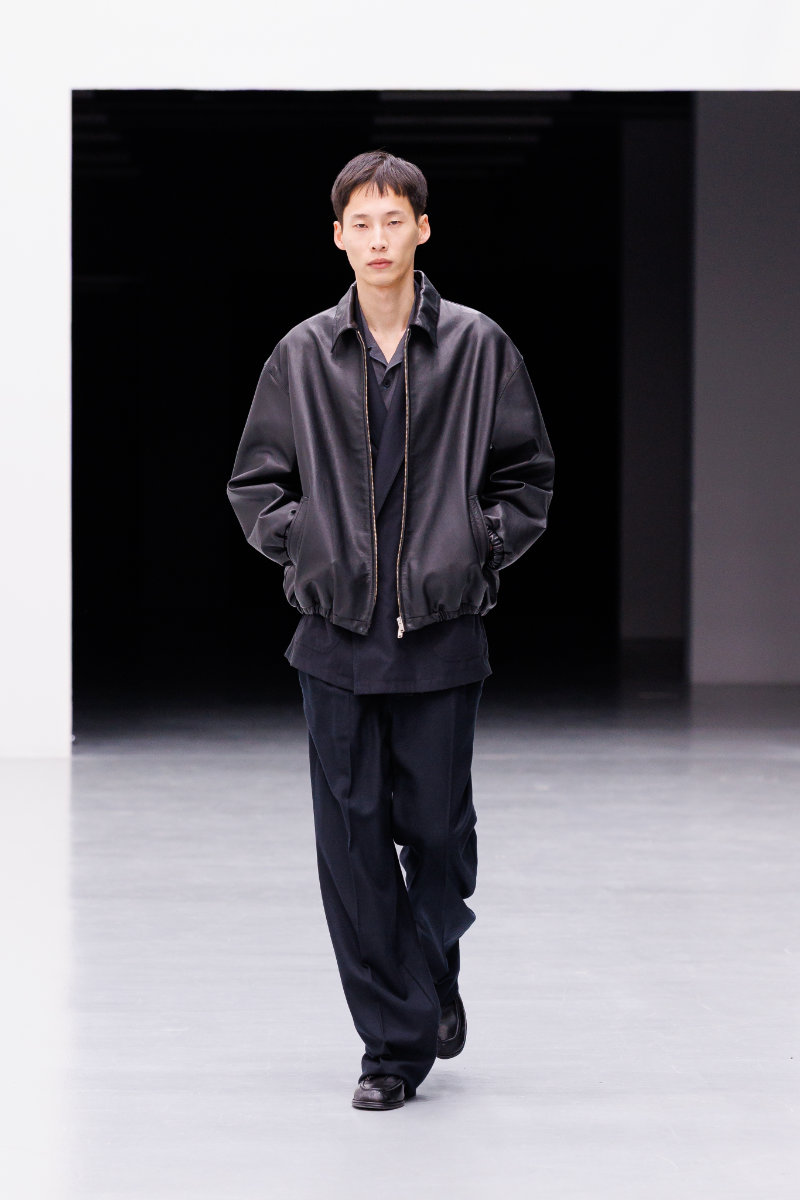 一切都显得低调内敛。配色克制且以单色调为主,营造出一种近乎冥想般的平静氛围。皮夹克、针织衫和宽松剪裁的服装巧妙融合,构成一个和谐统一的衣橱,既实用又精致。在这里,简约仅仅是起点,真正重要的在于廓形、结构以及贯穿每套造型的微妙错位感。所有造型传递出一种掌控力、克制感和清晰的专业性。YOKE 提供的并非孤立的单品,而是一整套服装体系,其中每一件单品都通过整体搭配来展现其意义。