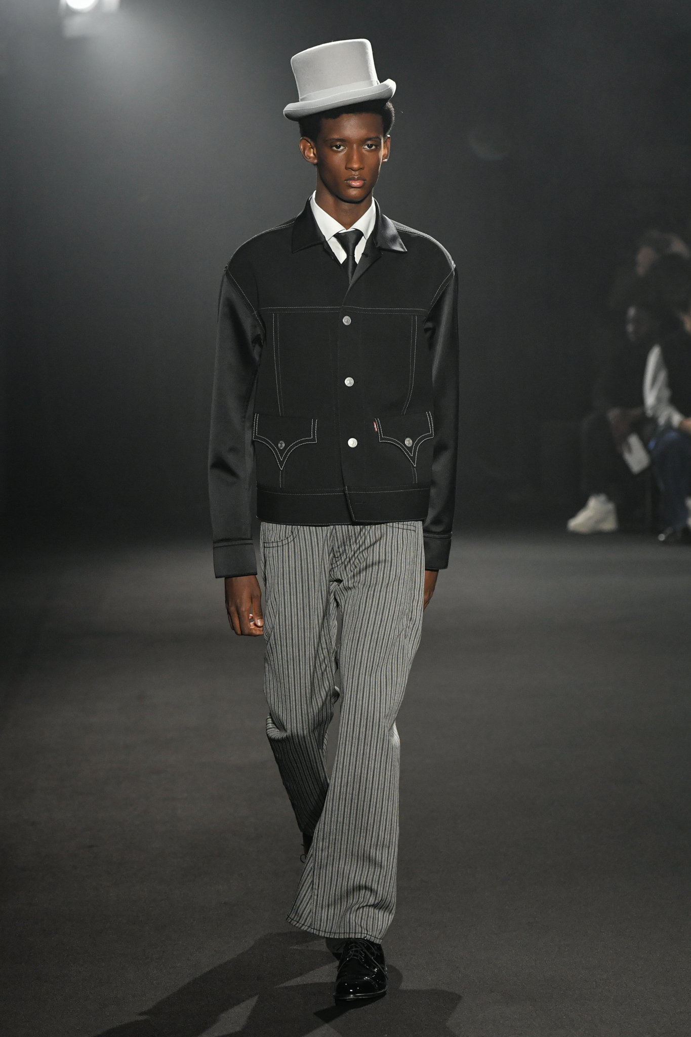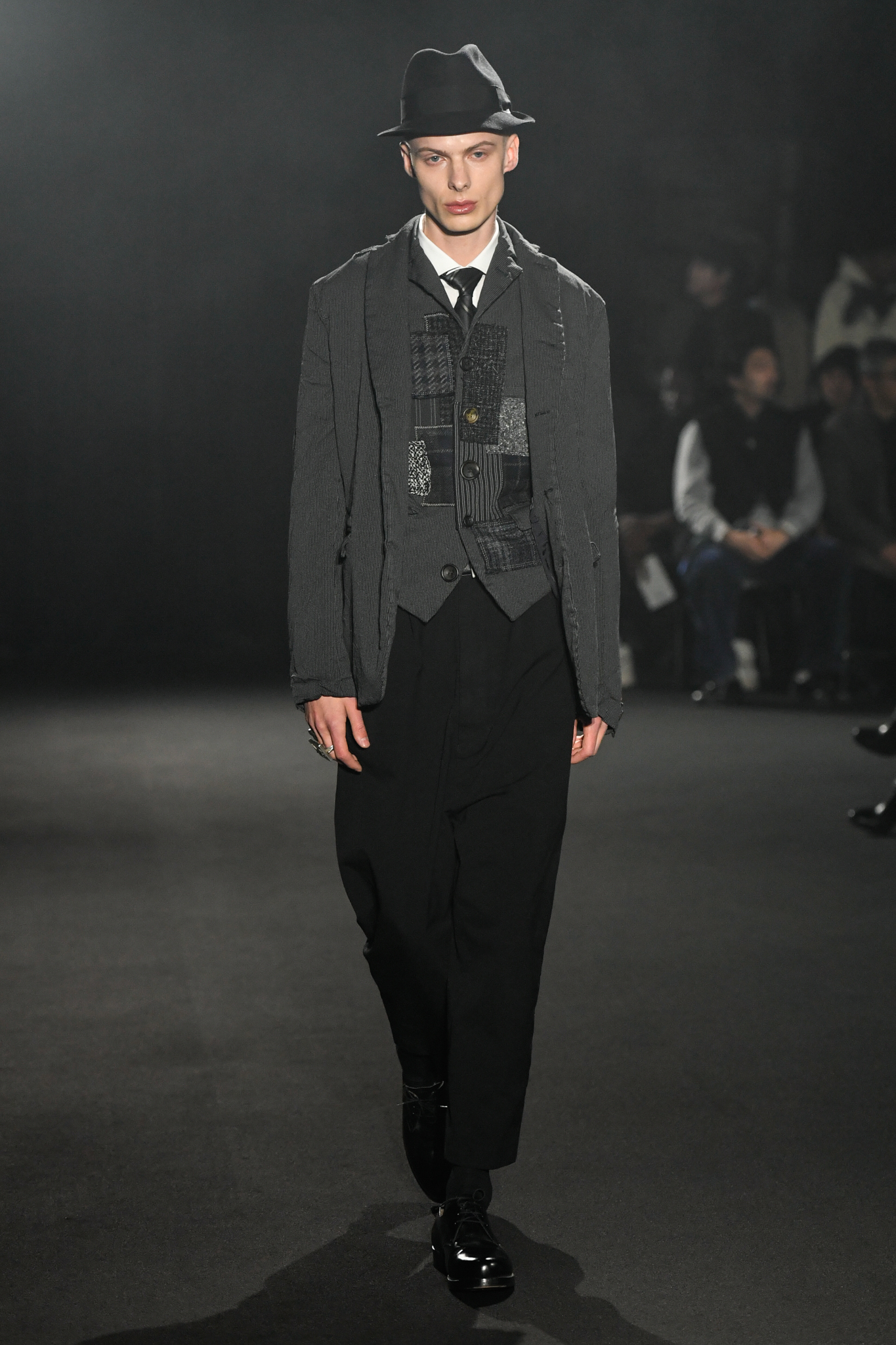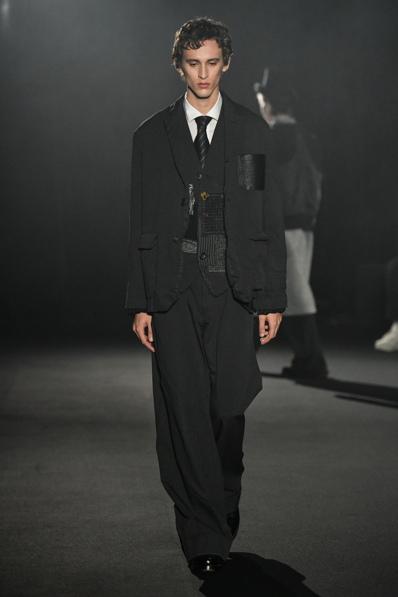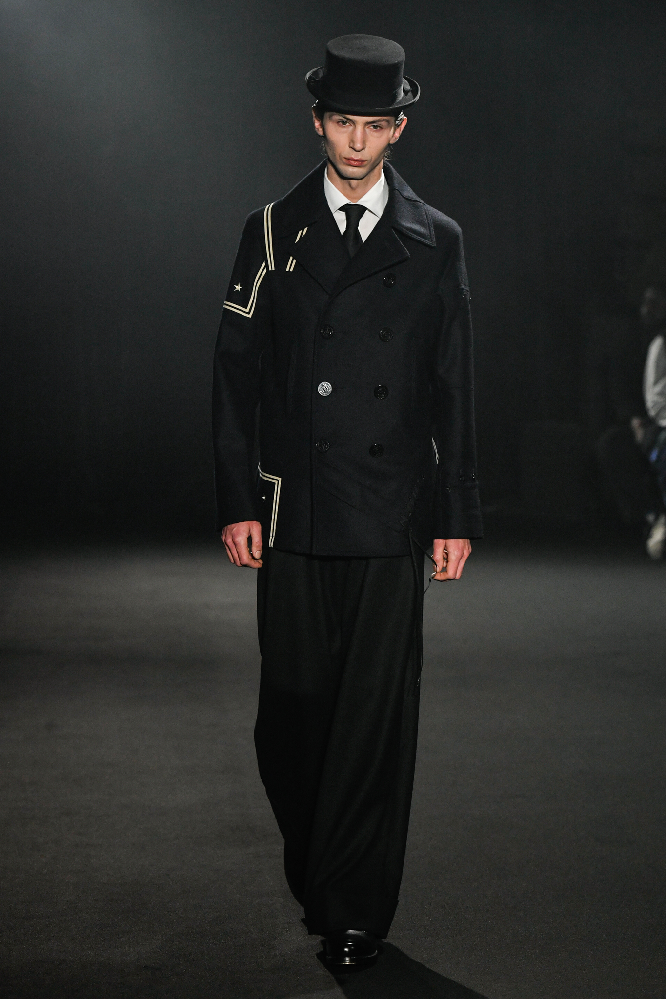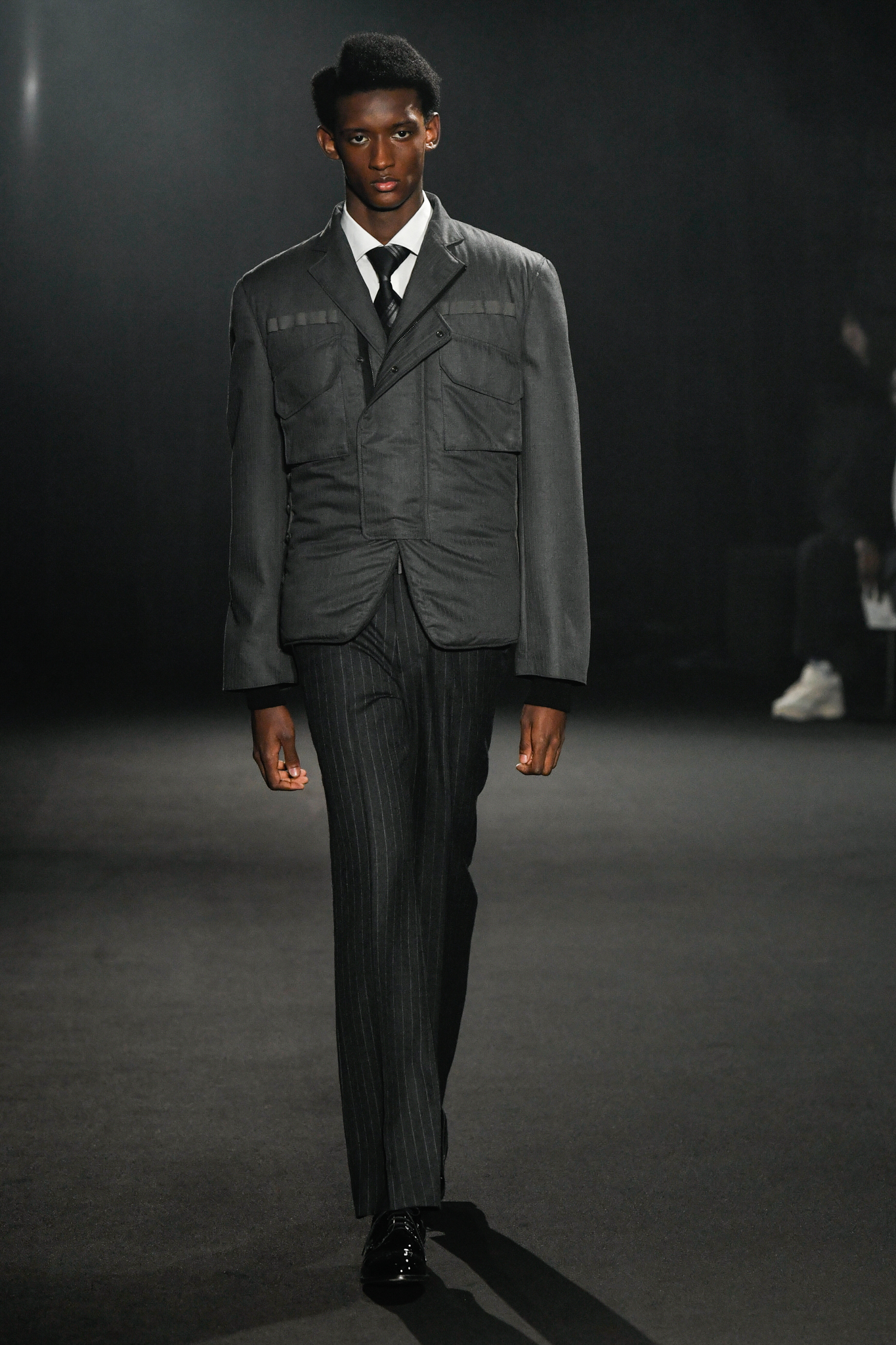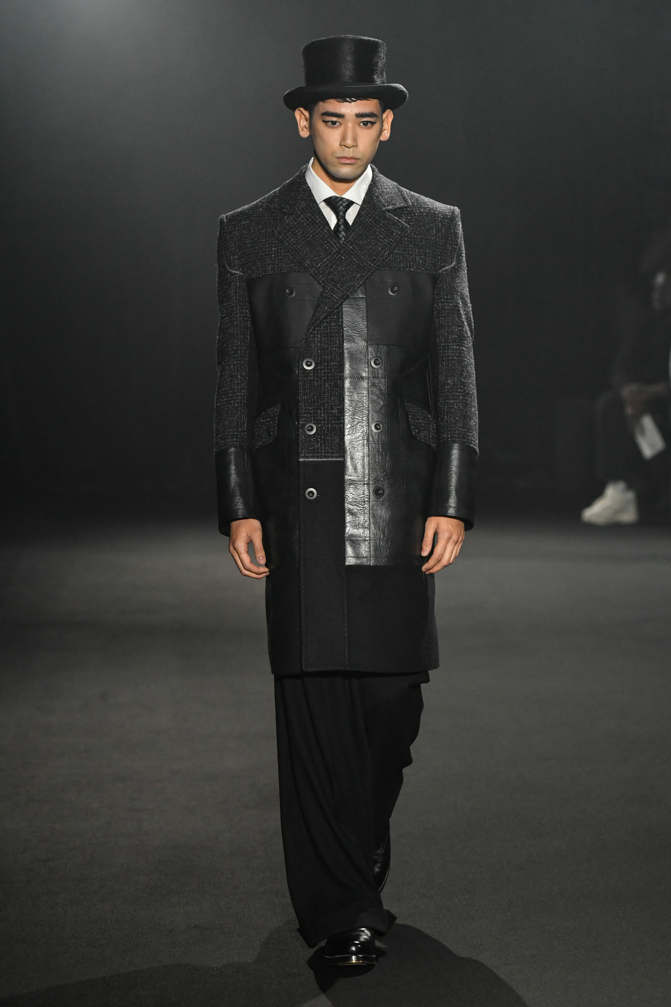 渡边淳弥在其 Junya Watanabe MAN 2026 秋冬系列中,将巴黎街头化为 1950 年代的浪漫布景,以咖啡馆座椅取代传统秀场,呈现一场亲密如街坊聚会的发布。系列聚焦 1958 至 1962 年的风格「黄金年代」,重塑常春藤联盟的经典轮廓——海军蓝西装、卡其裤与扣领衬衫,并注入次文化气息。亮点包括与 Stüssy 的合作,将品牌标志性 8-ball 与皇冠图案绣入学院剪裁;与 Levi’s®、Spiewak 的拼布联名则赋予单品工业质感;全新 New Balance 联名鞋款更模糊了运动鞋与牛津鞋的界限。透过融合传统正装线条、街头叛逆精神与粗犷工装质地,渡边再次诠释了经典在解构中重生的风格叙事。