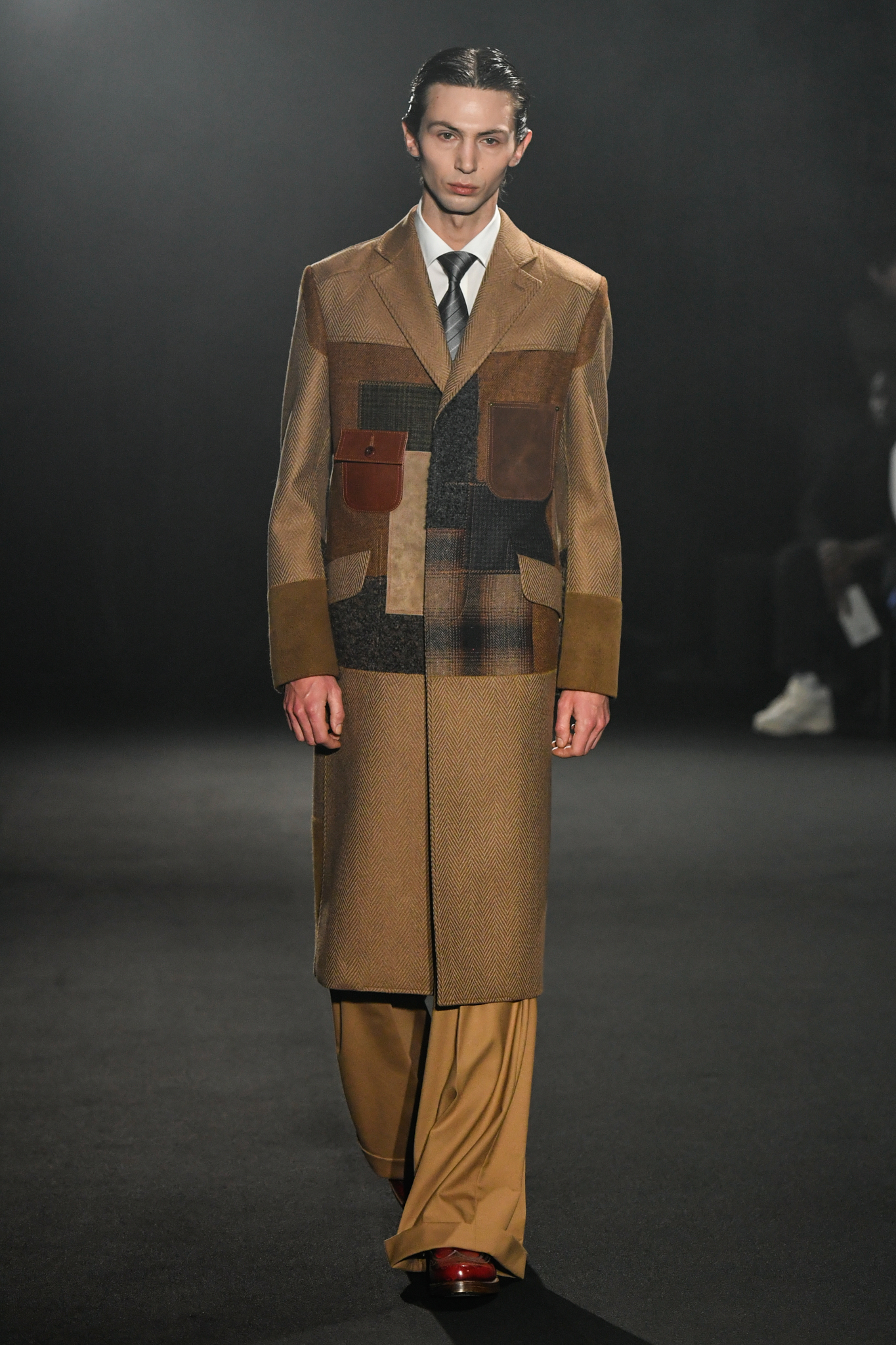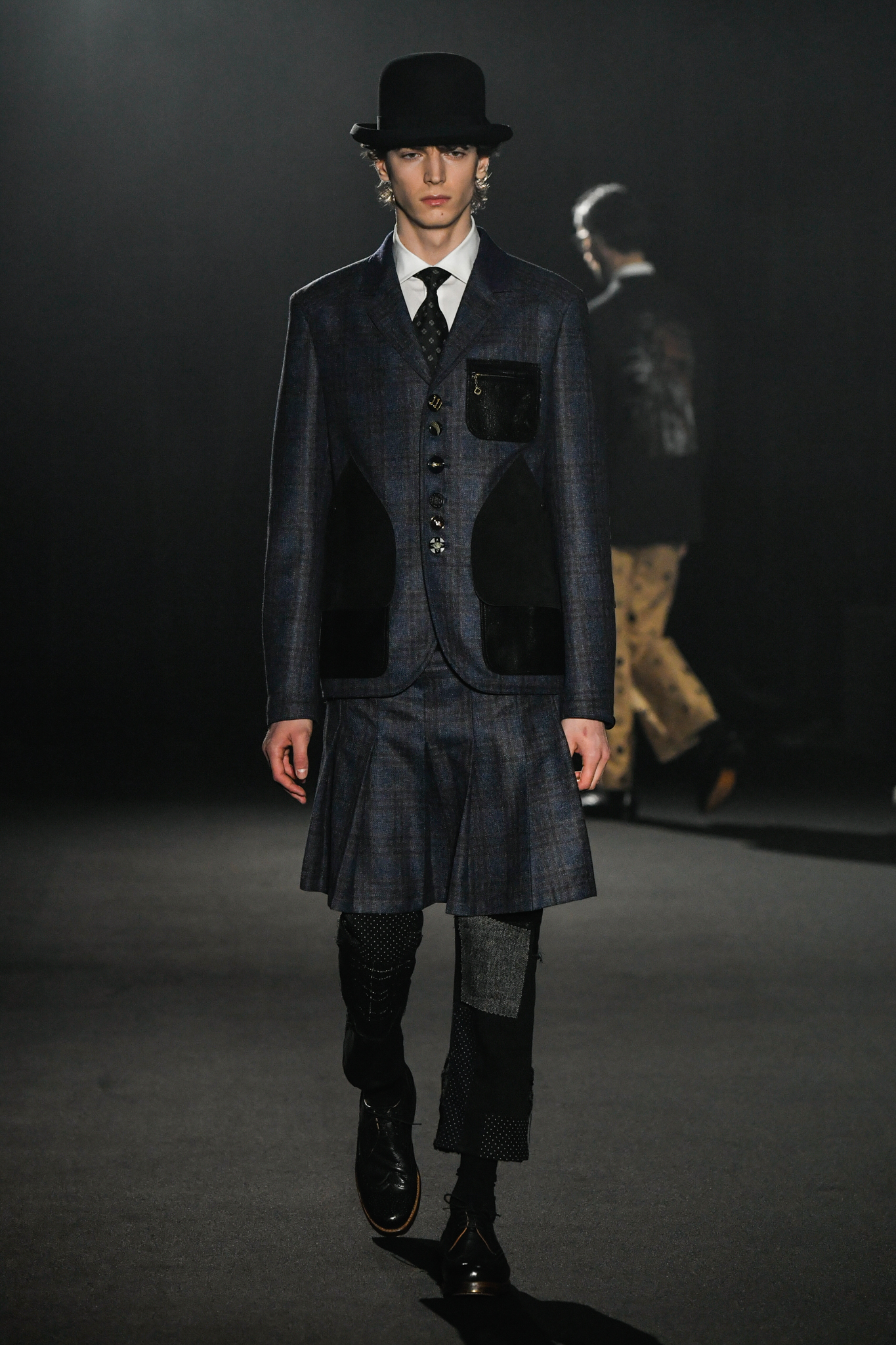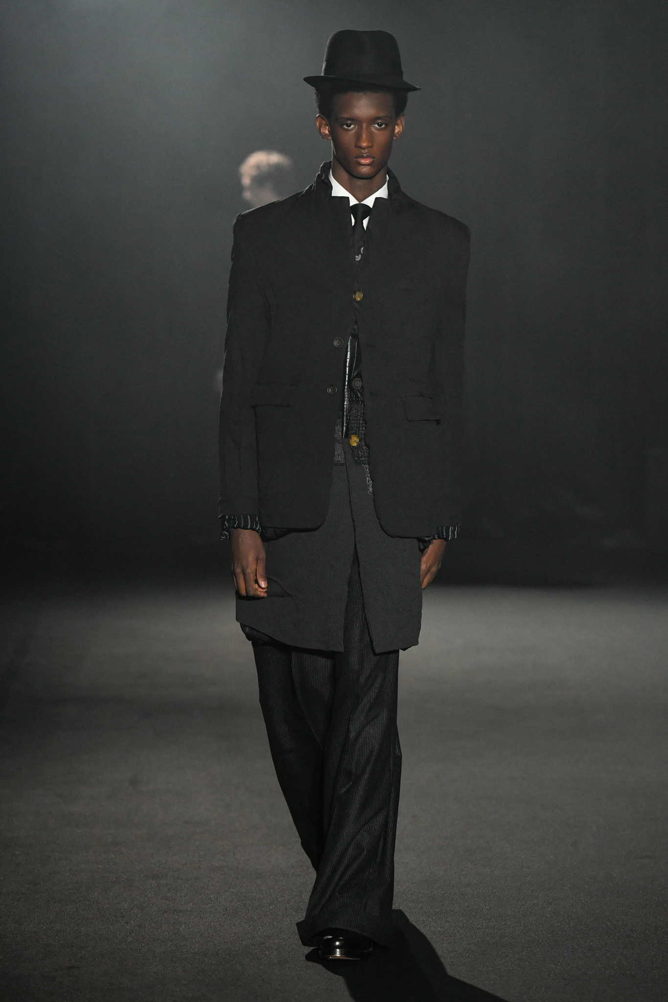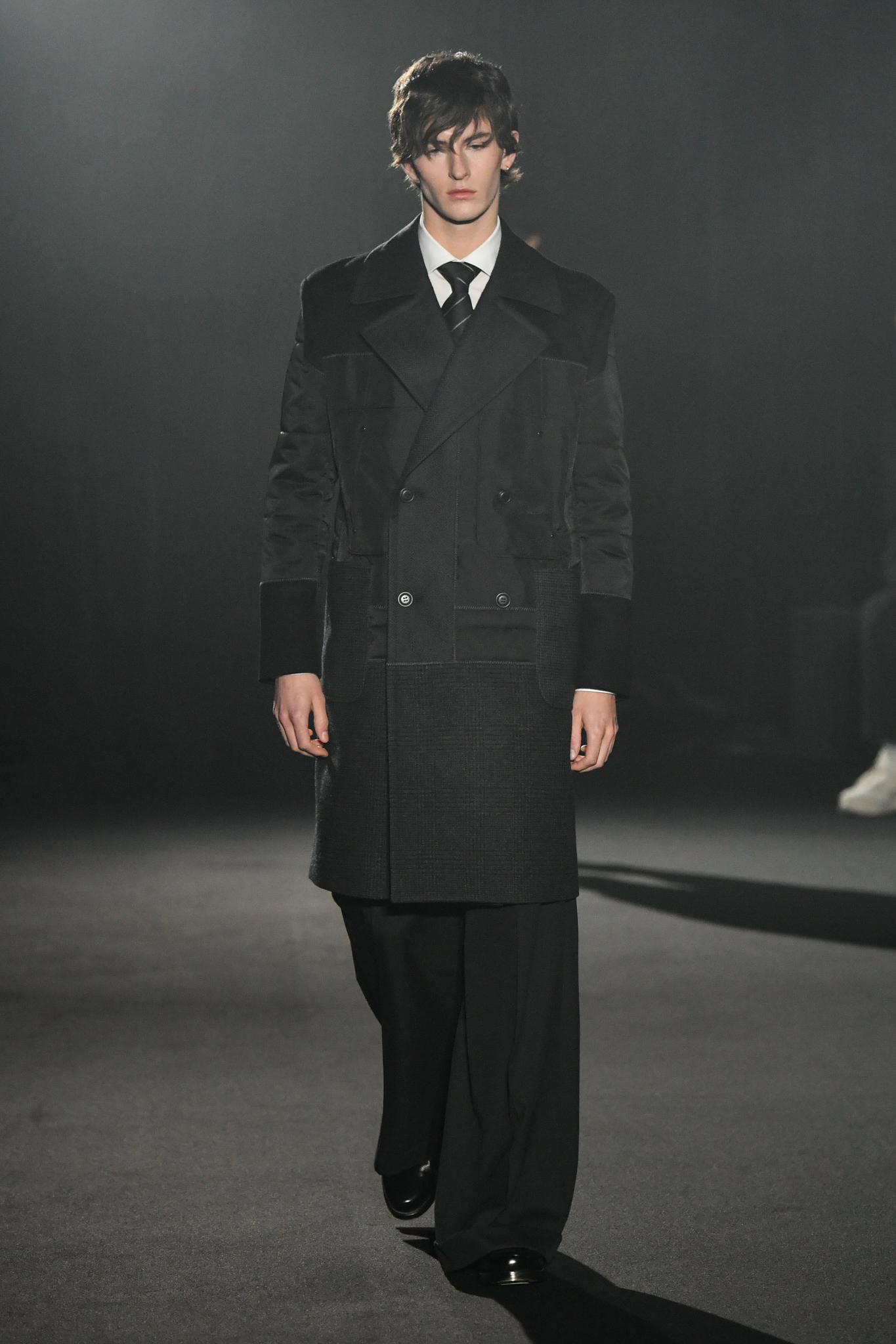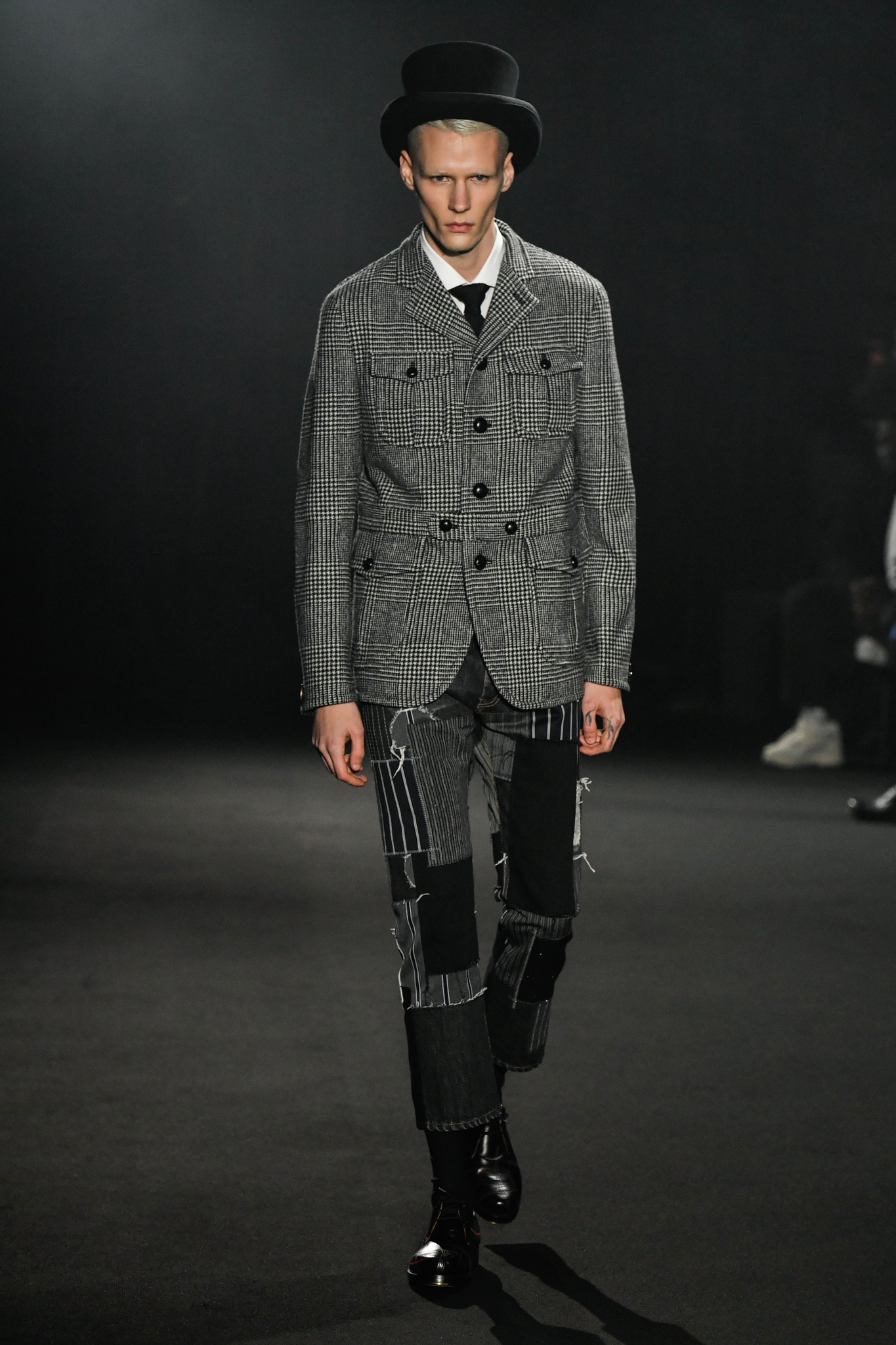 渡边淳弥在其 Junya Watanabe MAN 2026 秋冬系列中,将巴黎街头化为 1950 年代的浪漫布景,以咖啡馆座椅取代传统秀场,呈现一场亲密如街坊聚会的发布。系列聚焦 1958 至 1962 年的风格「黄金年代」,重塑常春藤联盟的经典轮廓——海军蓝西装、卡其裤与扣领衬衫,并注入次文化气息。亮点包括与 Stüssy 的合作,将品牌标志性 8-ball 与皇冠图案绣入学院剪裁;与 Levi’s®、Spiewak 的拼布联名则赋予单品工业质感;全新 New Balance 联名鞋款更模糊了运动鞋与牛津鞋的界限。透过融合传统正装线条、街头叛逆精神与粗犷工装质地,渡边再次诠释了经典在解构中重生的风格叙事。