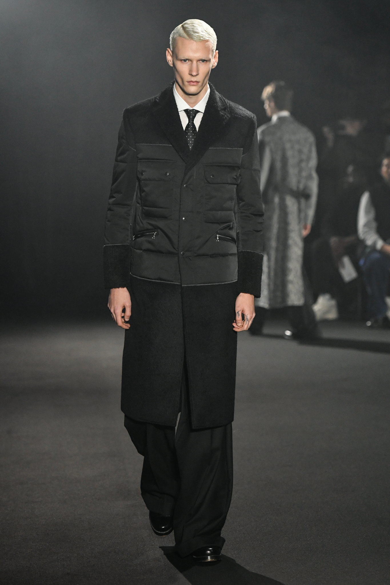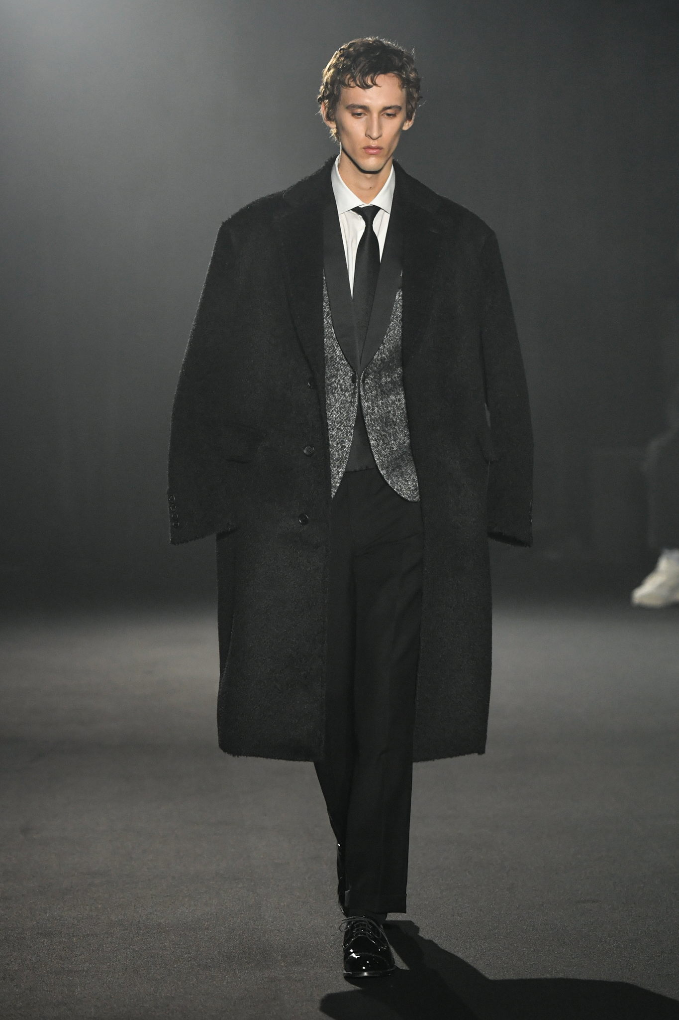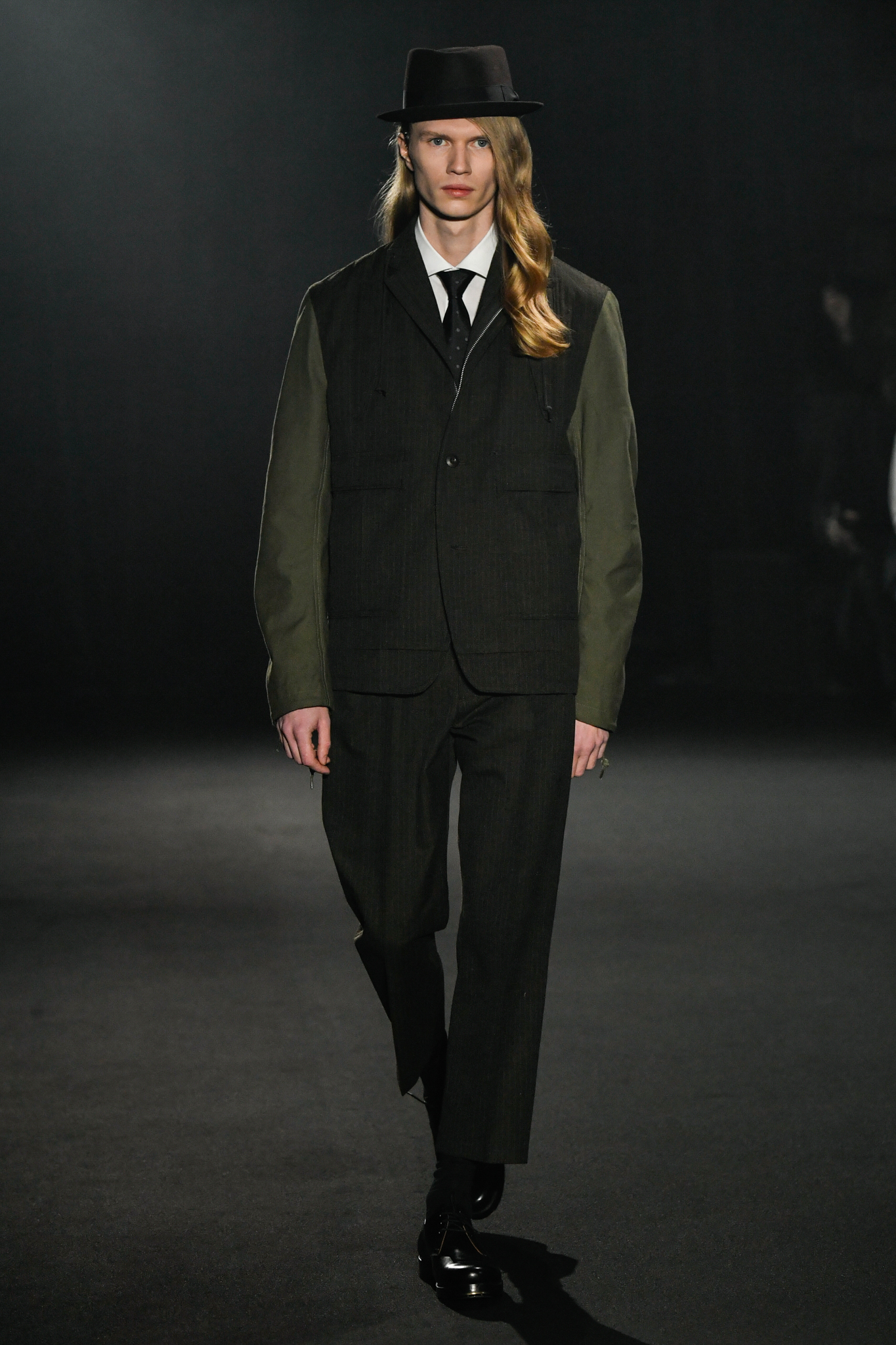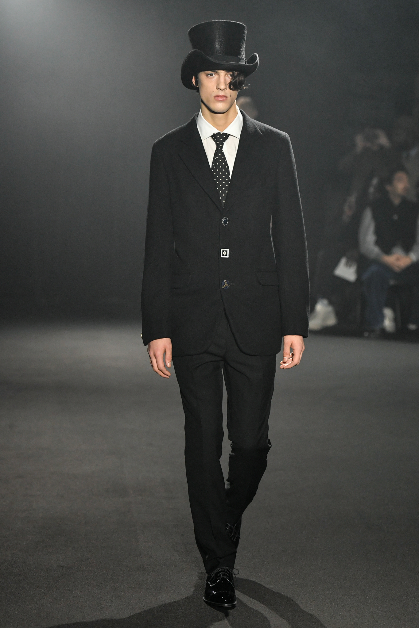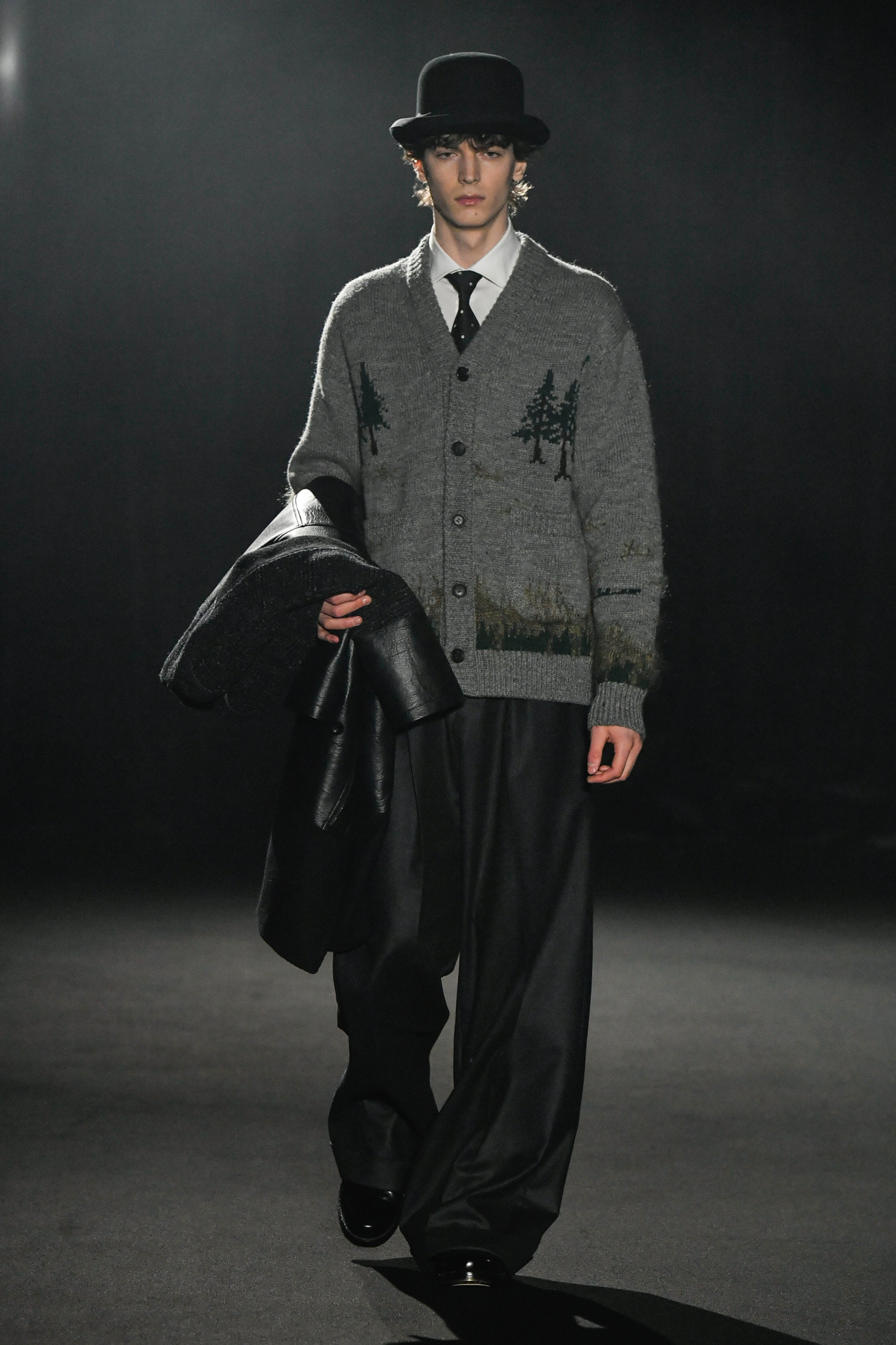 渡边淳弥在其 Junya Watanabe MAN 2026 秋冬系列中,将巴黎街头化为 1950 年代的浪漫布景,以咖啡馆座椅取代传统秀场,呈现一场亲密如街坊聚会的发布。系列聚焦 1958 至 1962 年的风格「黄金年代」,重塑常春藤联盟的经典轮廓——海军蓝西装、卡其裤与扣领衬衫,并注入次文化气息。亮点包括与 Stüssy 的合作,将品牌标志性 8-ball 与皇冠图案绣入学院剪裁;与 Levi’s®、Spiewak 的拼布联名则赋予单品工业质感;全新 New Balance 联名鞋款更模糊了运动鞋与牛津鞋的界限。透过融合传统正装线条、街头叛逆精神与粗犷工装质地,渡边再次诠释了经典在解构中重生的风格叙事。