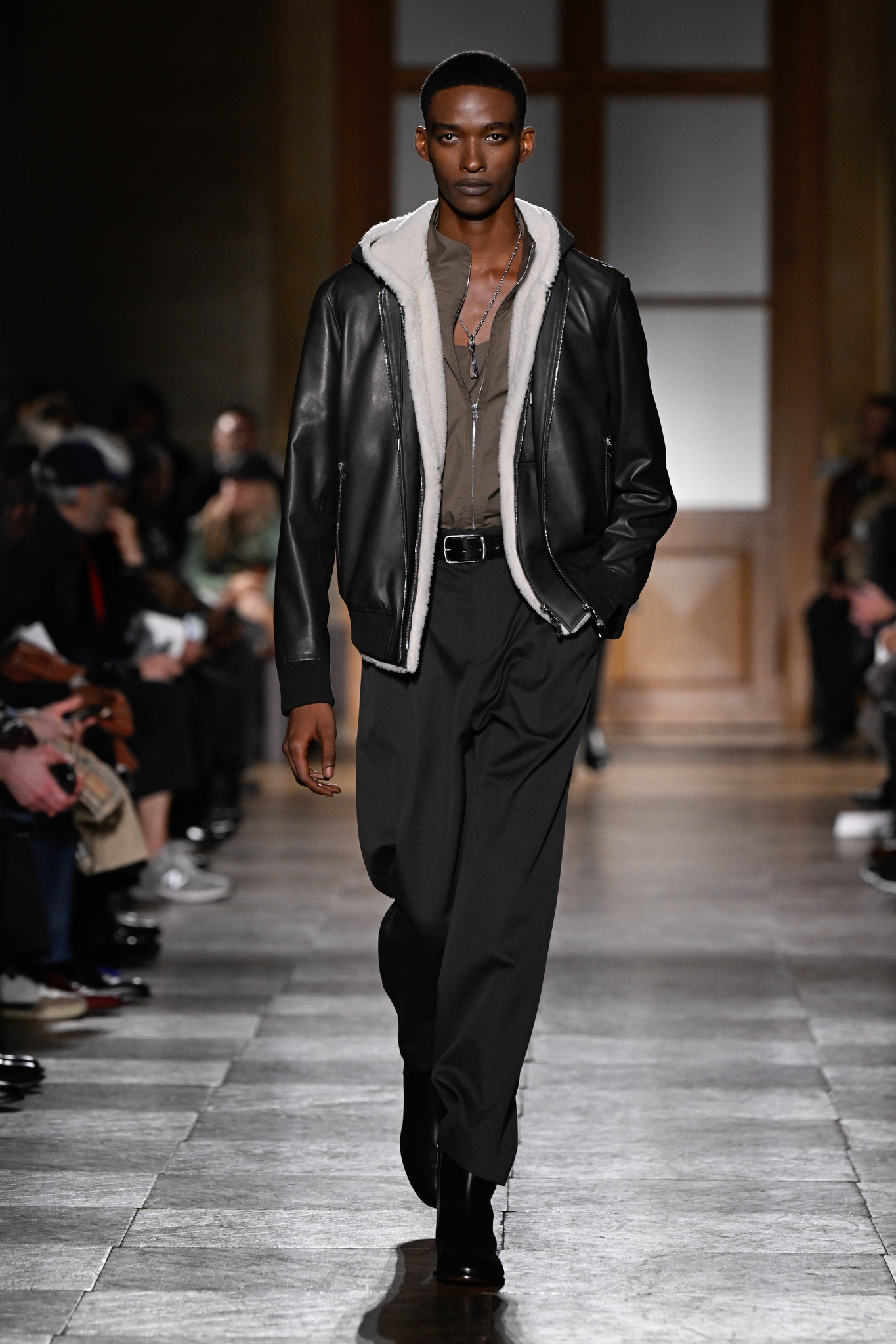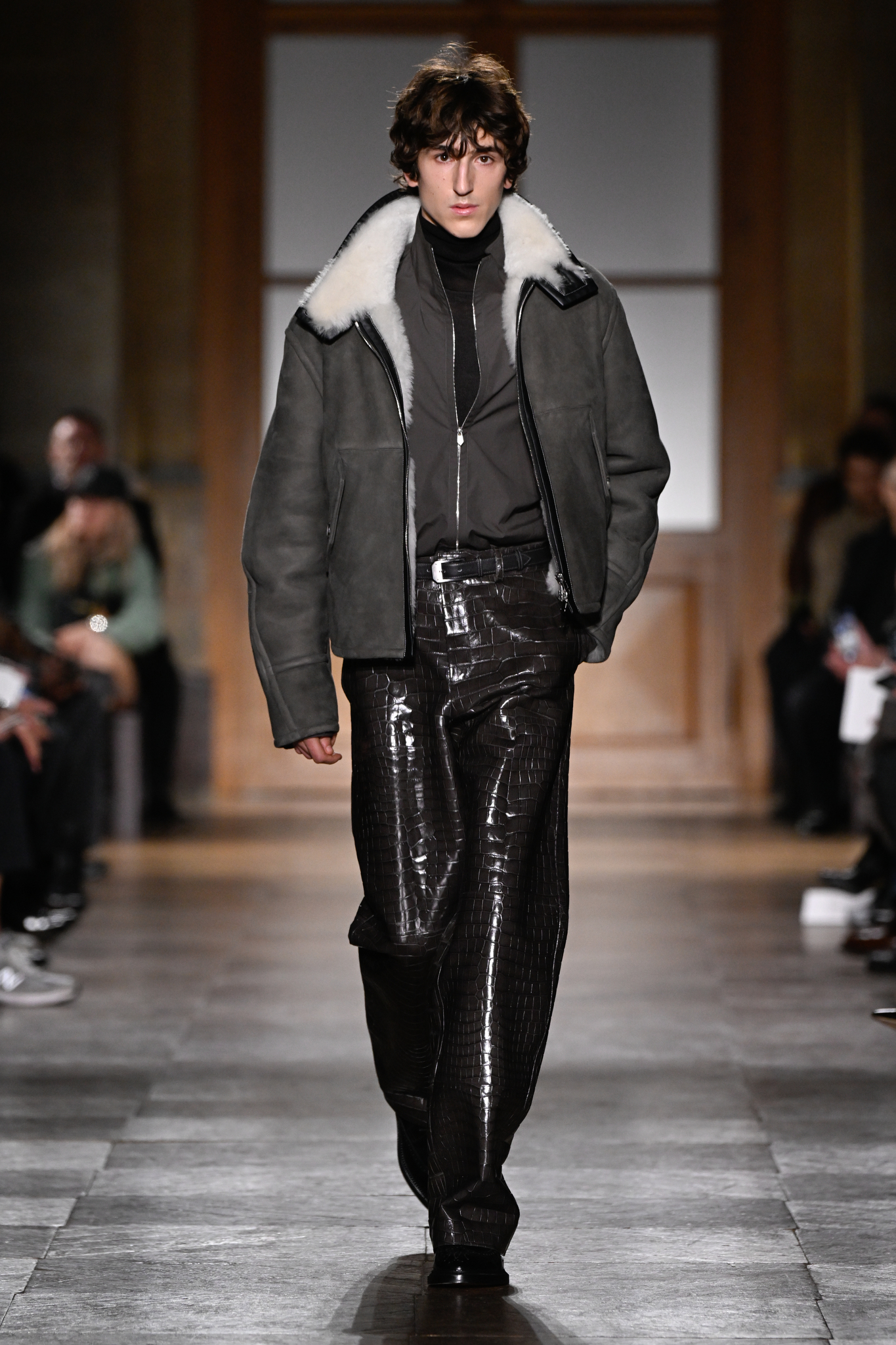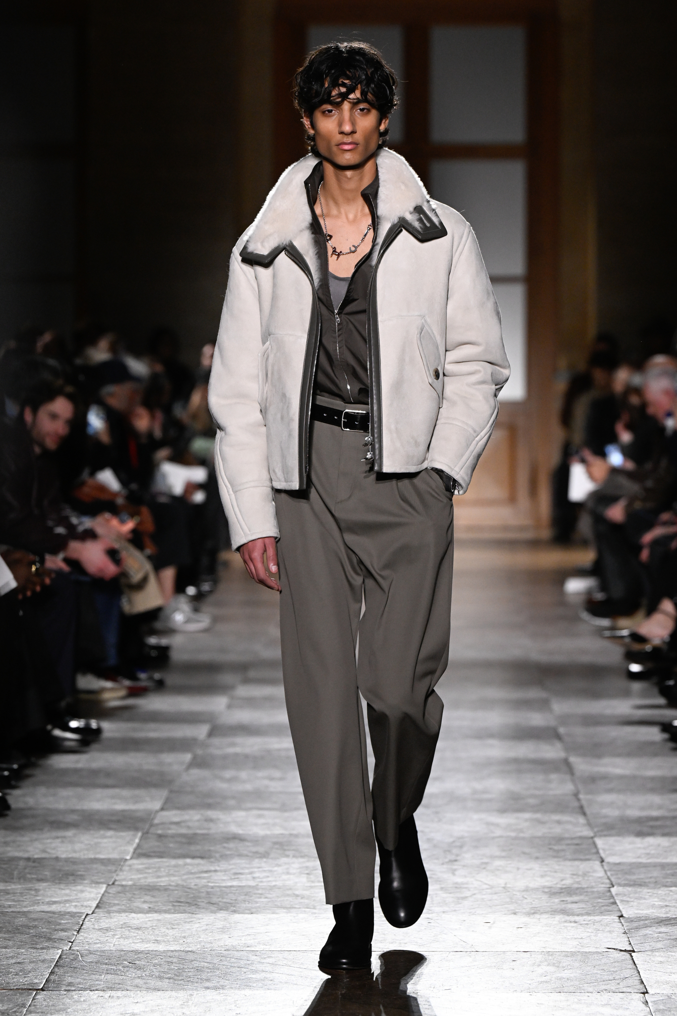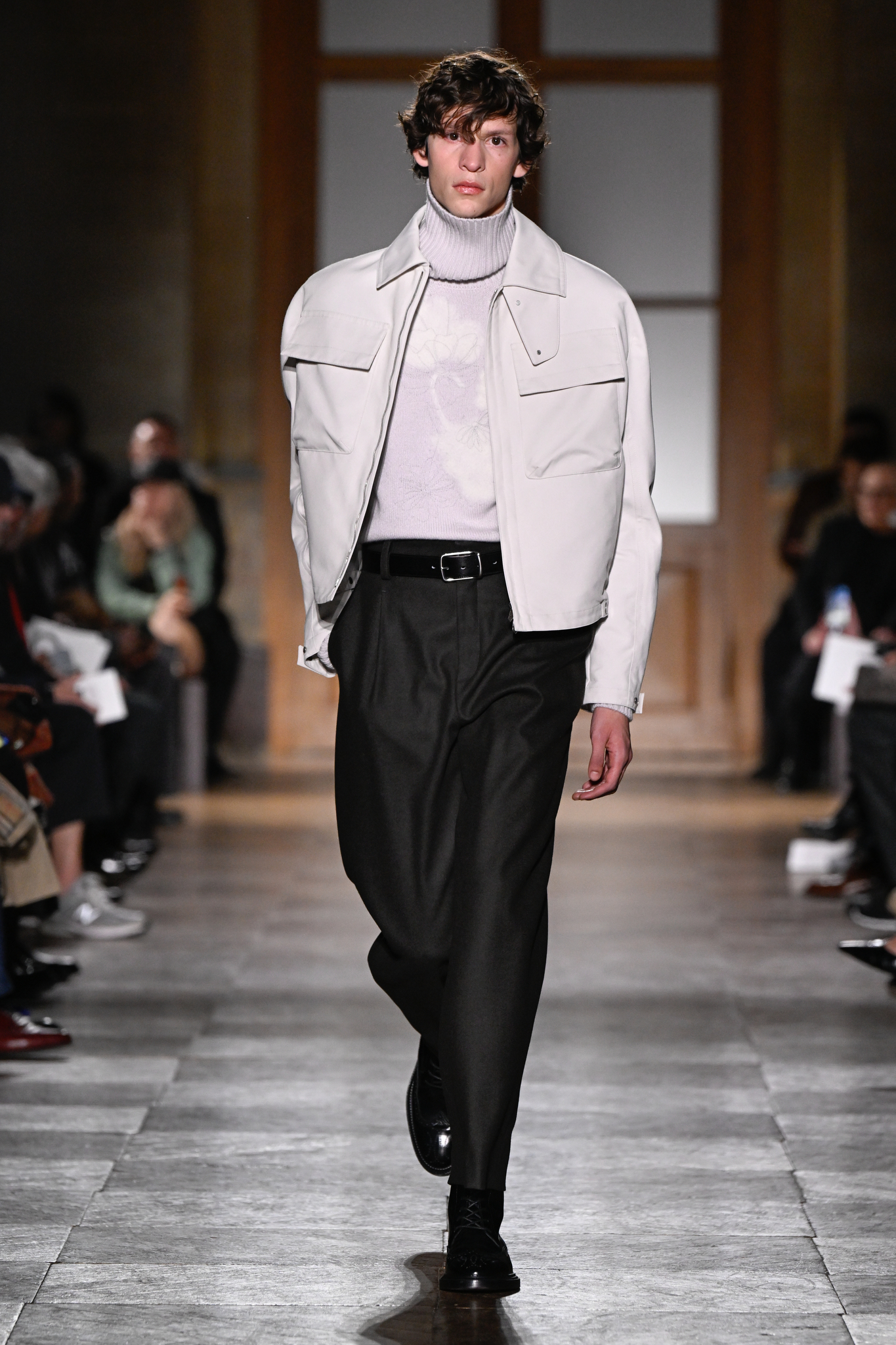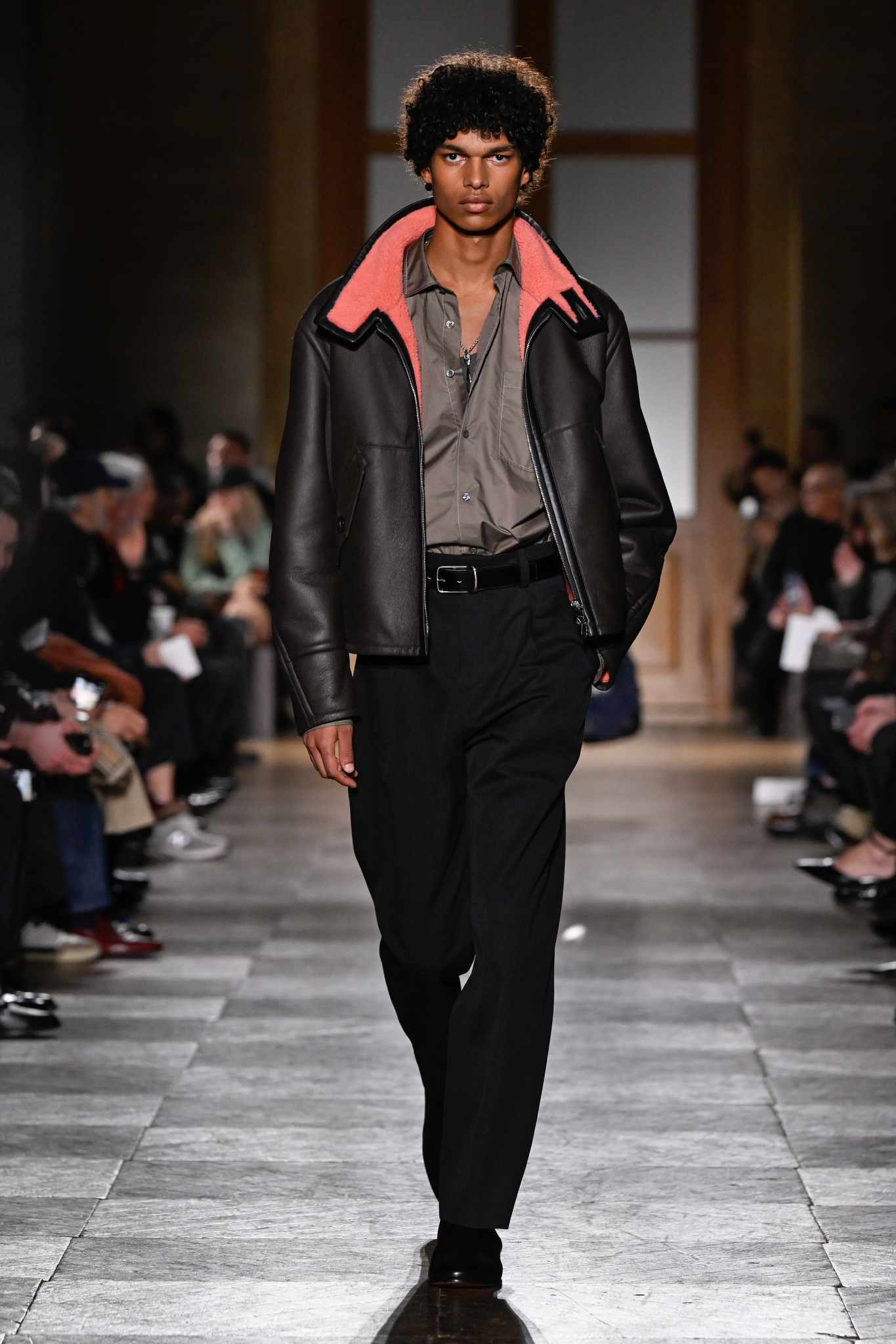 爱马仕 2026 秋冬男装系列作为 Véronique Nichanian 执掌 37 年后的告别之作,以精湛剪裁与经典线条诠释永恒美学。系列延续品牌标志性的合身比例,袖长设计精准贴合手腕,无论挺括大衣、皮质夹克或针织衫,均以恰到好处的长度勾勒利落轮廓。无论是复刻自 1991 年的连体工装,还是全新的珊瑚粉羊毛皮大衣,袖部剪裁皆呼应整体造型的简洁与平衡,亦暗含 Nichanian 对「慢工细作」的坚持。这一细节亦成为其设计哲学的无声注脚——在瞬息万变的时尚中,唯有精准、经得起时间考验的剪裁,方能定义真正的奢侈。